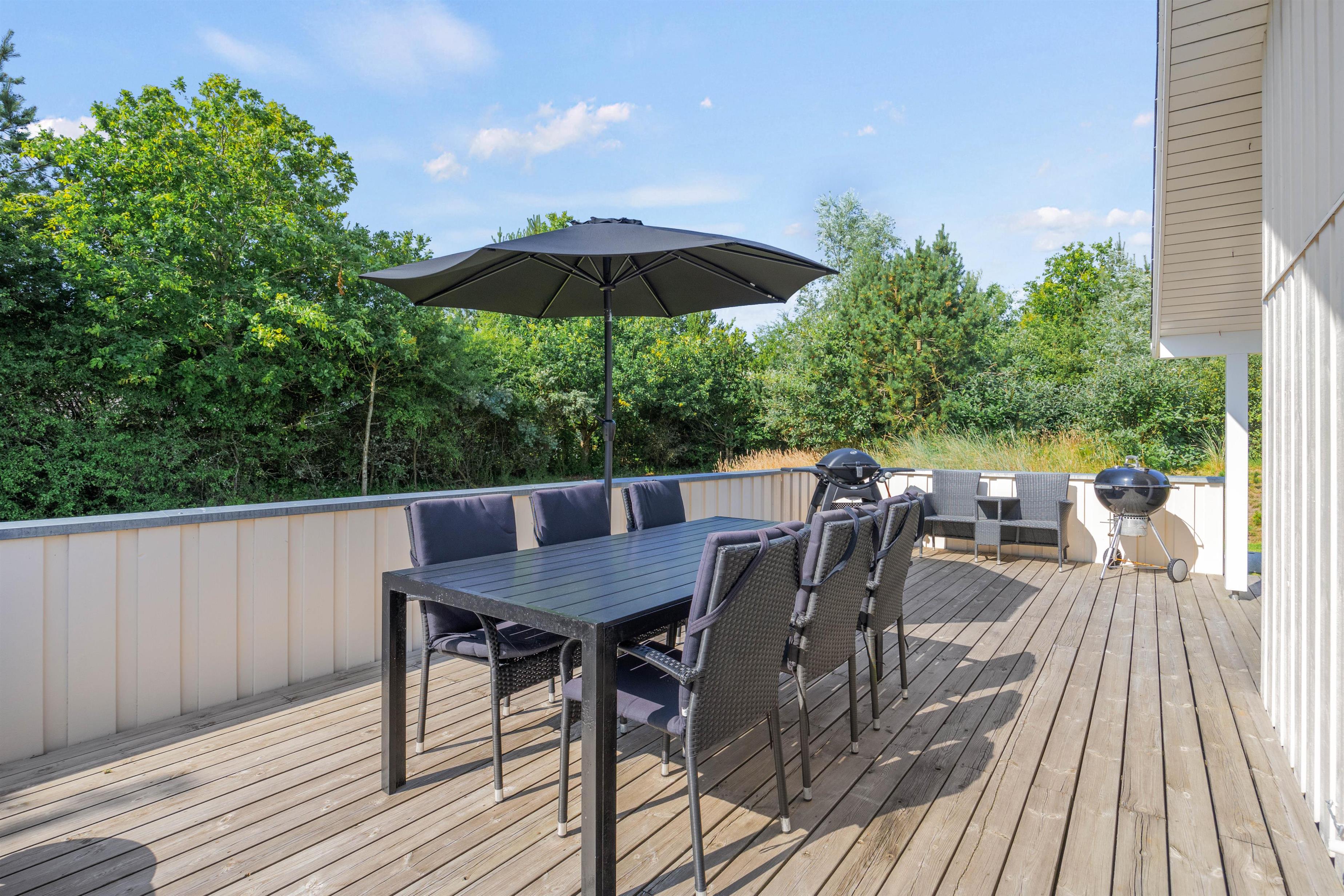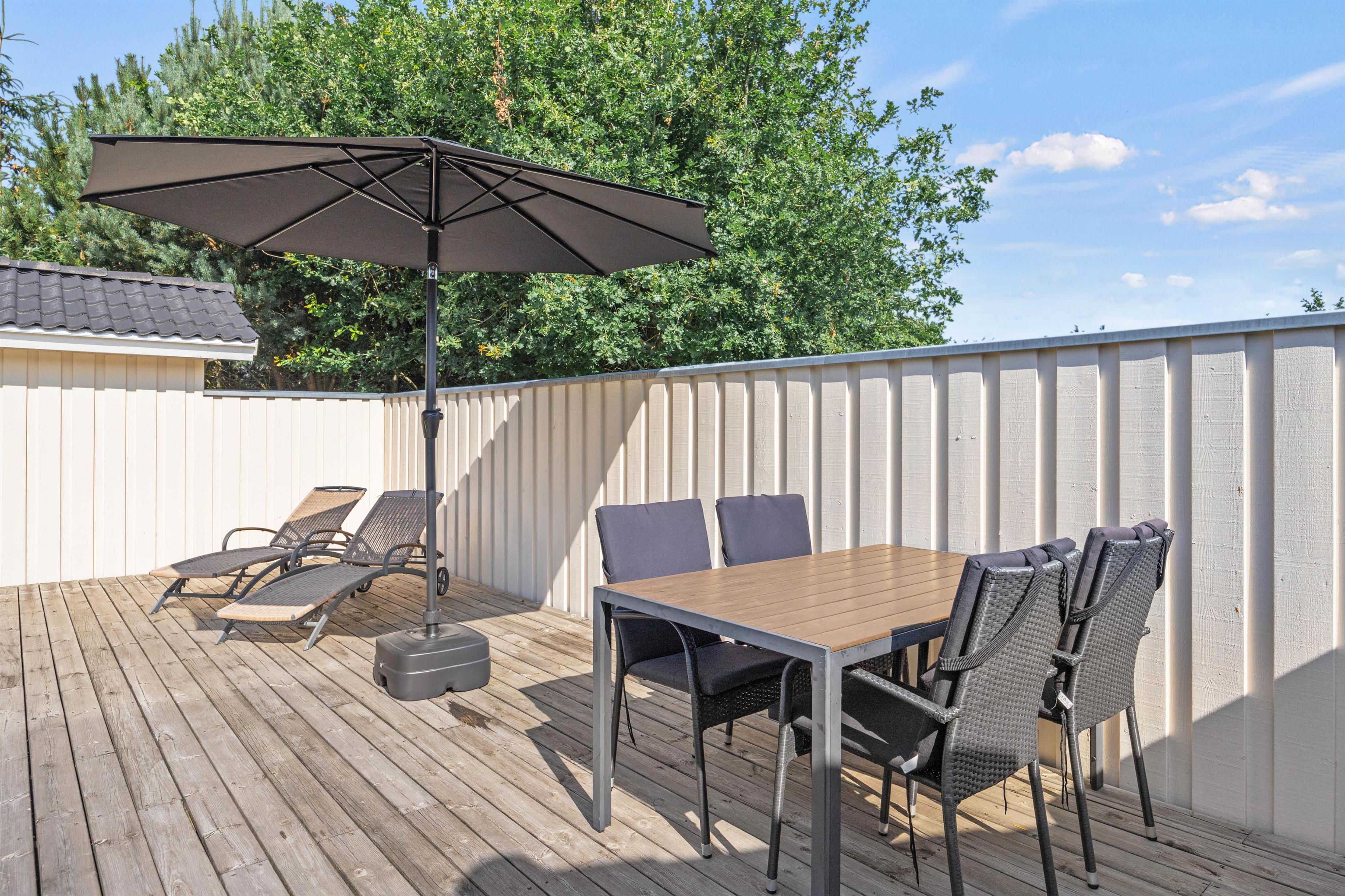 Sommerhusets terrasse strækker sig fra østsiden, mod syd, til vestsiden, og inviterer til solbadning og hyggelige grillaftener under åben himmel. Terrassen er delvist overdækket og afskærmet, så I har mulighed for at sidde i læ for lidt vind eller en lille regnbyge på en ellers lun sommerdag. Desuden er der anlagt en flot petanque-bane.