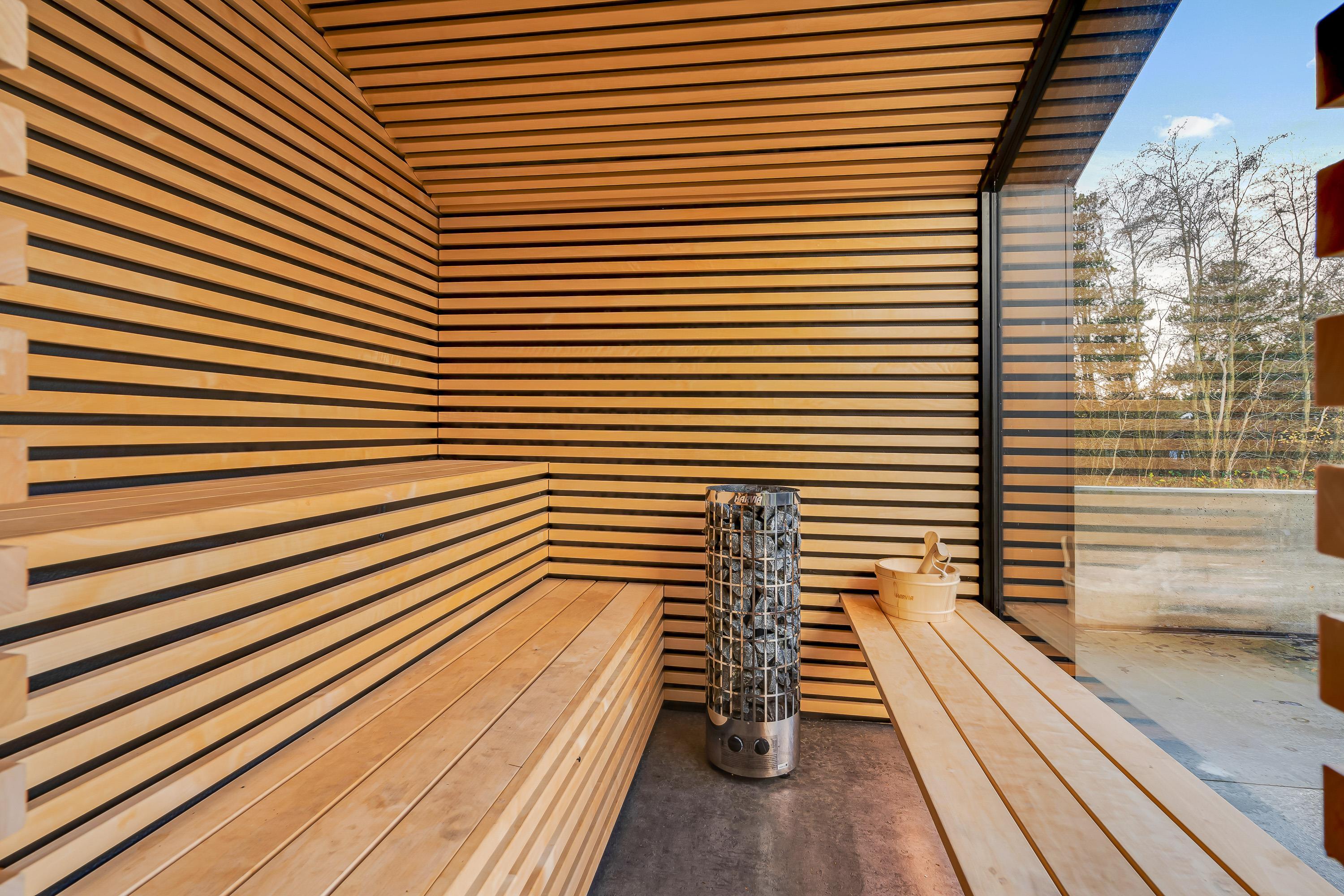 Når I holder ferie i sommerhuset på Strandgodsvej 17, vil der være masser af afslapning på programmet. Udenfor finder I en sauna (både infrarød og alm. saunaovn), hvor I kan sætte jer til rette i den dejlige varme og slappe fuldstændig af. Der er også flere lækre wellnessfaciliteter. Her står der nemlig også en udespa og en udebruser klar til jer, så her er der rig mulighed for skønne, afslappende stunder. Udebruseren er desuden oplagt at blive skyllet under efter en tur ved stranden.