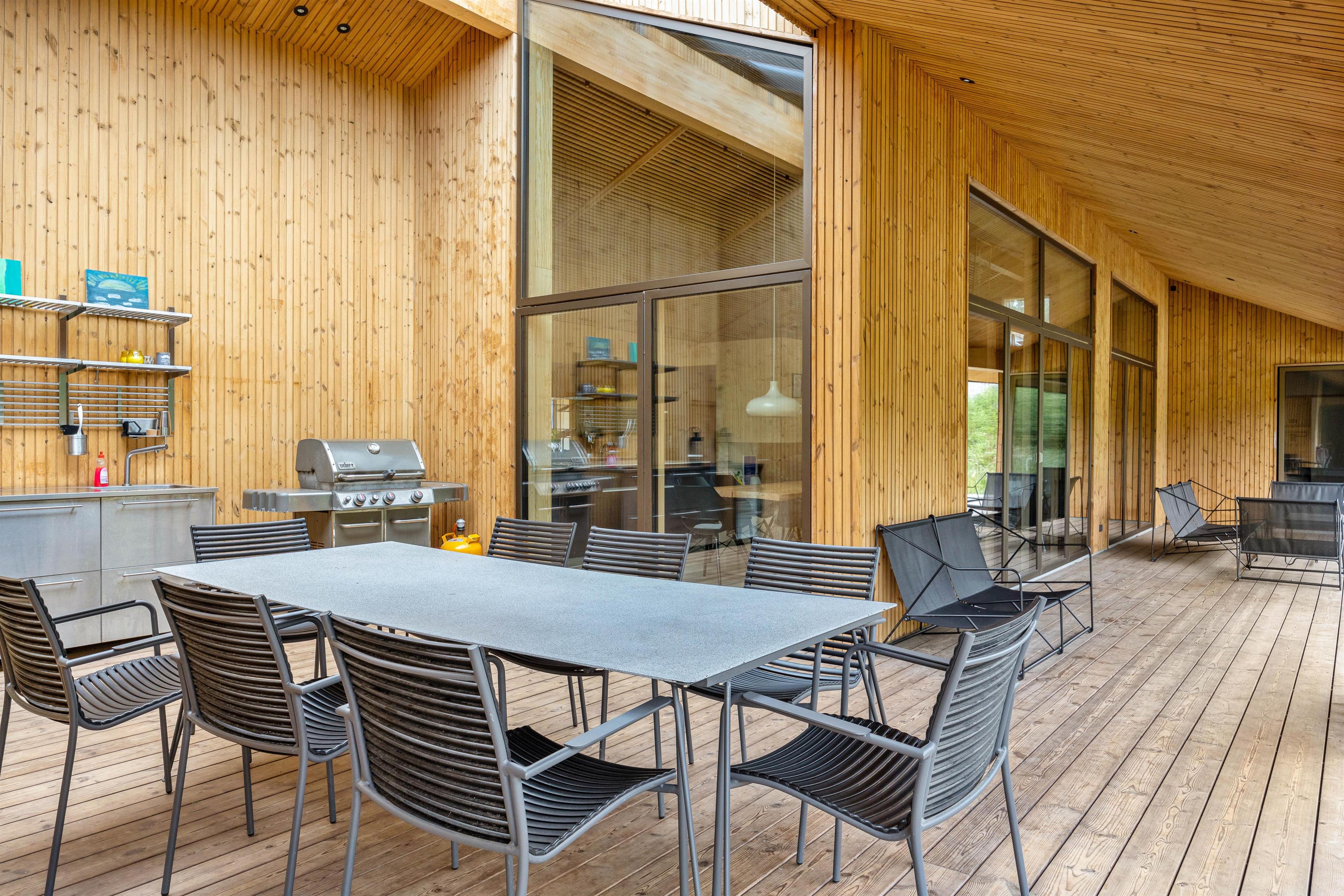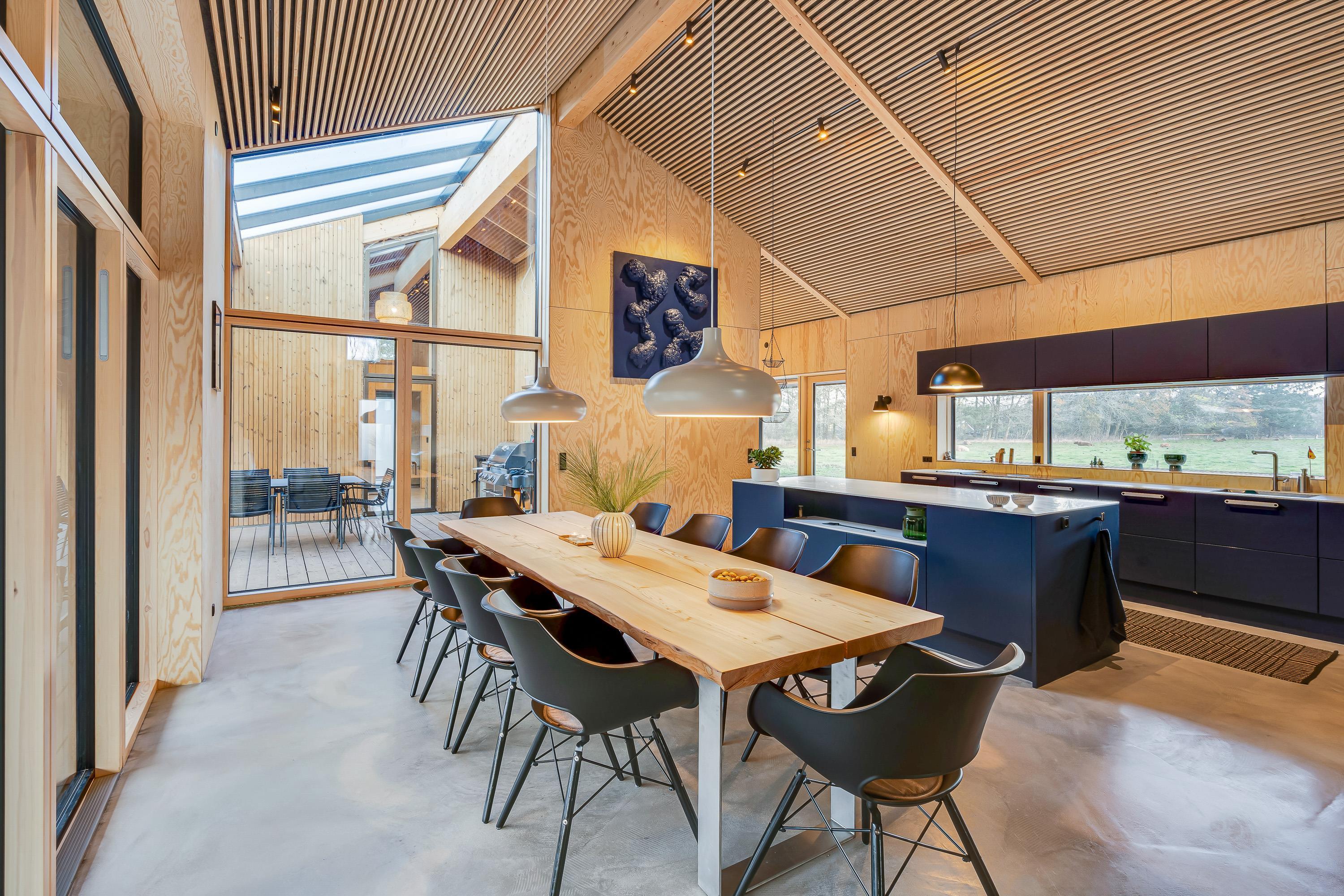 På Strandgodsvej 17 i Henneby står dette lækre luksusferiehus klar til jeres næste ferie. I sommerhuset er der plads til op til 8 personer, og derfor er det et oplagt valg, hvis I er 2 familier eller en vennegruppe, der vil på ferie sammen. Det nybyggede (2022) sommerhus byder på lækre wellnessfaciliteter i form af udespa, udesauna og udebruser, der forkæler jer med ekstra afslapning på ferien. I feriehuset er 1 hund også velkommen.