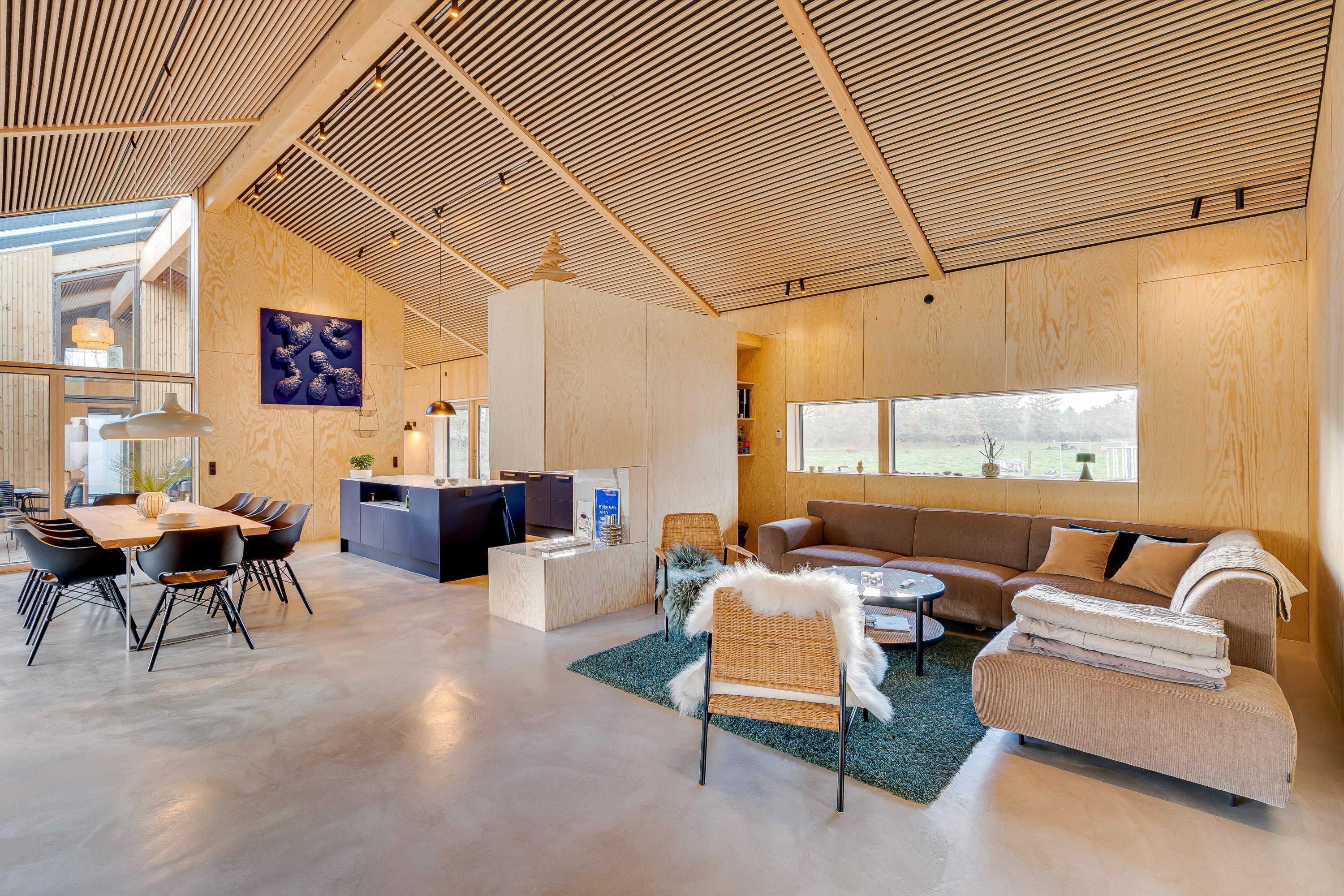 Sommerhuset er indrettet med komfortable og moderne møbler. Desuden er der også gode praktiske faciliteter – vaskemaskine, opvaskemaskine og tørretumbler i sommerhuset, som letter husarbejdet for jer på ferien.