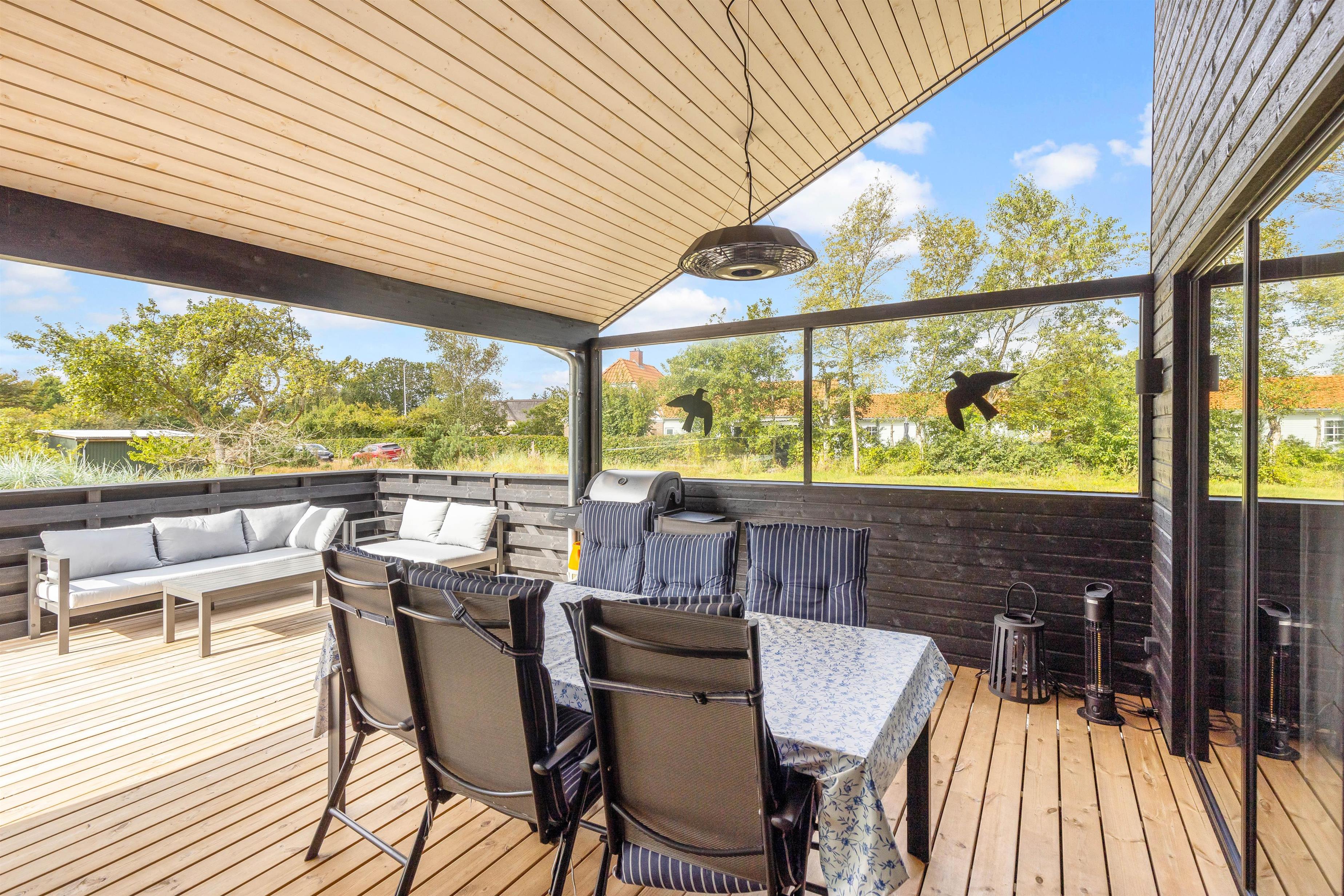 Når solen er fremme, skal sommerdagene tilbringes på den fine terrasse. Terrassen er både afskærmet og lukket, så I kan lufte hundene, uden at de stikker af i nabolaget. Derudover er terrassen også overdækket, hvis I trænger til en pause i skyggen. Der er selvfølgelig diverse liggestole og havemøbler til jeres rådighed.