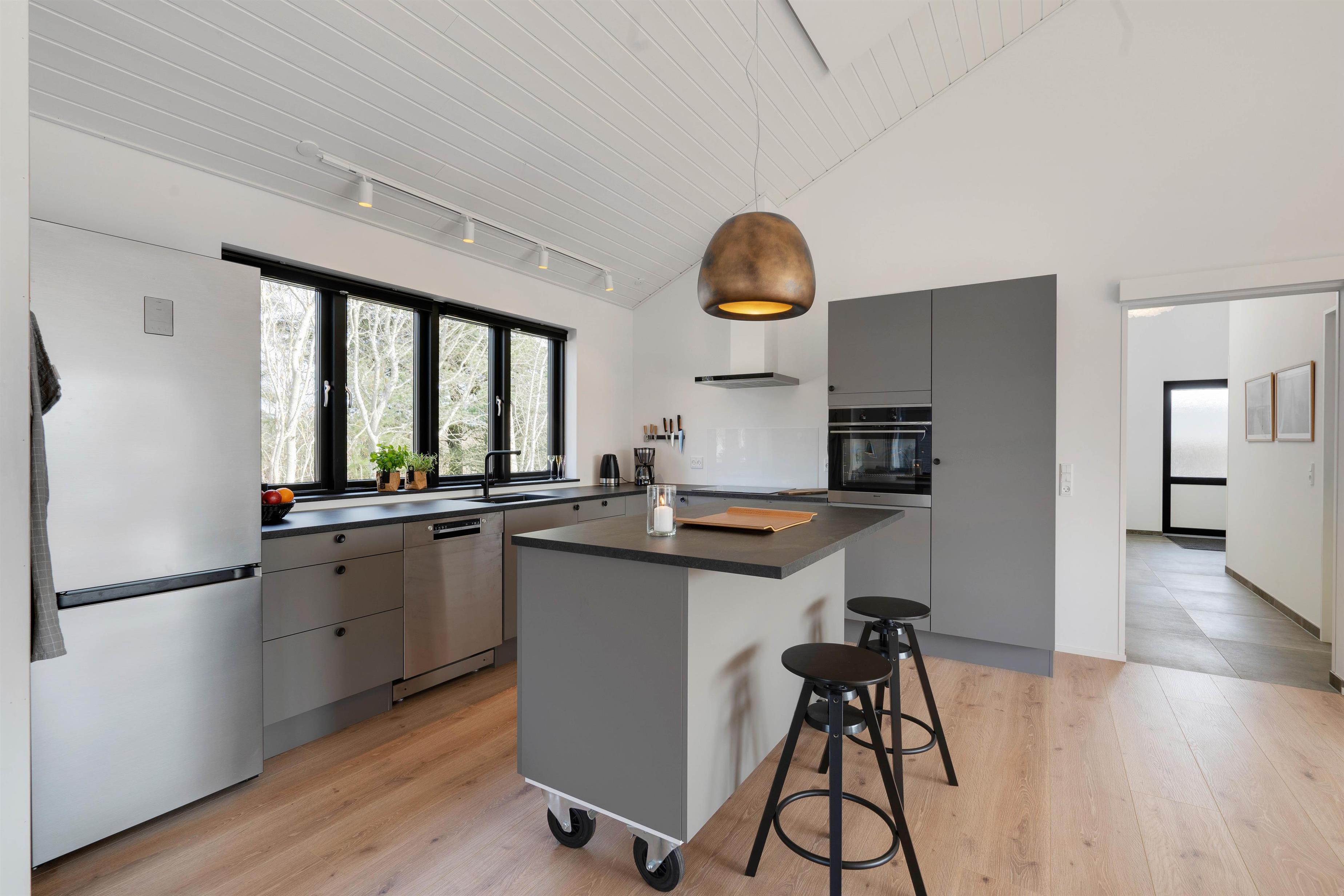I bliver straks budt velkommen af de lyse og indbydende omgivelser, hvor fokus især har været på det store køkkenalrum. Her kan hele familien samles omkring madlavning, spilleaftener eller hygge i sofaen med en god film kørende på fladskærms-tv’et. Derudover er der gulvvarme i stuen. Der er selvfølgelig også gratis trådløst internet, så I også kan streame jeres yndlingsserie.
