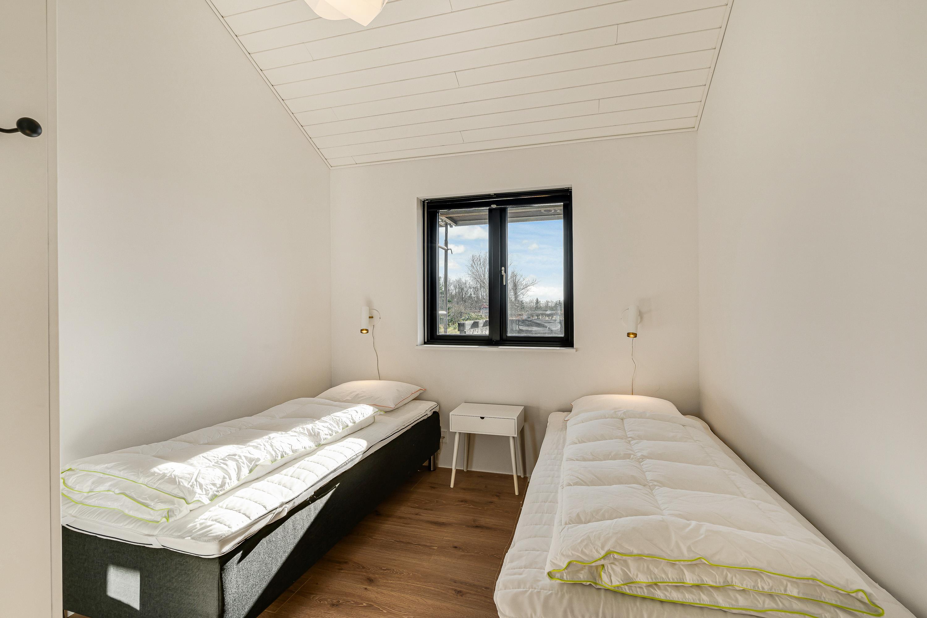 De 6 sovepladser er fordelt på 3 soveværelser, hvor 2 af værelserne er med enkeltmandssenge og det største værelse med dobbeltseng. Perfekt til at sikre den gode nattesøvn på jeres ferie. Her er der også gulvvarme, som holder jeres fødder varme. Desuden har sommerhuset hele 2 badeværelser, hvor begge er med gulvvarme. Vi garanterer dermed næsten, at der ingen kø bliver til toilettet.