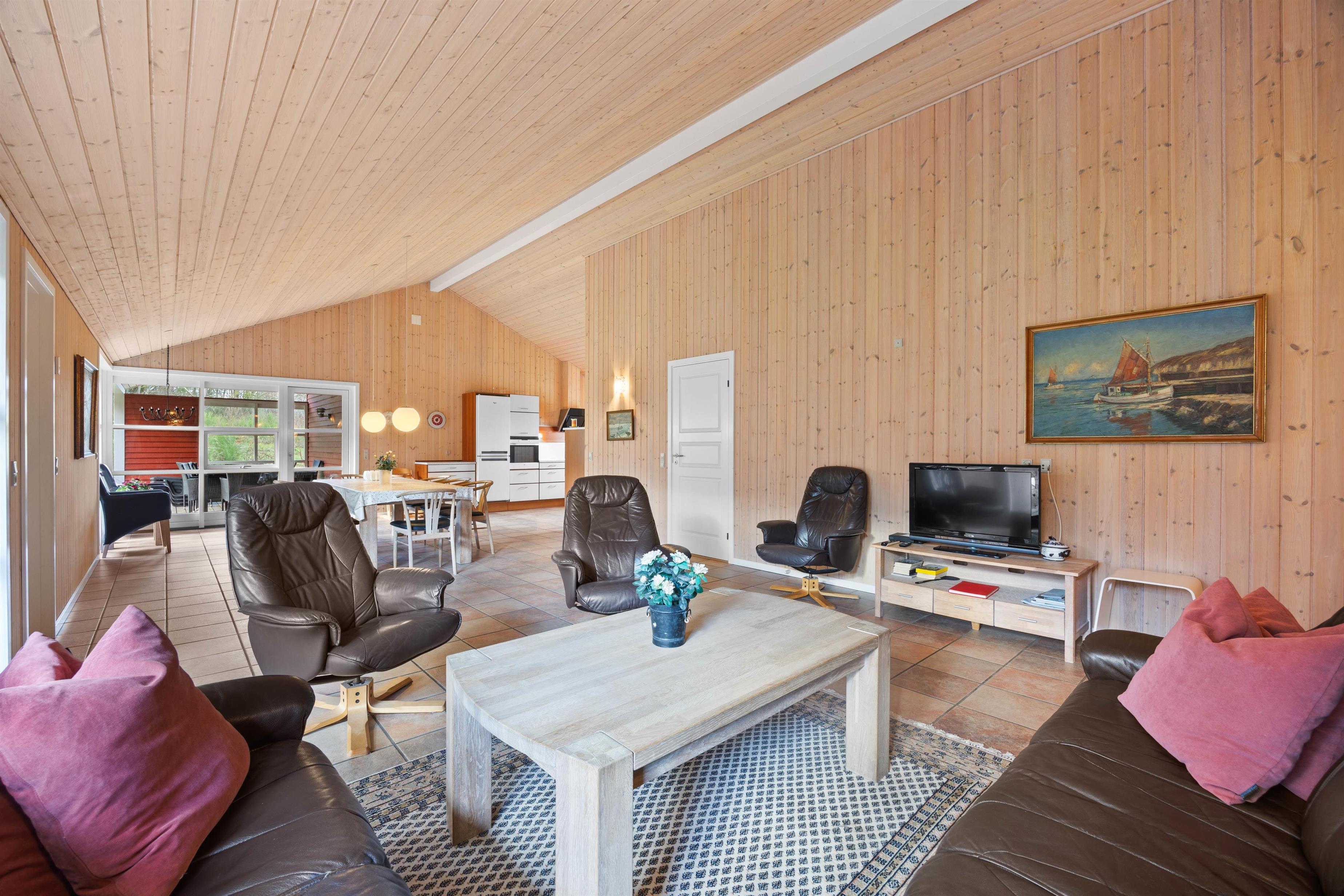 Den store lyse opholdsstue er husets midtpunkt. Den ligger i åben forbindelse med det veludstyrede køkken og har flere små hyggekroge, hvor I kan sætte jer til rette med en god bog og en friskbrygget kop kaffe.