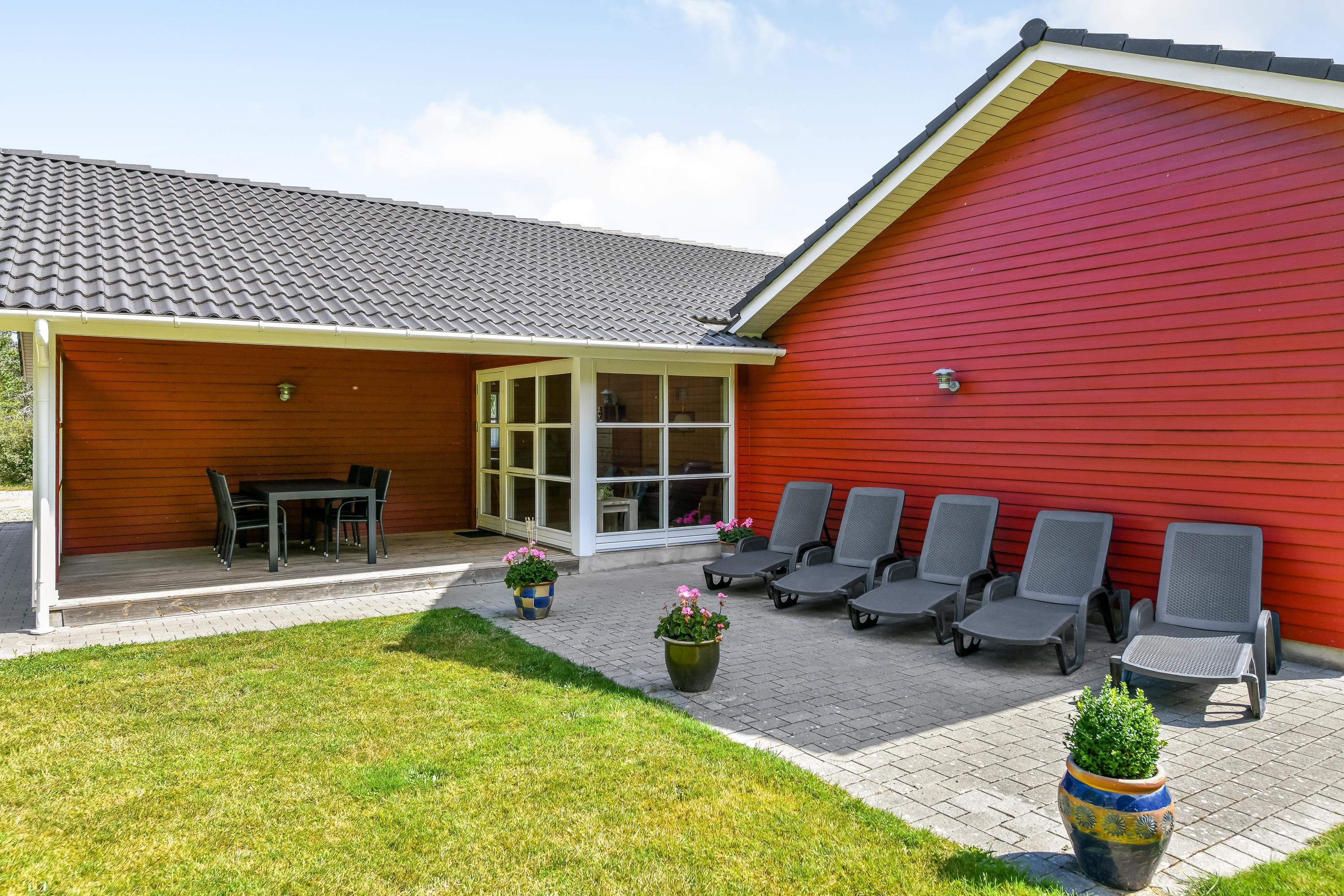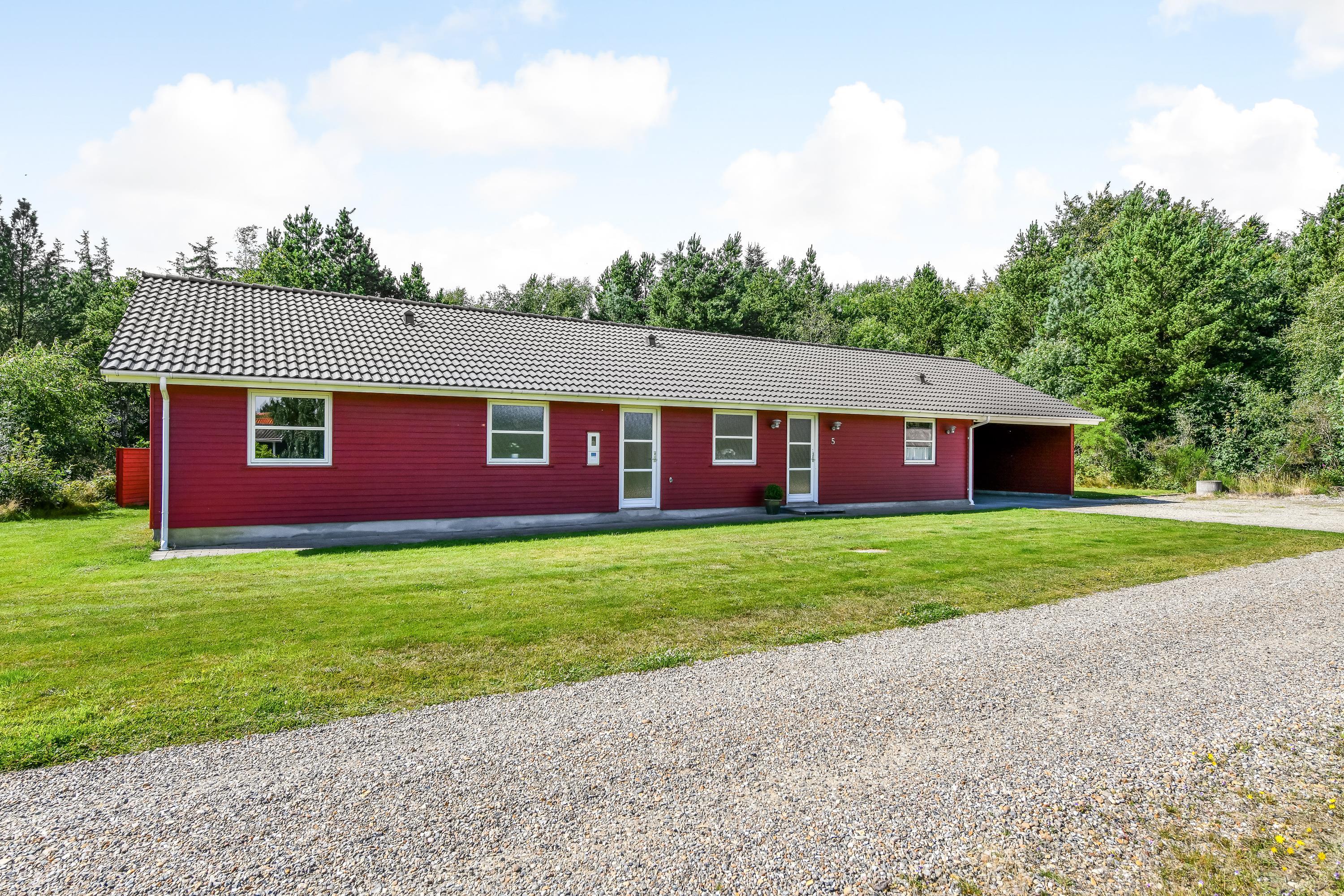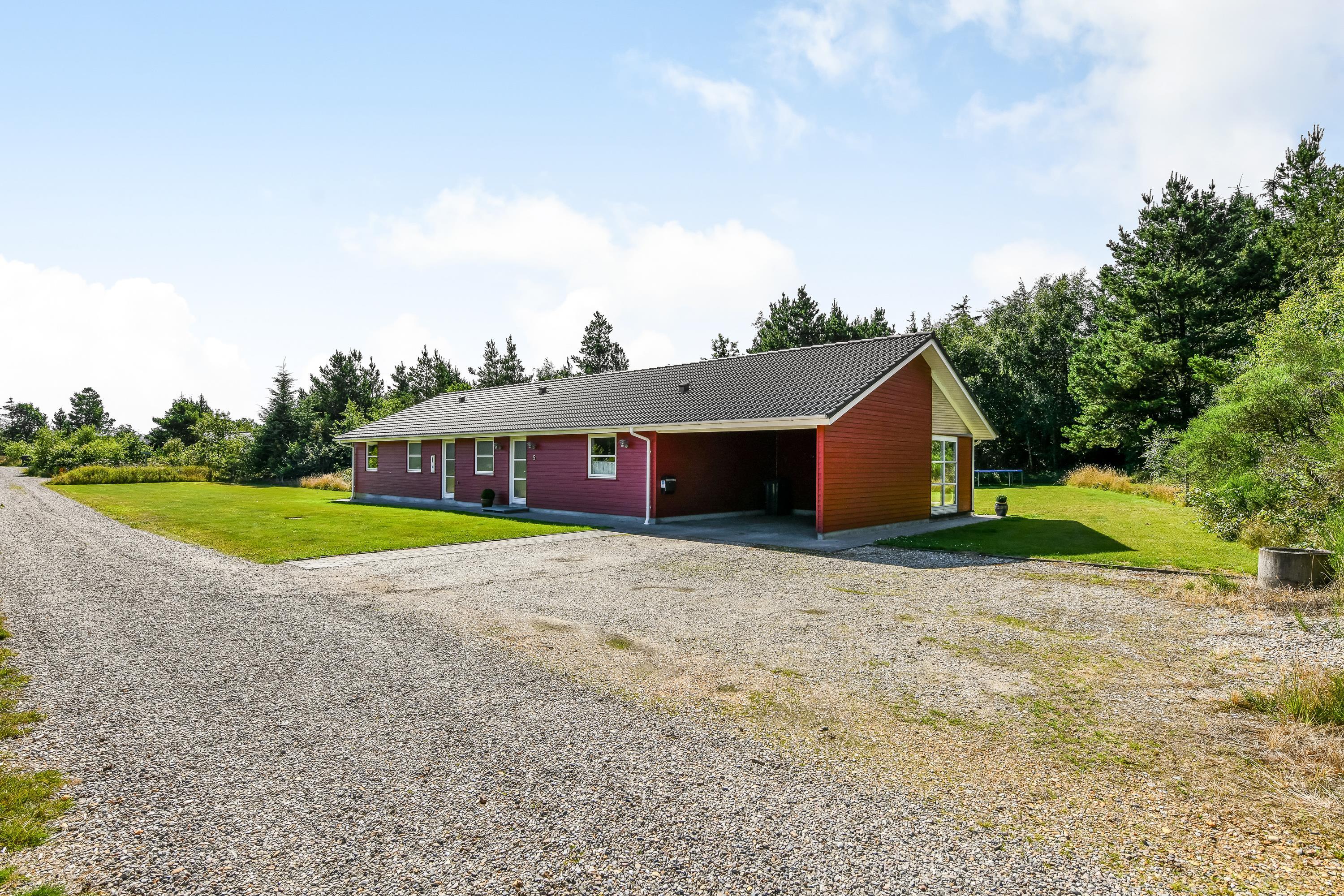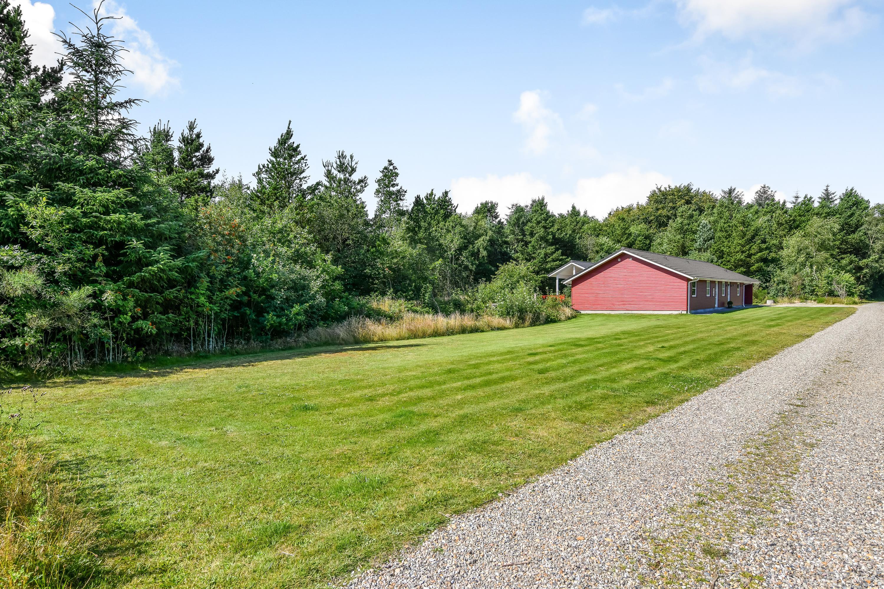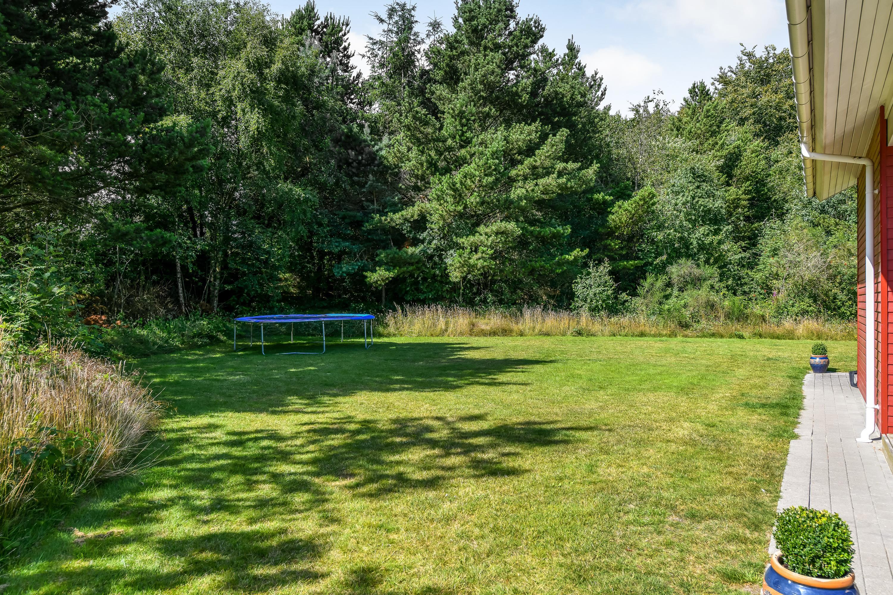 Den store grund er omgivet af høje træer, og I får en helt ugeneret beliggenhed - et godt udgangspunkt til en fredelig ferie. Begge terrasser er overdækket.