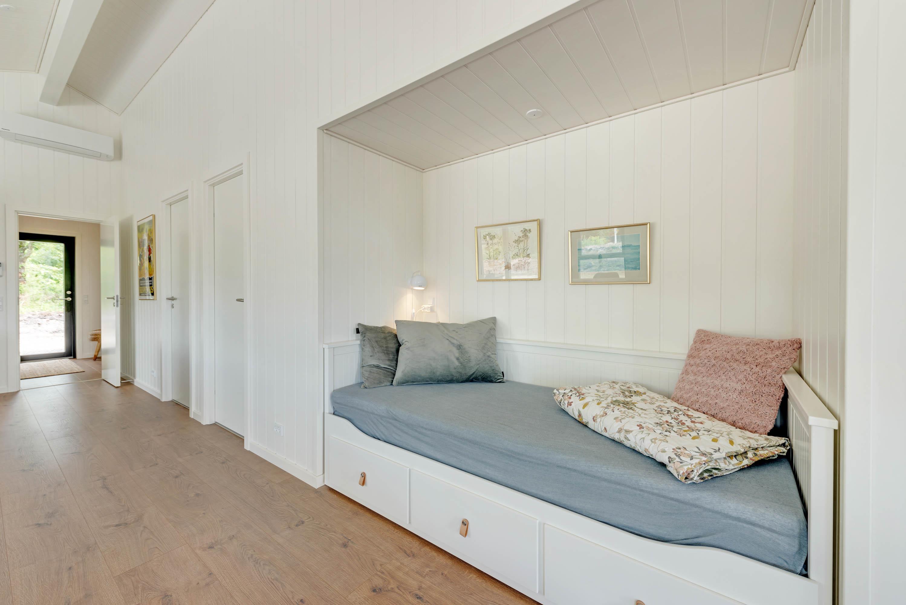 Drømmer I om en ferie i luksuriøse omgivelser? Så er dette femstjernede sommerhus lige noget for jer! Det i år 2020 opførte sommerhus er indrettet i en flot nordisk stil, som forener det moderne med den hyggelige, klassiske sommerhusstemning. Særlige detaljer som en alkove i køkken-alrummet giver et særligt præg, det er det perfekte hjørne til en god bog eller til at hygge-gemme sig lidt med sin ipad, imens der dækkes bord til aftensmaden.
