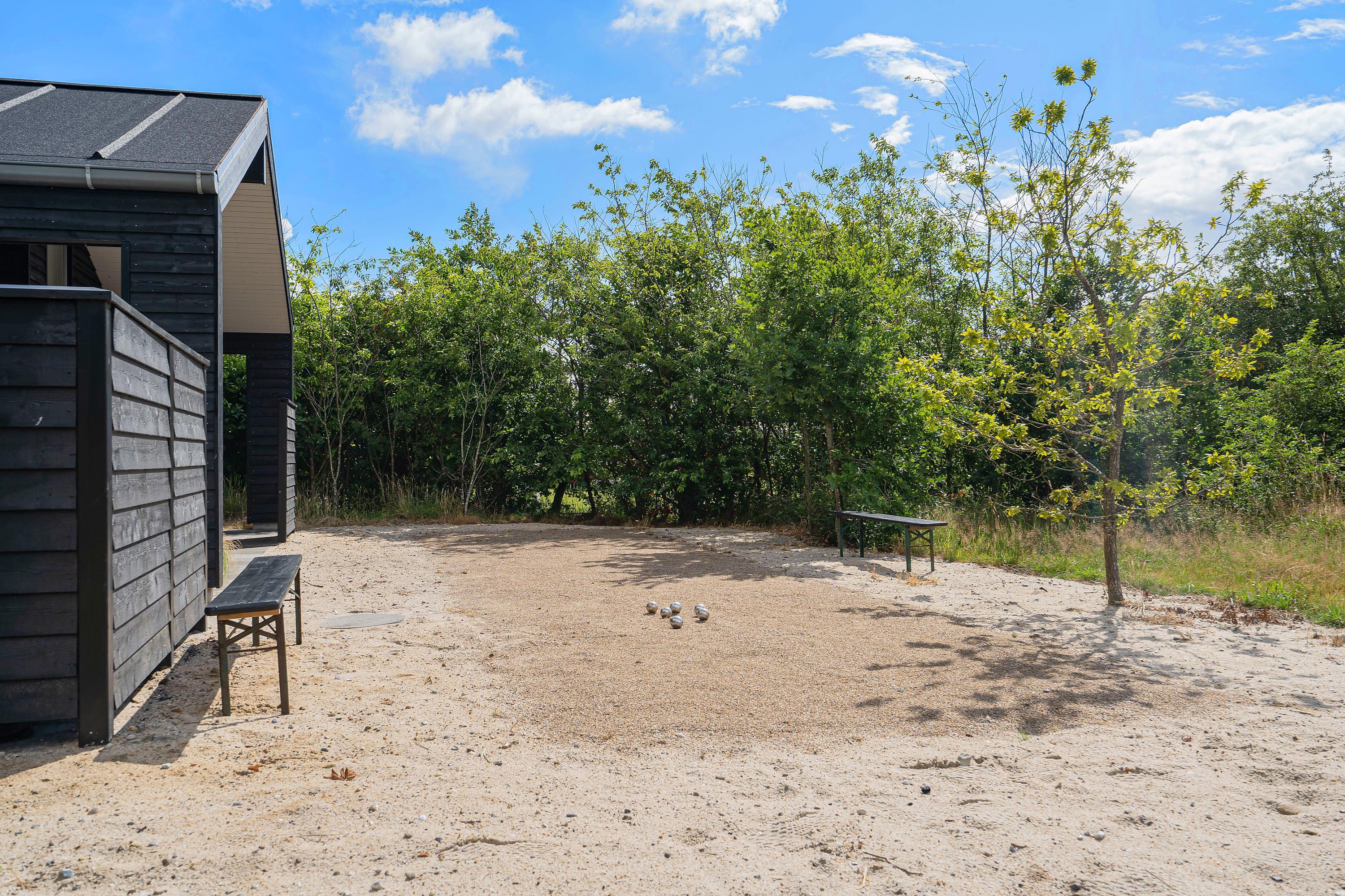 Den store terrasse går næsten hele vejen rundt om sommerhuset og har både en åben og en overdækket del. Der er sørget for komfortable havemøbler, liggestole og en grill, så I kan nyde den friske luft i fulde drag. På terrassen er desuden en udespa, en udendørs bruser*, og de rigtig friske kan snuppe morgenbadet under åben himmel og der er også mulighed for at spille petanque i haven.