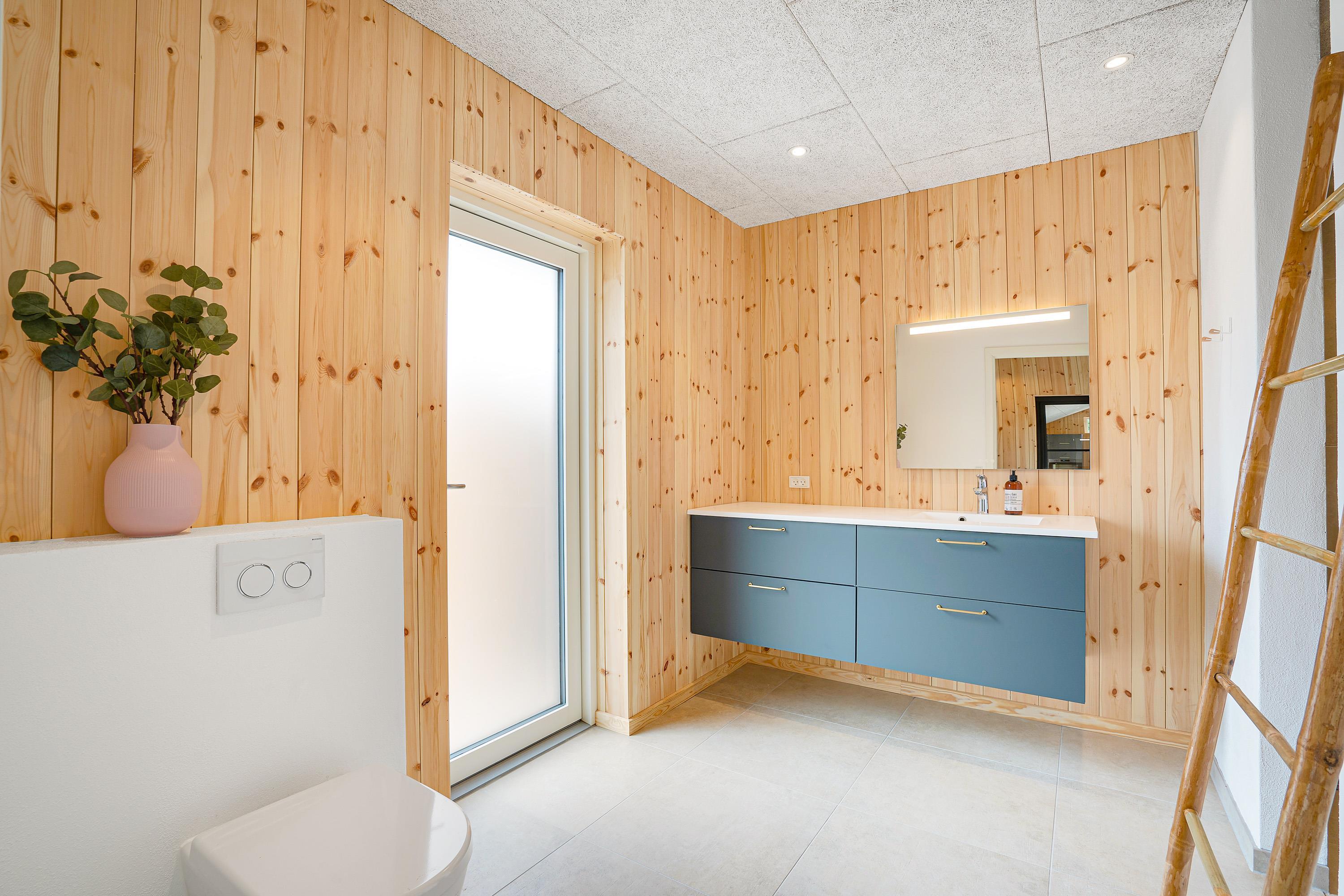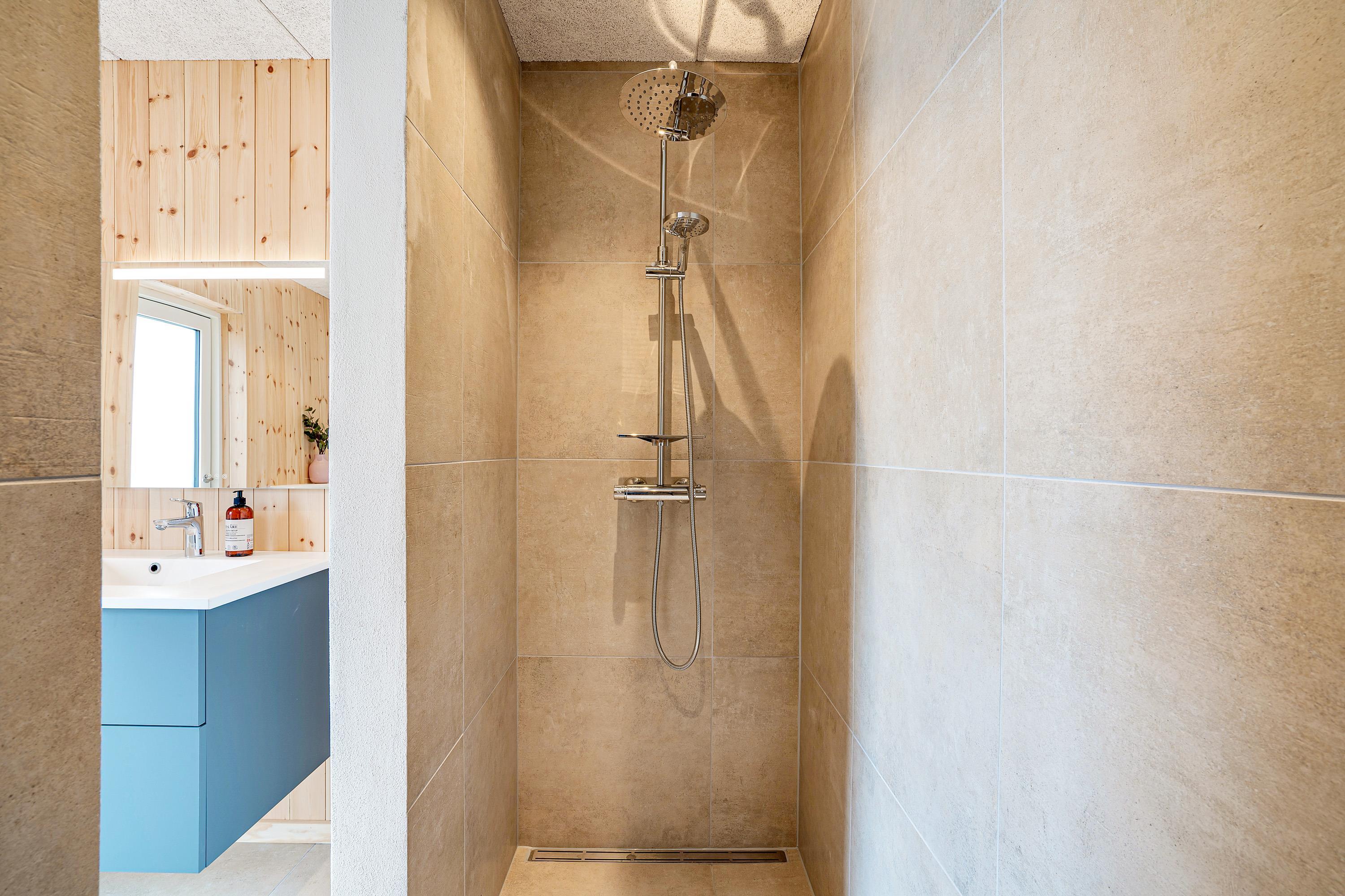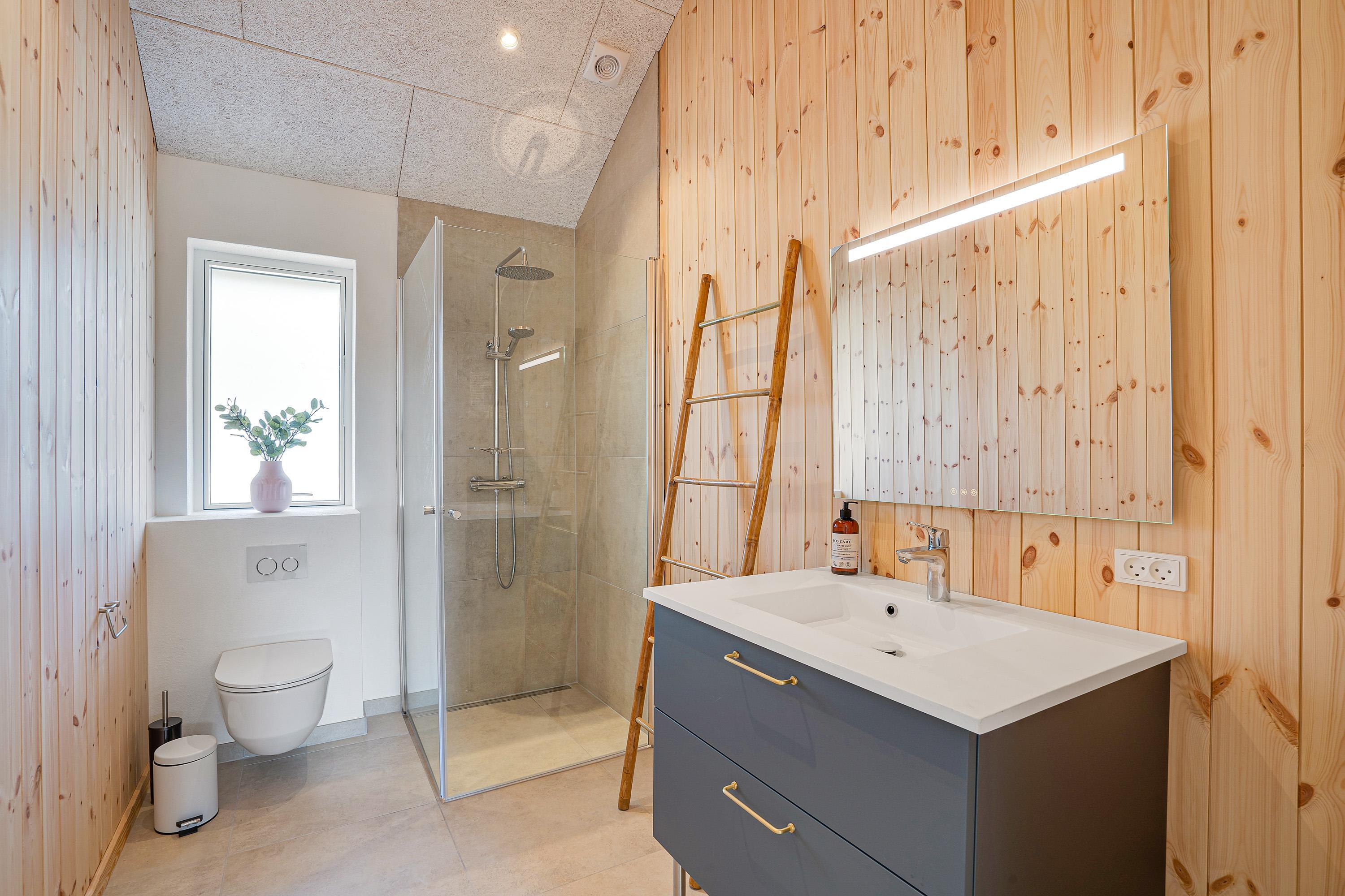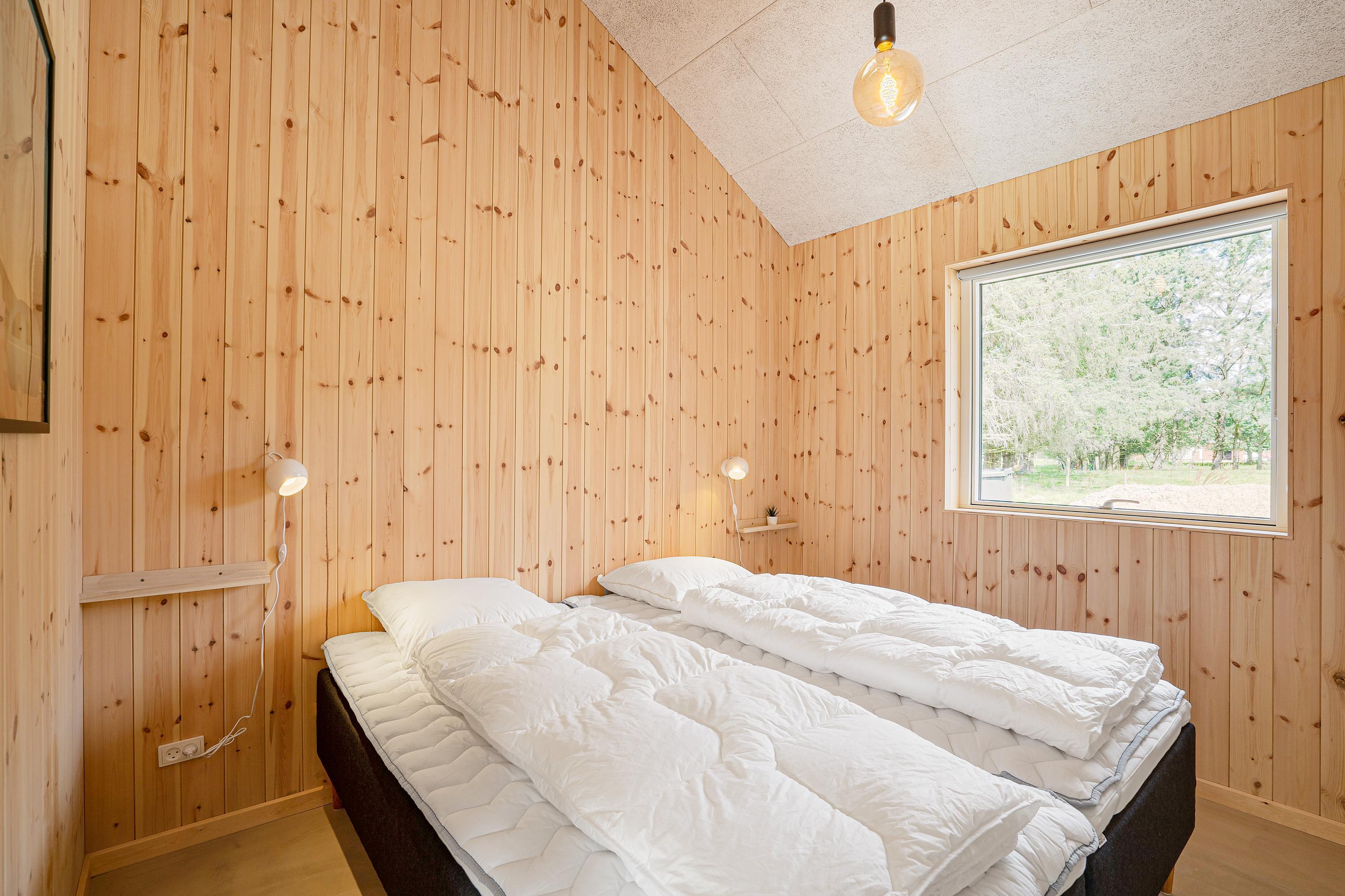 Det 172 kvadratmeter store aktivitetshus blev bygget i 2021, og her er der 4 soverum, som alle er udstyret med dobbeltsenge. Oppe på den hyggelige hems er der enkeltsenge. Hele sommerhuset har gulvvarme, så I skal ikke være bekymret for, at I kommer til at fryse fødderne.