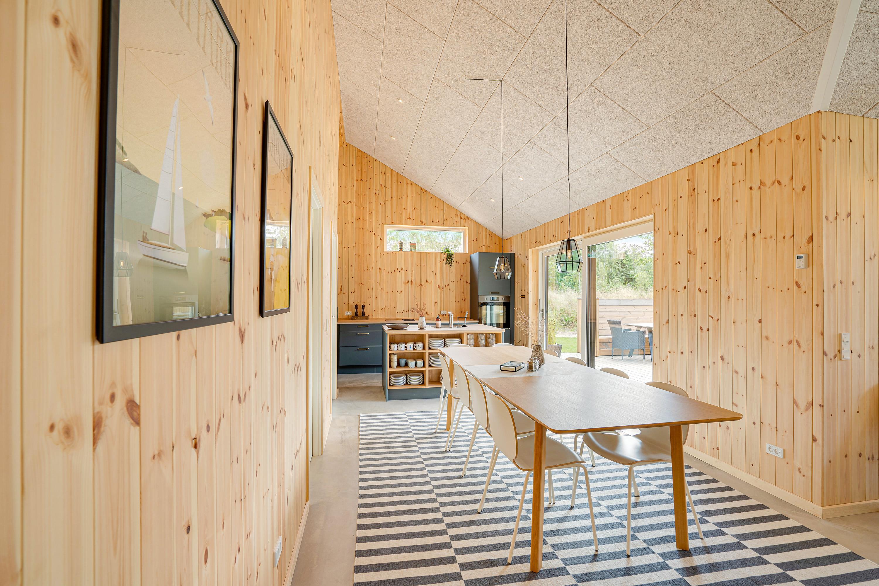 Sommerhusets hjerte er aktivitetsrummet med et aktivitetsbord, hvor I kan spille billard, airhockey eller bordtennis. I det rummelige køkkenalrum finder I køkkenet, hvor I kan tilberede feriens måltider. Køkkenet går i et med stuen, hvor I kan læne jer tilbage i sofaen og se en god film sammen.