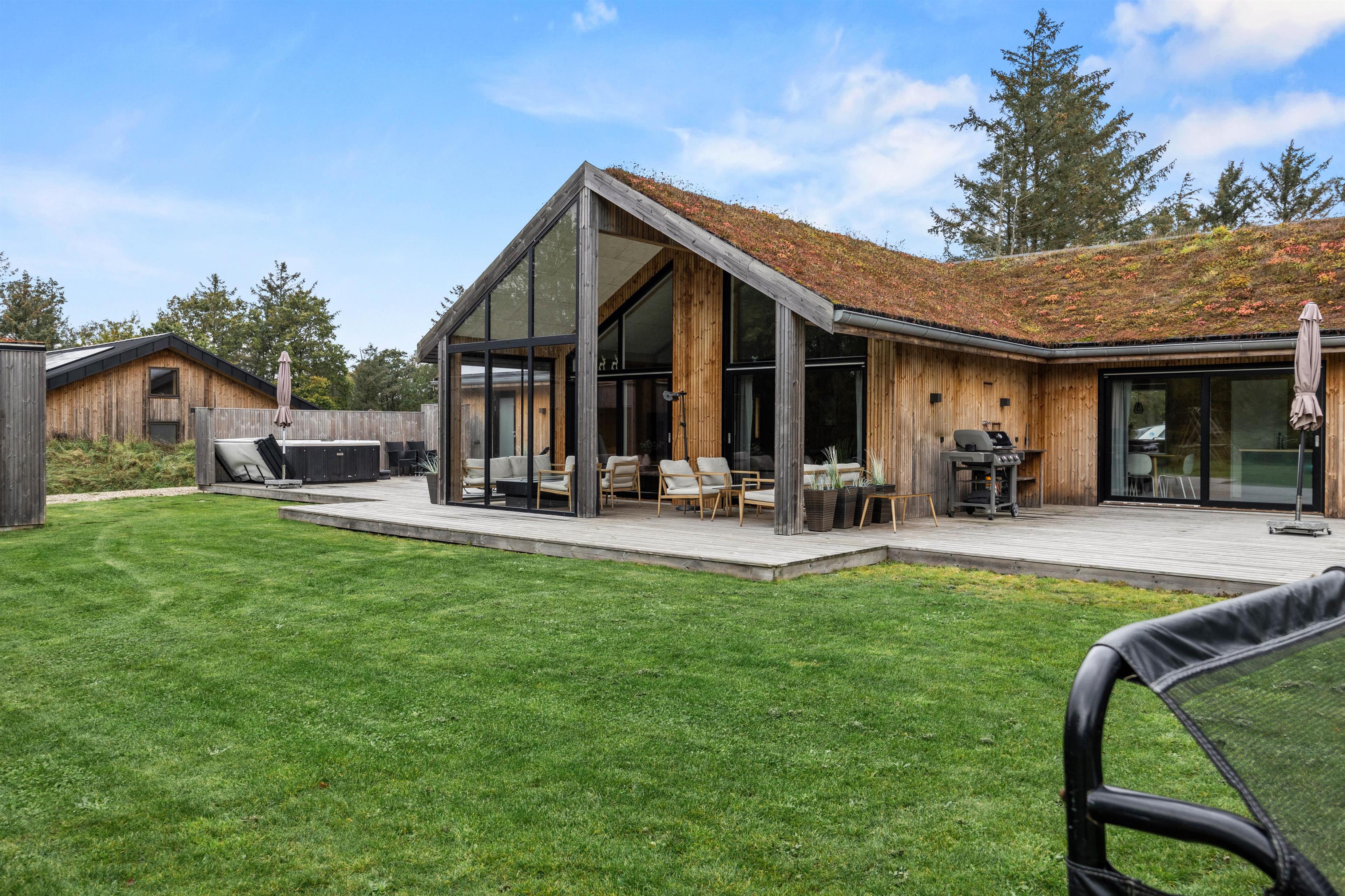 Stor naturgrund med udendørsspa, udesauna og udekøkken