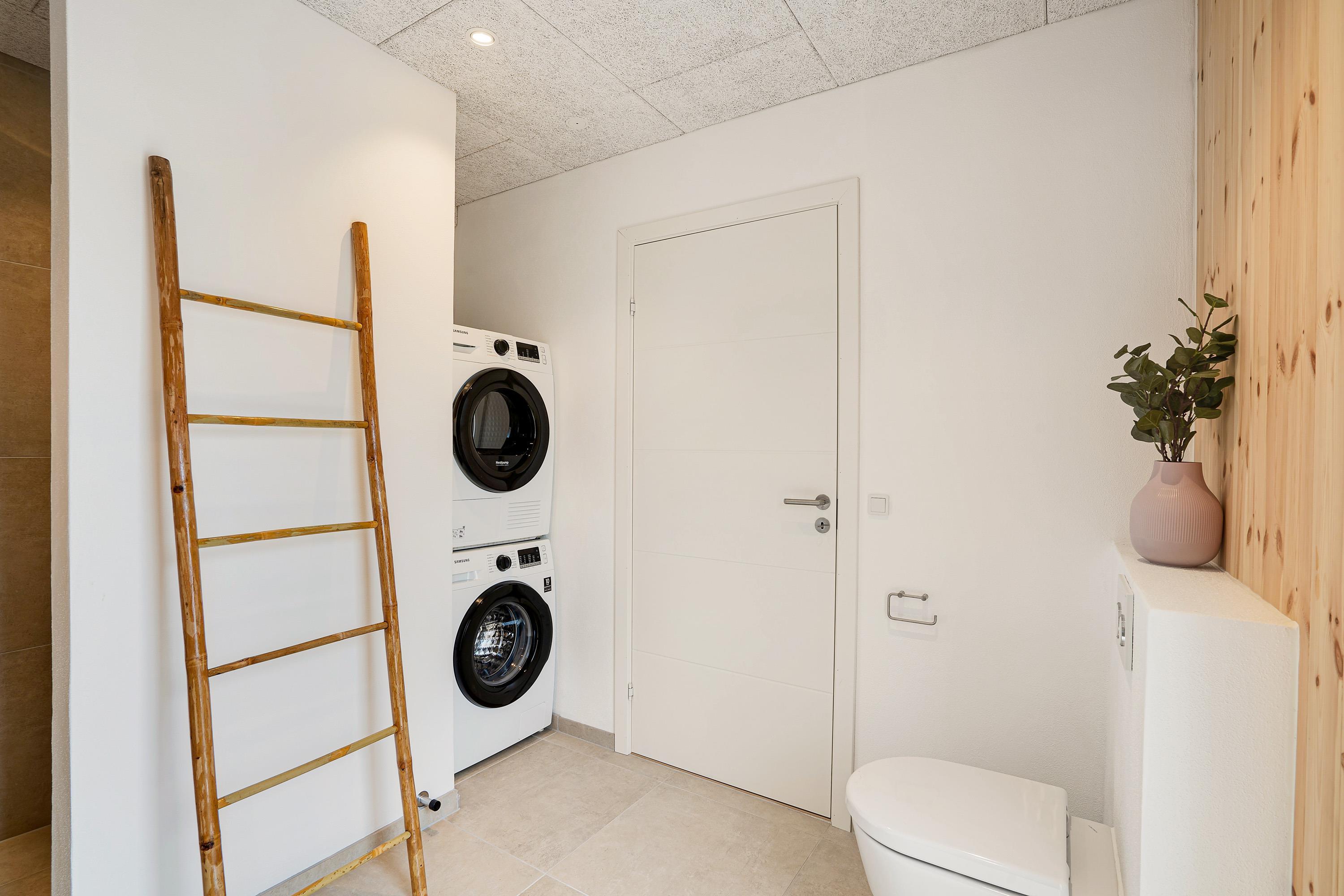Hverdagens bekvemligheder i form af både vaskemaskine, tørretumbler og opvaskemaskine følger også med. Jeres elbil kan lades op ved hjælp af ladestanderen - eget kabel (type 2) medbringes.
