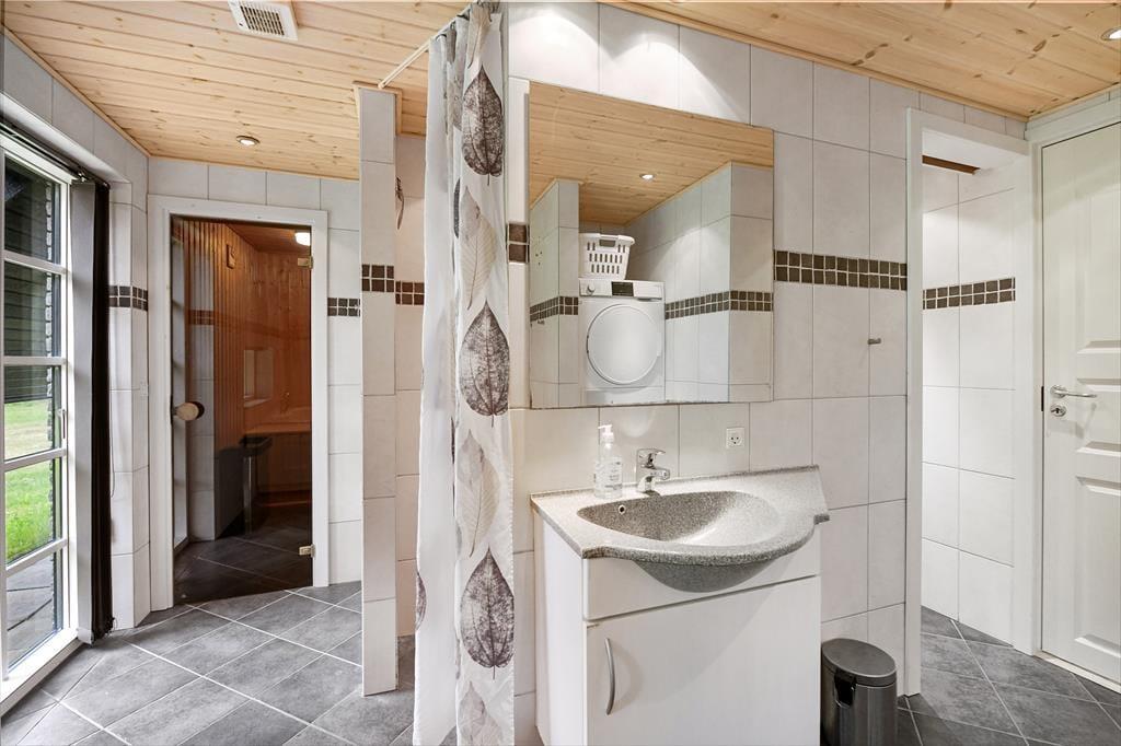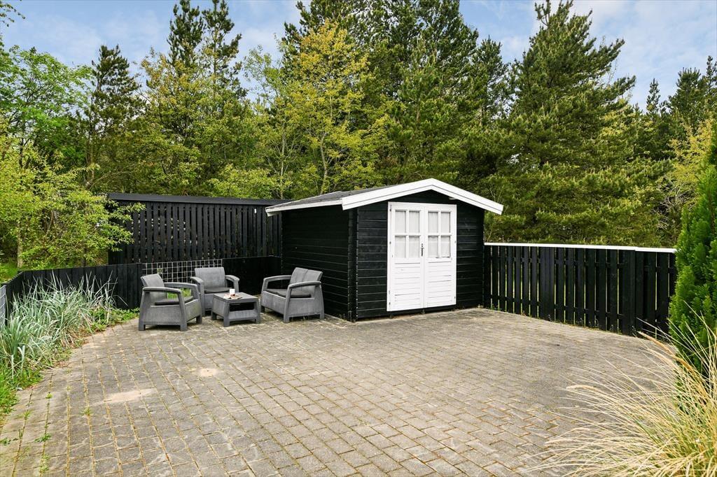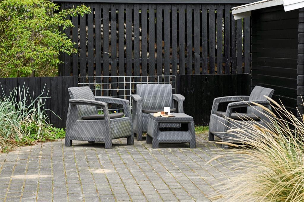 Udenfor venter en skøn, sydvendt terrasse med flere små hyggekroge, hvor du kan læne dig tilbage og nyde solen fra morgen til aften. Den store, indhegnede grund gør det oplagt at tage hunden med på ferie – her er masser af plads at boltre sig på uden bekymringer. Børnene vil elske haven, hvor der både er gynge, trampolin og sandkasse, som indbyder til leg og latter fra morgen til aften. Mens de små bygger sandslotte, kan du finde dig til rette i en liggestol og mærke roen brede sig. Terrassen er det perfekte sted til både morgenkaffe og aftenhygge – måske med et glas vin, mens grillen bliver varm og solnedgangen farver himlen i varme nuancer. Her får I privatliv og fred midt i naturen, med lyden af fuglesang og duften af skov omkring jer.