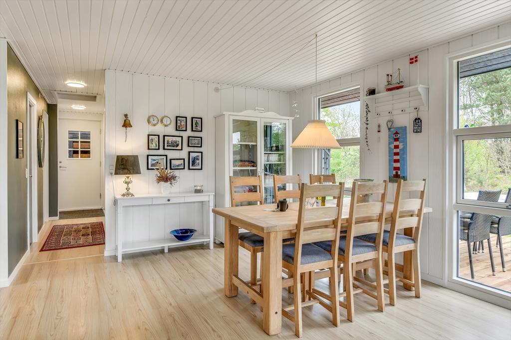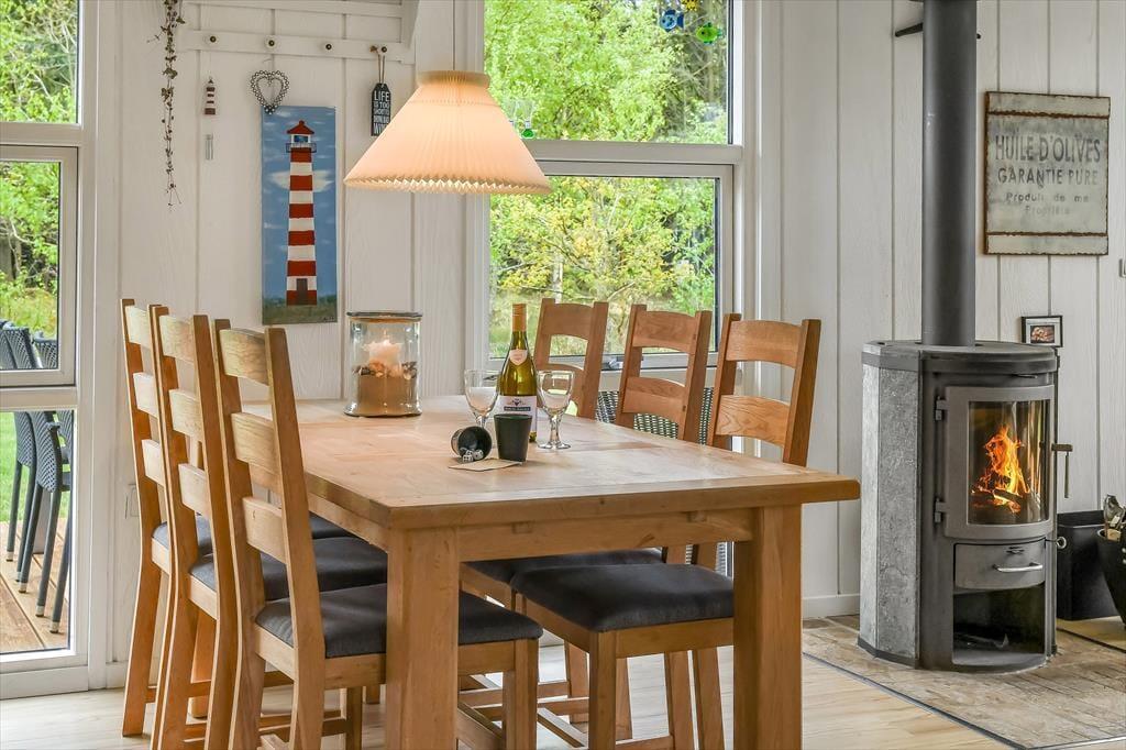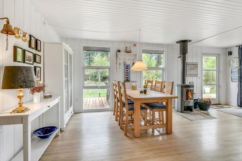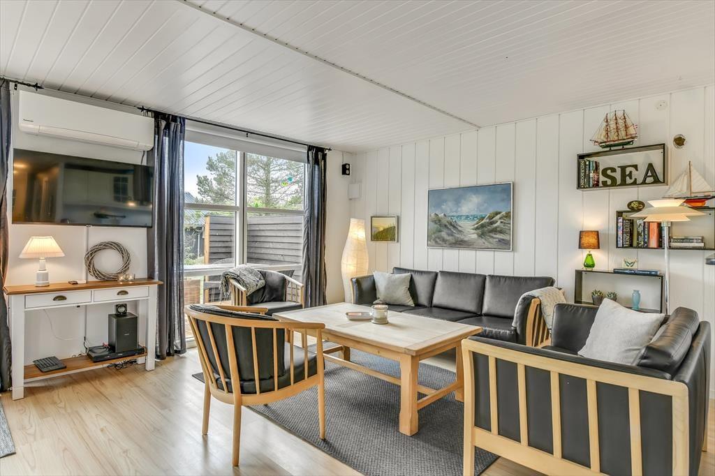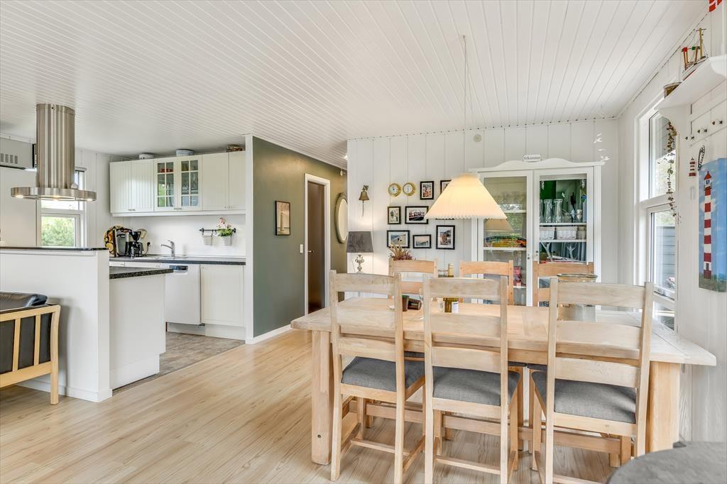 Træder du indenfor i sommerhuset på Fuutvej 8, bliver du straks mødt af en varm og indbydende atmosfære. De lyse omgivelser og den hyggelige indretning skaber en rolig base, hvor det er nemt at lade skuldrene falde ned og lade ferien begynde. Her er plads til at nyde morgenkaffen med udsigt til haven, læse en bog i ro og mag eller spille spil med familien, mens dagens strandplaner lægges. Det åbne opholdsrum inviterer til samvær, og overalt i huset fornemmer du, at det er indrettet med omtanke og kærlighed til det gode ferieliv. Her er hver en krog skabt til hygge, afslapning og gode stunder – uanset om solen skinner, eller regnen trommer mod ruden.