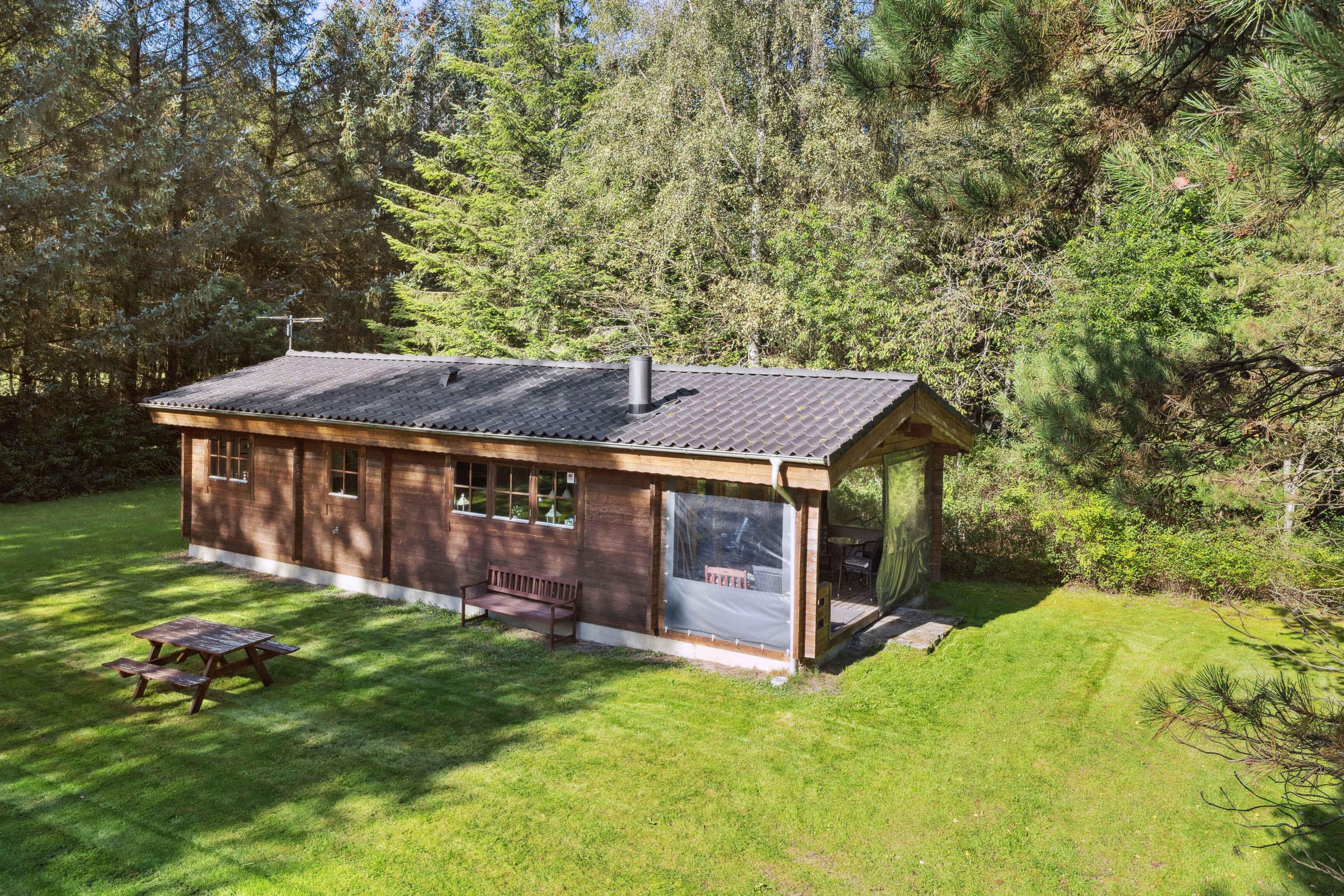 Hyggeligt sommerhus nær Herning med naturgrund, terrasse, varmepumpe og brændeovn til afslappende ferie året rundt.