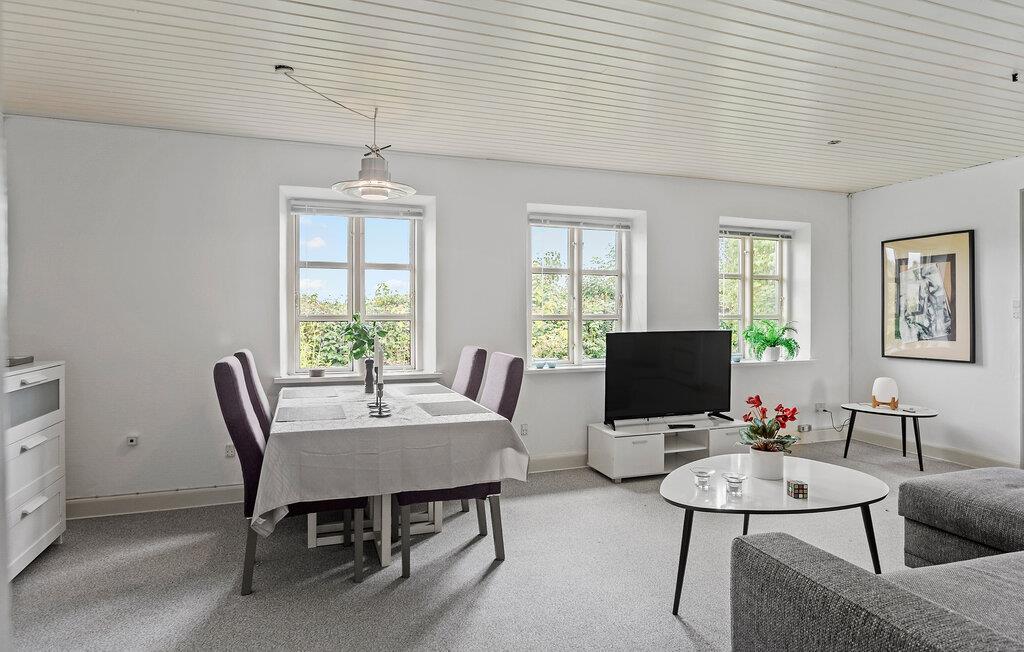 Boligen er pænt og lyst indrettet i en enkel farveskala, og så er der en stemningsskabende brændeovn til de kølige aftener. I udestuen kan I nyde solen i det tidlige forår, og når sommeren får fat, kan I grille på terrassen. Børnene og jeres hunde bliver vilde med den hyggelige have.