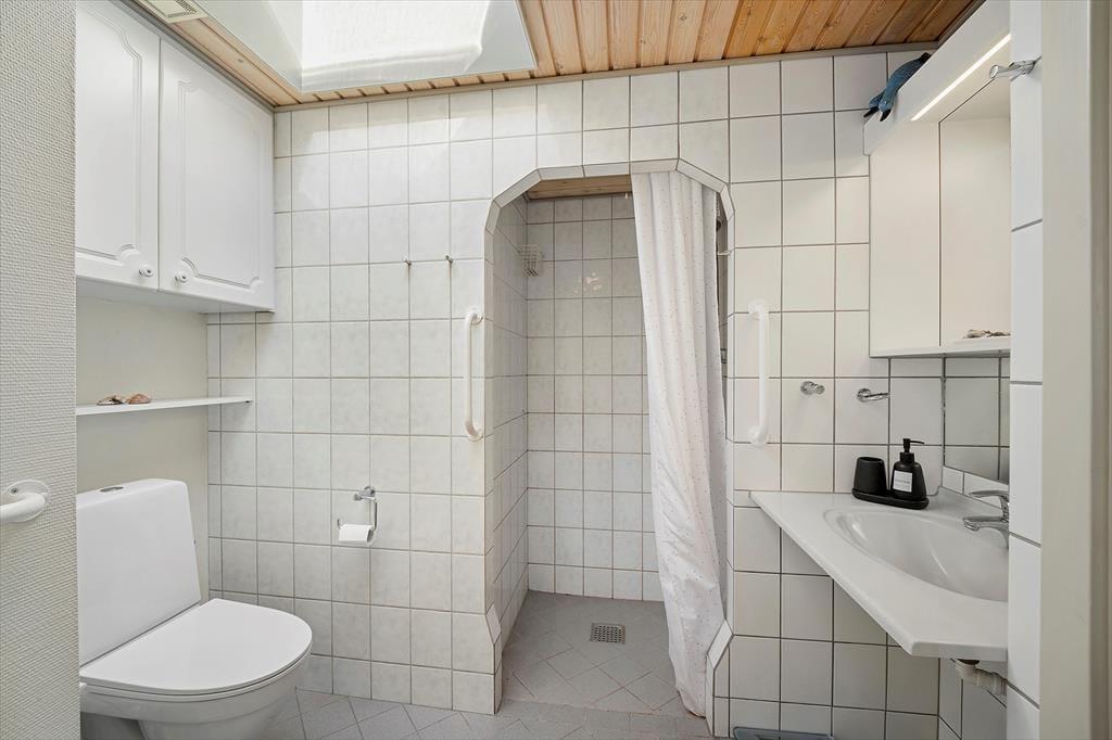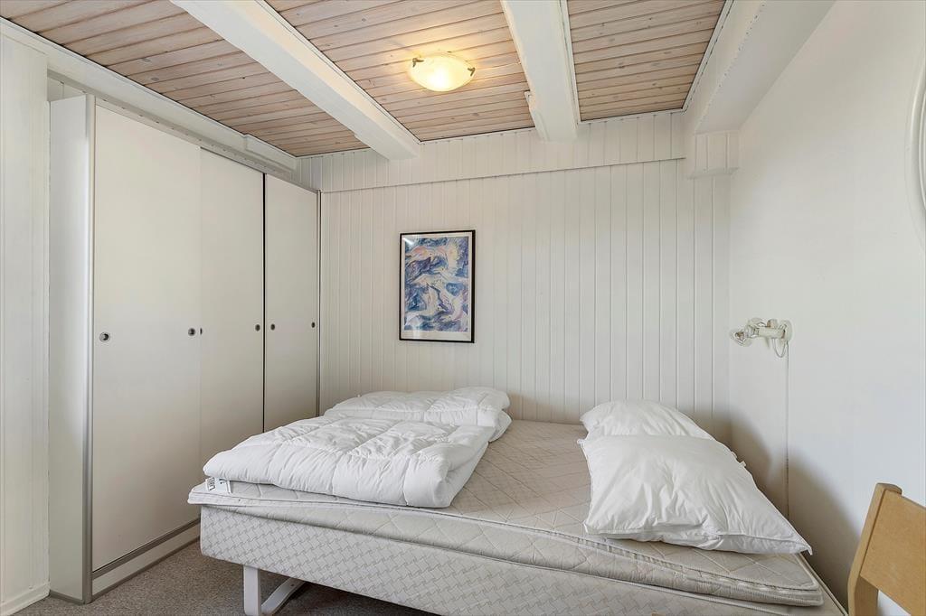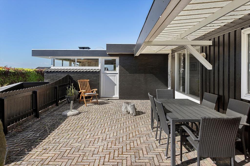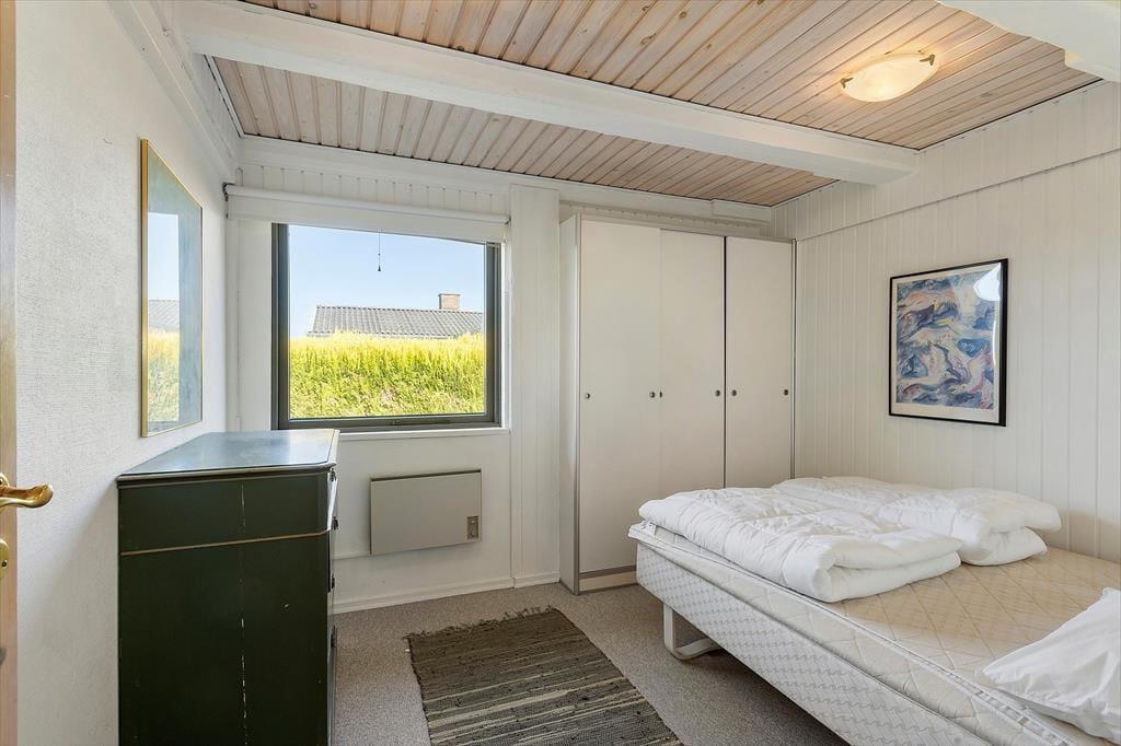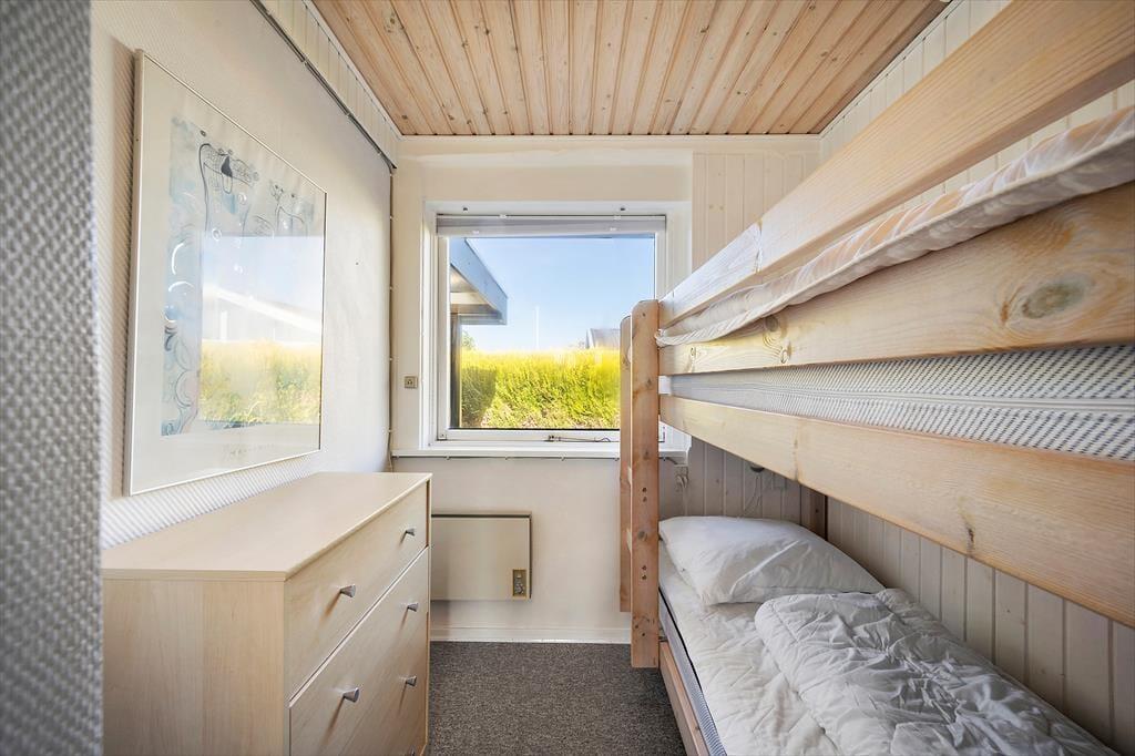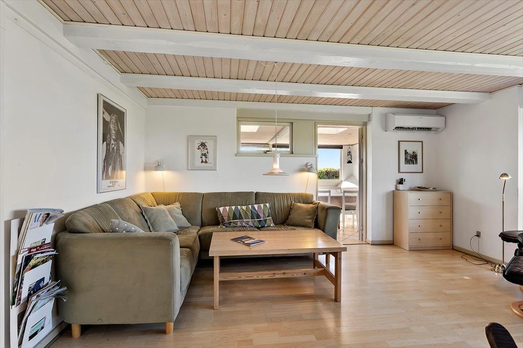 Rummeligt feriehus med plads til 8 personer. I huset er der et veludstyret køkken i åben forbindelse med spiseplads. Herfra er der adgang til en hyggelig opholdsstue med brændeovn og udsigt til vandet. Herudover er der en spisestue med udgang til terrasse, et godt badeværelse med bruser og 3 gode soveværelser. Der er desuden endnu et badeværelse kun med bruser (ikke toilet) samt en vaskemaskine. Fra terrassen er der adgang til et yderlige soverum.