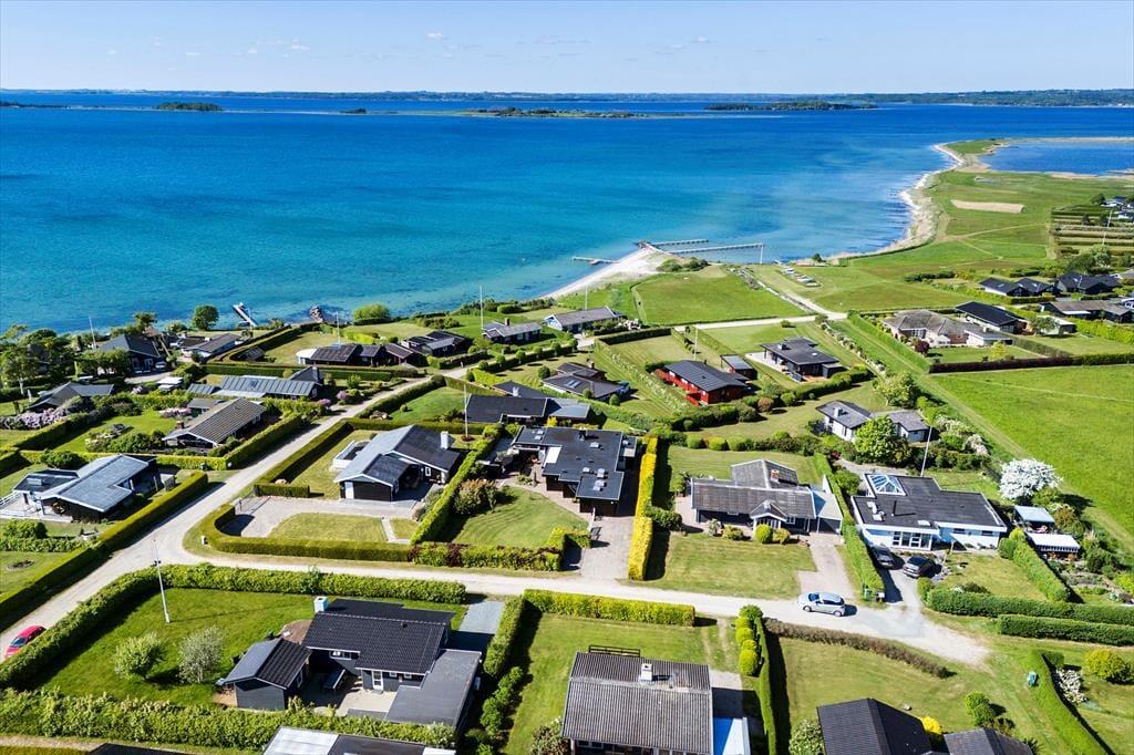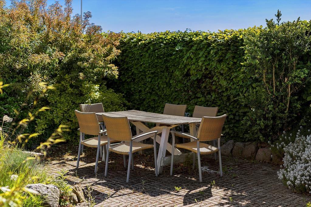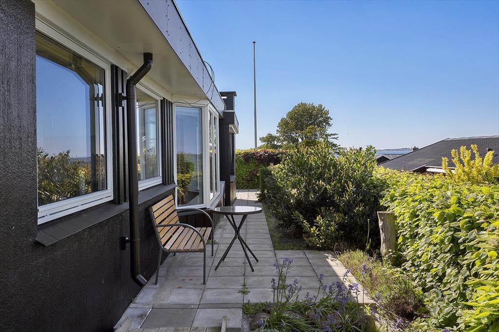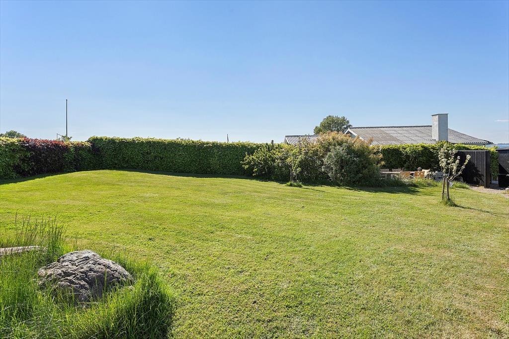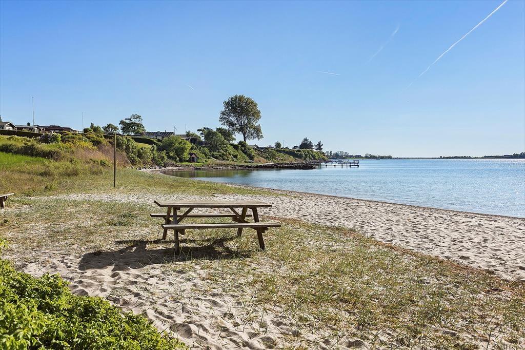 Huset er beliggende kun 150 meter fra Hesseløje Strand med blødt sand og gode bademuligheder. Til huset er en skøn terrasse hvor både solens stråler og udsigten til vandet kan nydes. Herudover er der em dejlig have med blomstrende buske og græsplæne. Her er flere gode terrasser med havemøbler, grill og parasol.
