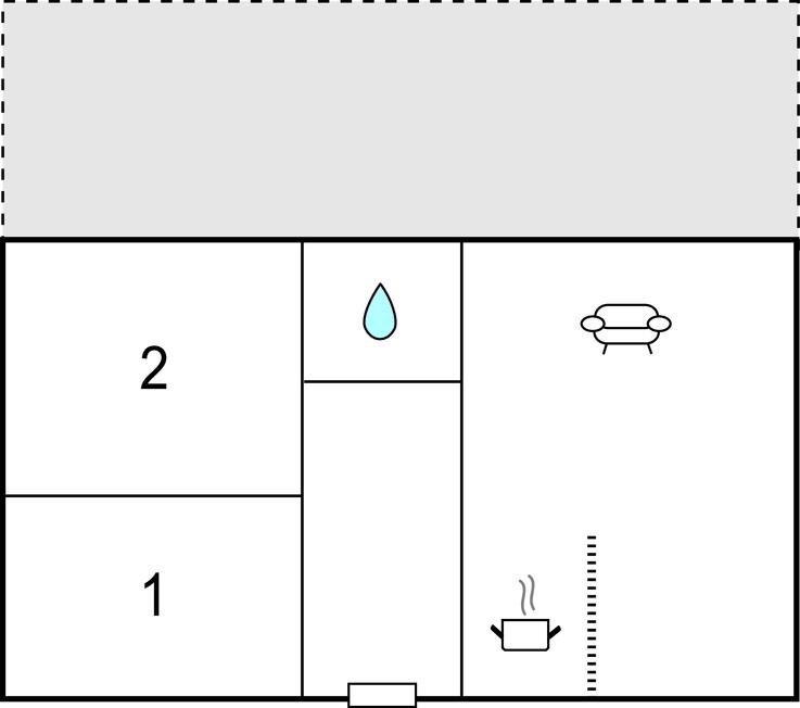 Opholdsstue/køkken 60m2 - 2 Sovepladser. (Sofa, madras eller lignende).