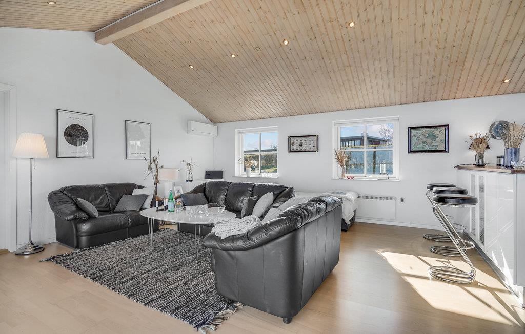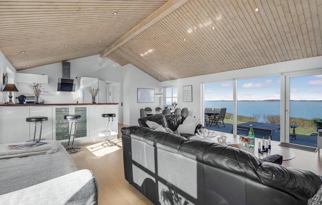 Fantastisk panoramaudsigt! Her får I et rigtig hyggeligt indrettet feriehus beliggende i 1. række til vandet med en betagende udsigt. Den smagfuldt indrettede stue ligger i åben forbindelse med køkkenet og spisepladsen. To dejlige soveværelser samt et flot badeværelse fuldender oplevelsen. På den store terrasse kan I sidde og nyde udsigten over vandet, mens I hyggesnakker, drikker en kop kaffe eller måske nyder en lækker middag tilberedt på grillen.