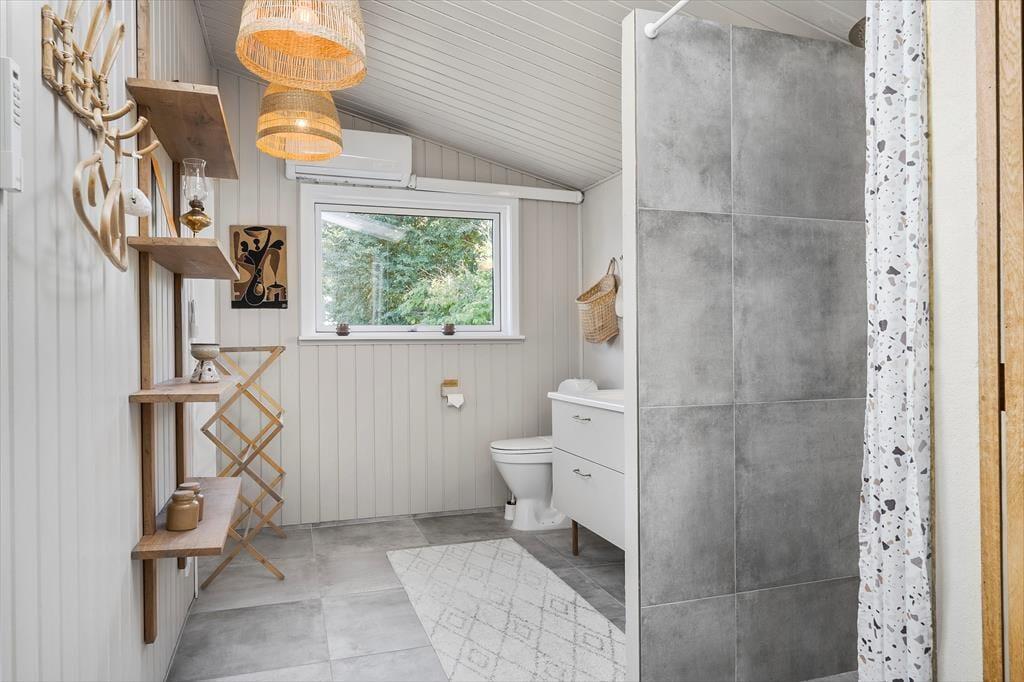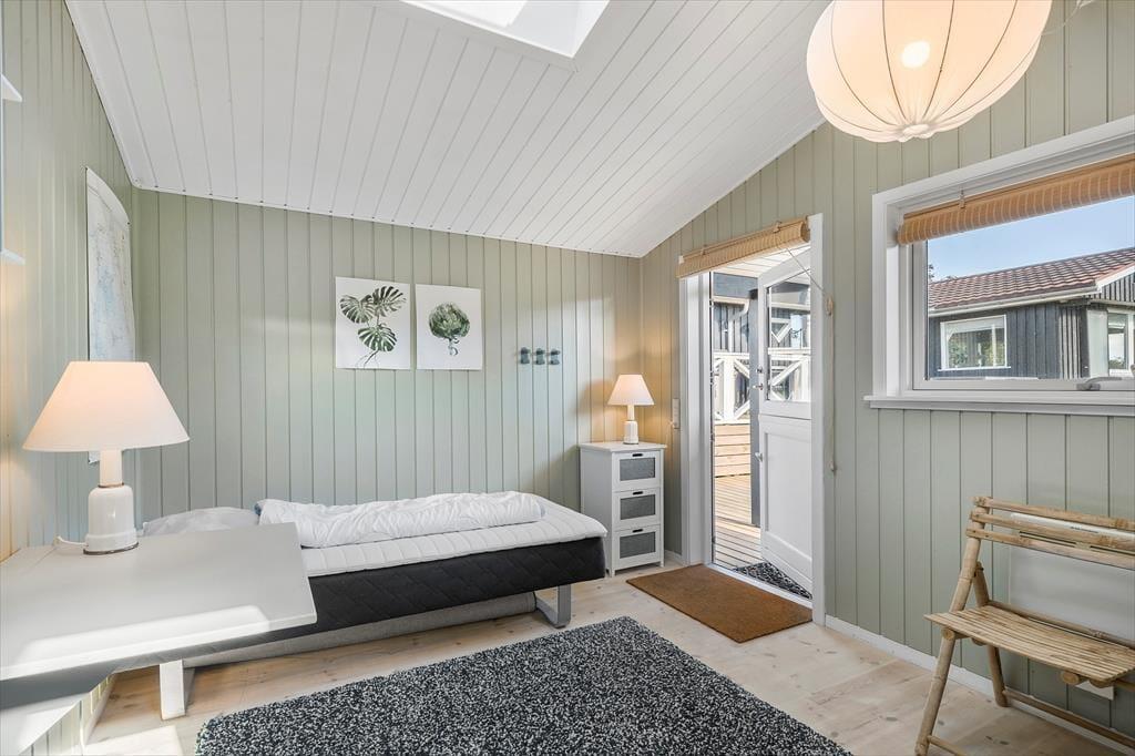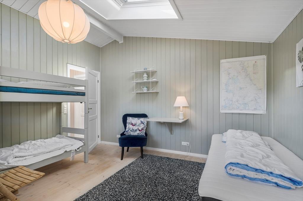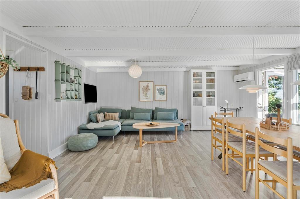 Når du træder ind i sommerhuset, mødes du af en lys og hyggelig atmosfære, der straks får dig til at føle dig hjemme. Den rummelige stue og køkken/alrum er det perfekte sted for samvær med familien eller vennerne. Den åbne planløsning giver god plads til både madlavning og hygge, mens brændeovnen i stuen sørger for en varm og indbydende stemning på køligere dage. Fra stuen er der udgang til den dejlige terrasse, hvor du kan nyde solens stråler og den betagende udsigt over vandet. Sommerhuset rummer tre dejlige soveværelser, som hver er indrettet med komfortable senge, der sikrer en god nattesøvn, så du er klar til nye eventyr næste dag. Badeværelset er udstyret med brus, så du kan friske dig op efter en dag ved stranden.