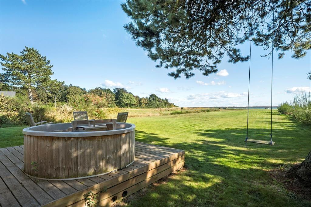 Den store terrasse og den skønne have omkring sommerhuset giver masser af muligheder for at nyde udendørslivet. Her kan du tage et afslappende spabad i vildmarksbadet, nyde solen eller bare slappe af med en god bog. Når du har lyst til at tage en dukkert, er det kun en kort gåtur til den dejlige badestrand, hvor du også finder en badebro – et perfekt sted til at tage en svømmetur i det friske vand. Den rolige beliggenhed tæt på vandet giver mulighed for lange gåture langs stranden, eller du kan tage en pause og nyde den imponerende udsigt over bølgerne.
