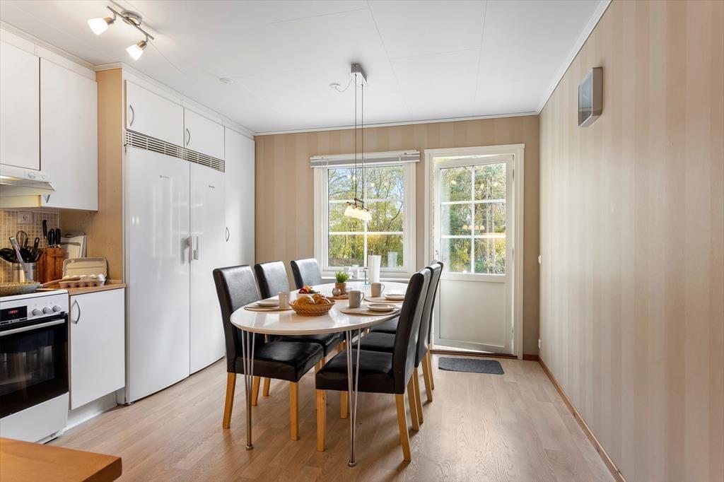 Udenfor venter en stor terrasse og en skøn naturgrund, der indbyder til udendørs aktiviteter og afslapning. Terrassen er det perfekte sted at nyde din morgenkaffe, mens du lader blikket glide ud over det smukke landskab. Her kan du samle dine nærmeste til hyggelige grillaftener, mens solnedgangen maler himlen i varme farver. Grunden omkring sommerhuset er rig på muligheder for leg og udforskning, og du vil nemt kunne finde en afsides krog, hvor du kan nyde en stille stund med en god bog eller bare lytte til fuglenes kvidren.