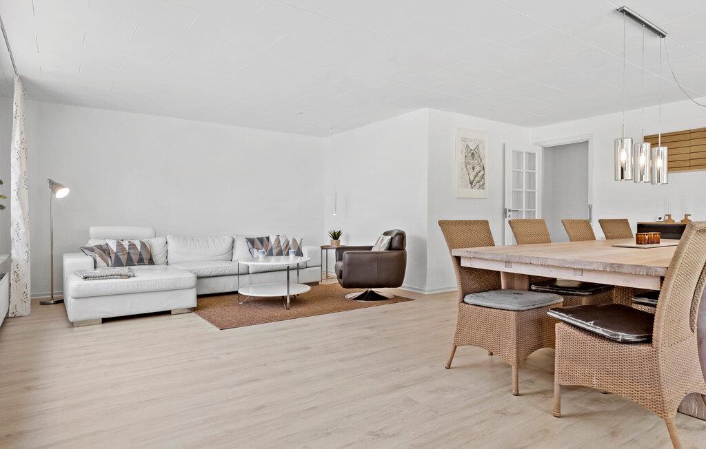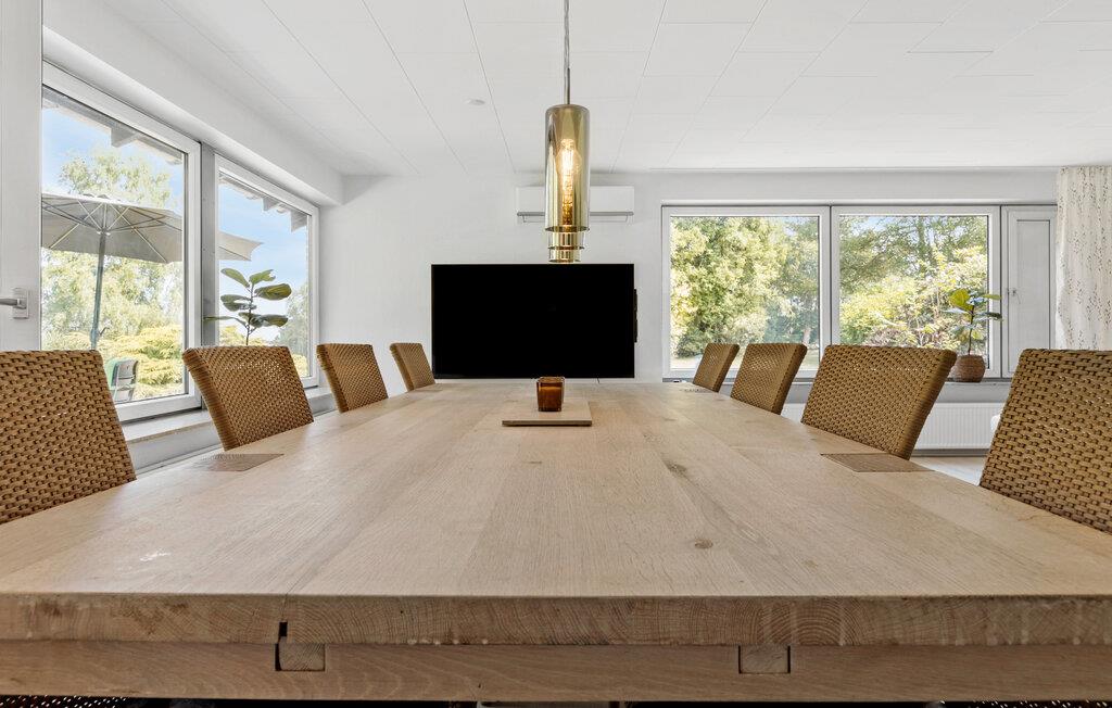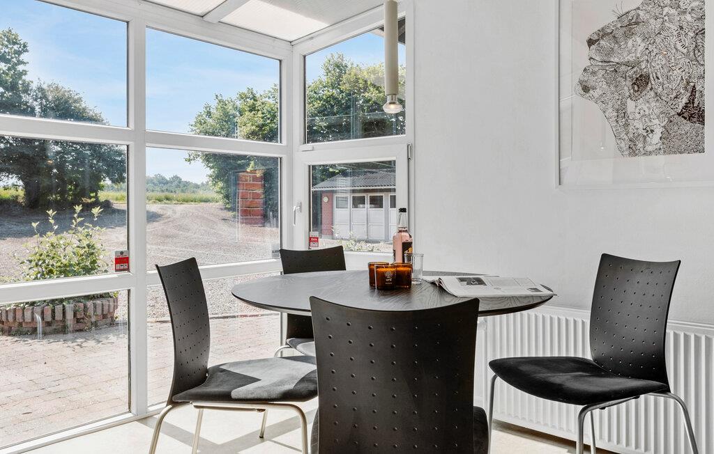Velkommen til Himmark Strand, som lægger op til en ferie med fred, ro og komfort i skøn forening. Her kan I sætte hverdagen på pause og nyde nogle afslappende dage med frisk luft og smuk natur. Jeres feriehus giver jer det ideelle udgangspunkt for netop det. Her får I en moderne og velindrettet base med mange hyggelige kroge og siddepladser. De store vinduespartier lukker masser af lys ind i boligen, mens I samtidig kan nyde den dejlige udsigt til den grønne have. Det store spisebord bliver garanteret centrum for nogle rolige aftener med lækre retter og senere brætspil.