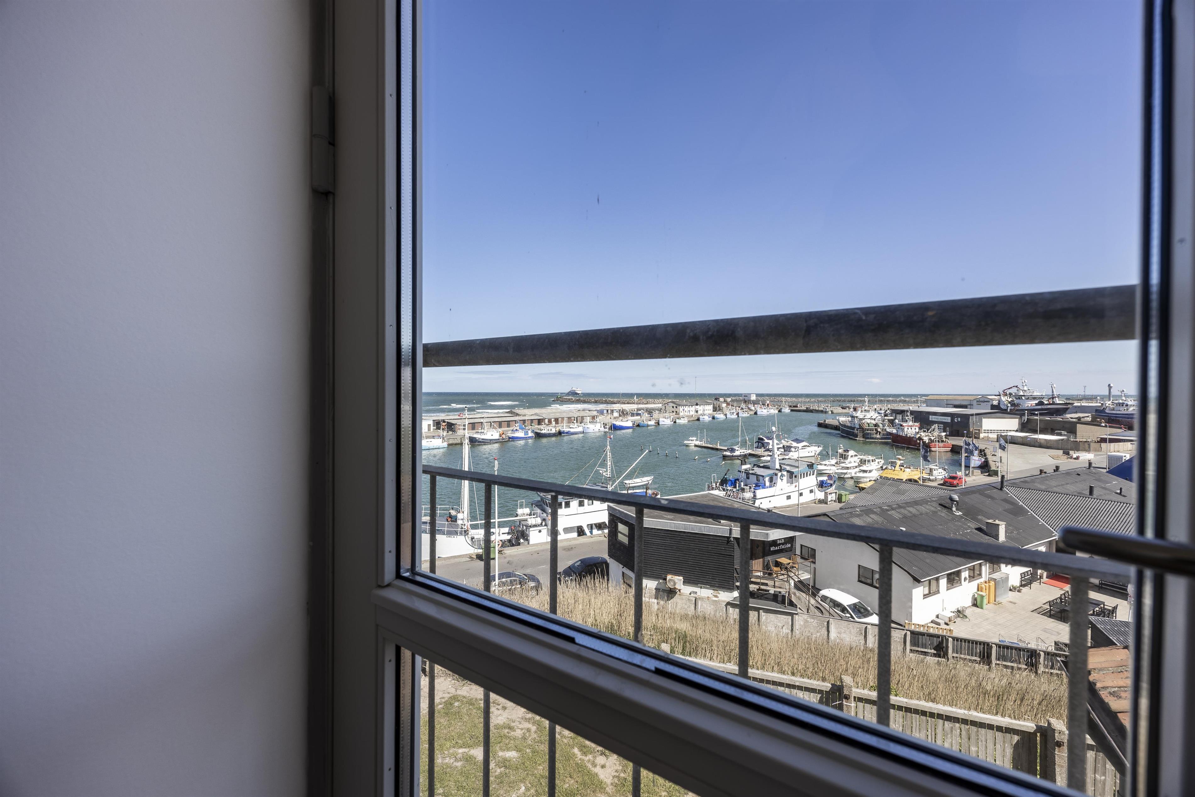 Selvom huset ligger midt i Hirtshals by, er der mulighed for ro og privatliv på de skønne terrasser. Den ene terrasse er overdækket og byder på læ, så du kan nyde udelivet i al slags vejr. Terrassen vender væk fra byens liv, hvilket gør det muligt at slappe af helt ugeneret med udsigt til havet og havnens stemningsfulde liv. Her kan du nyde din morgenkaffe eller et glas vin i aftensolen, mens du følger skibene og færgerne sejle ind og ud af havnen.