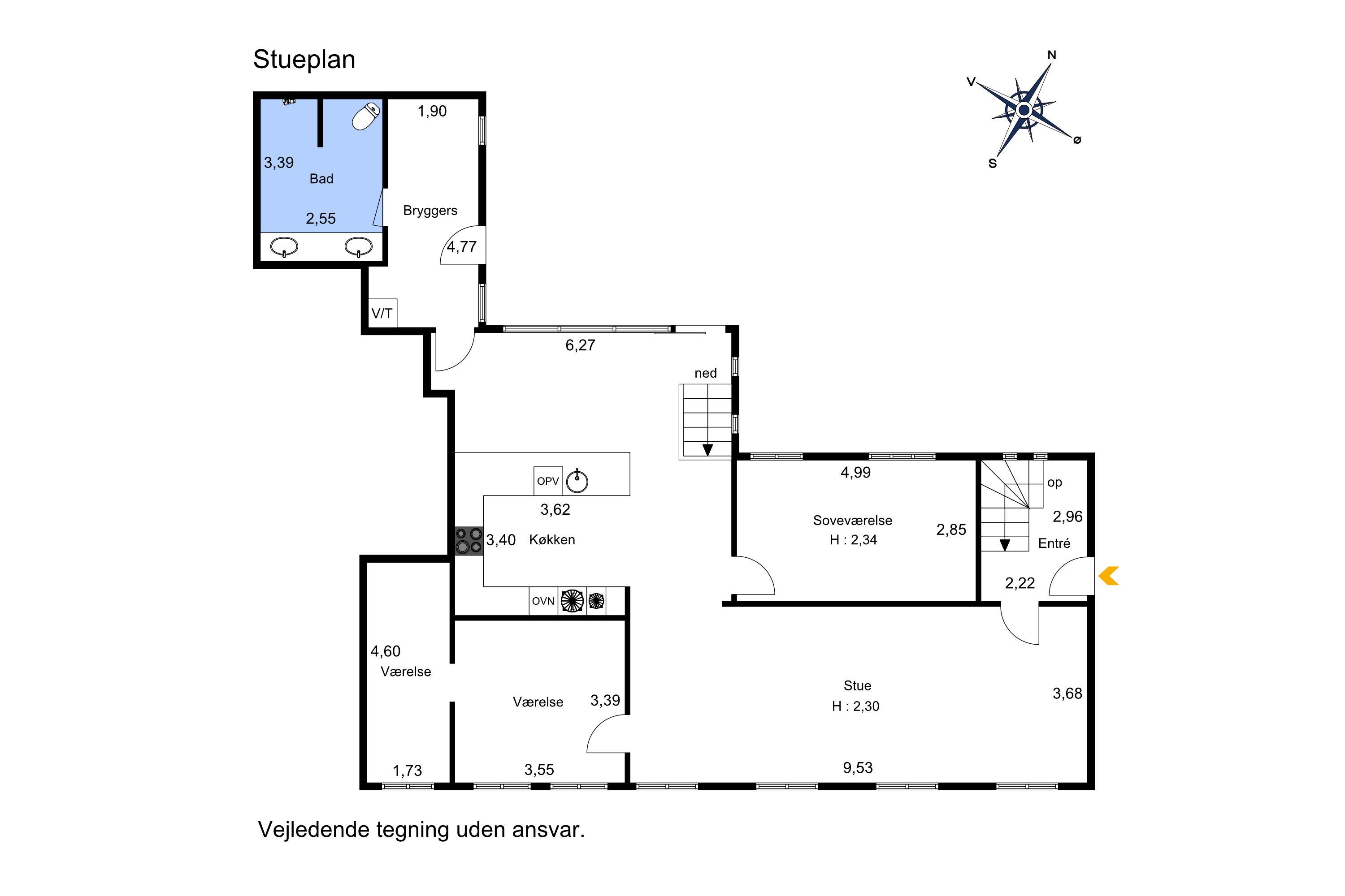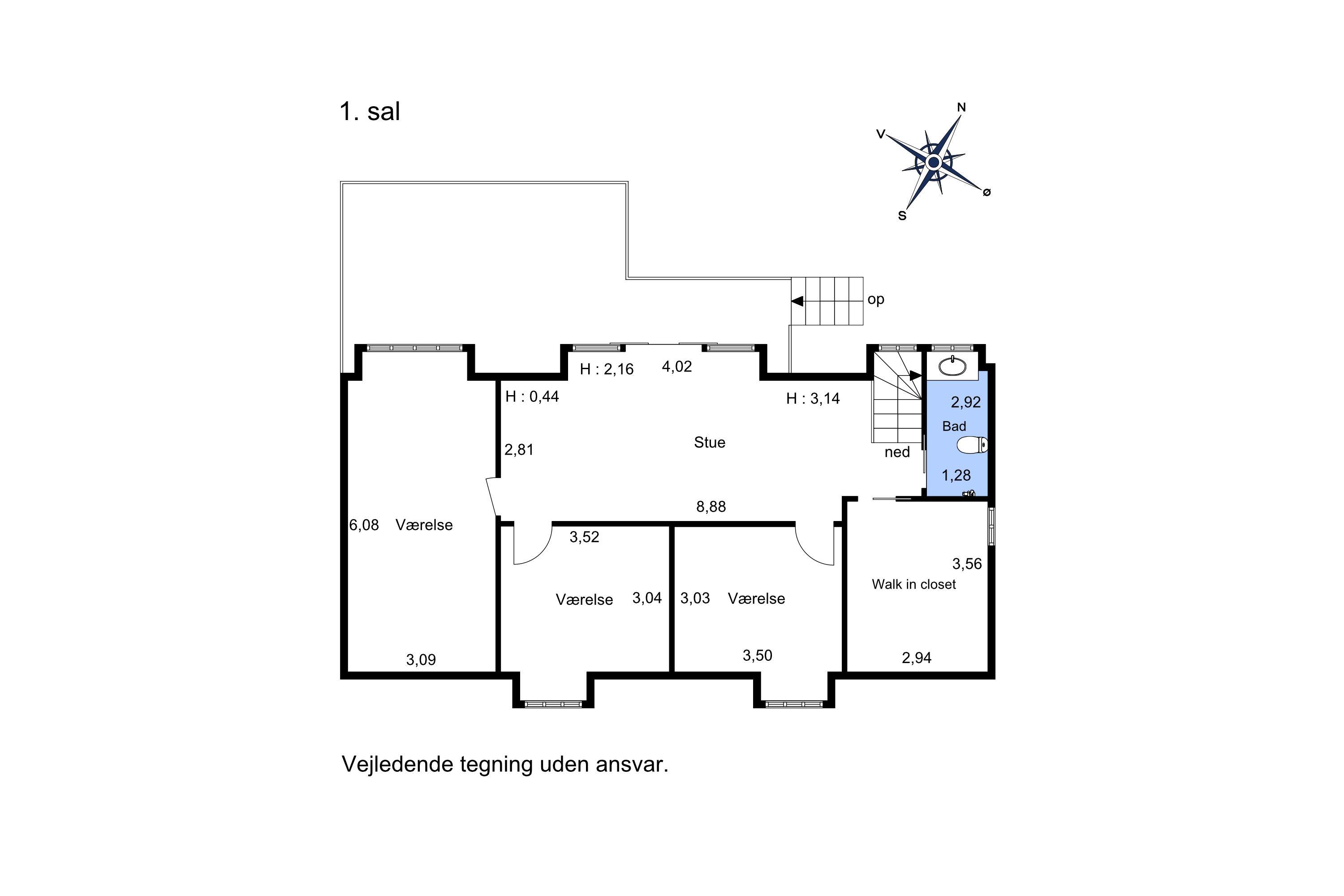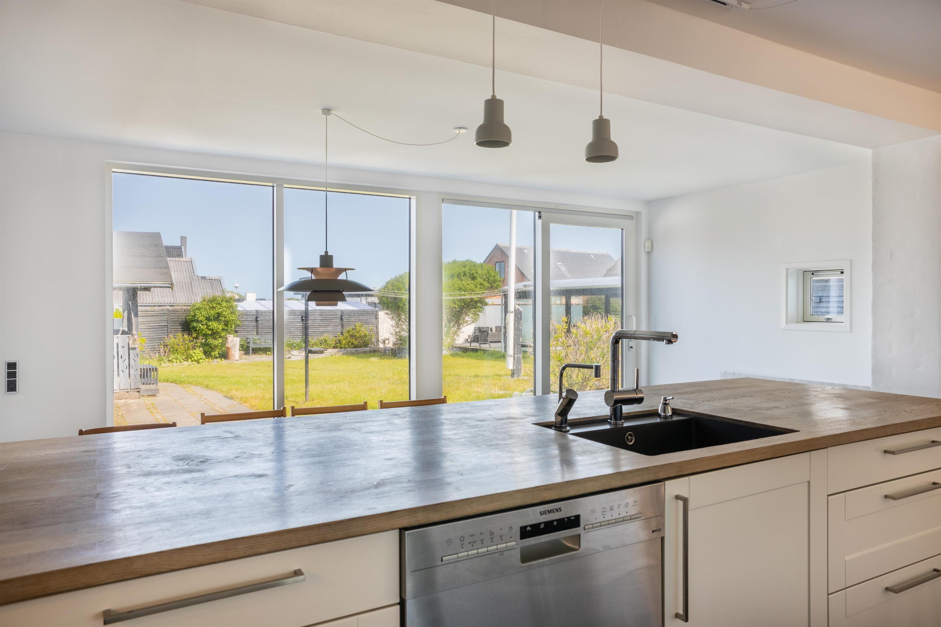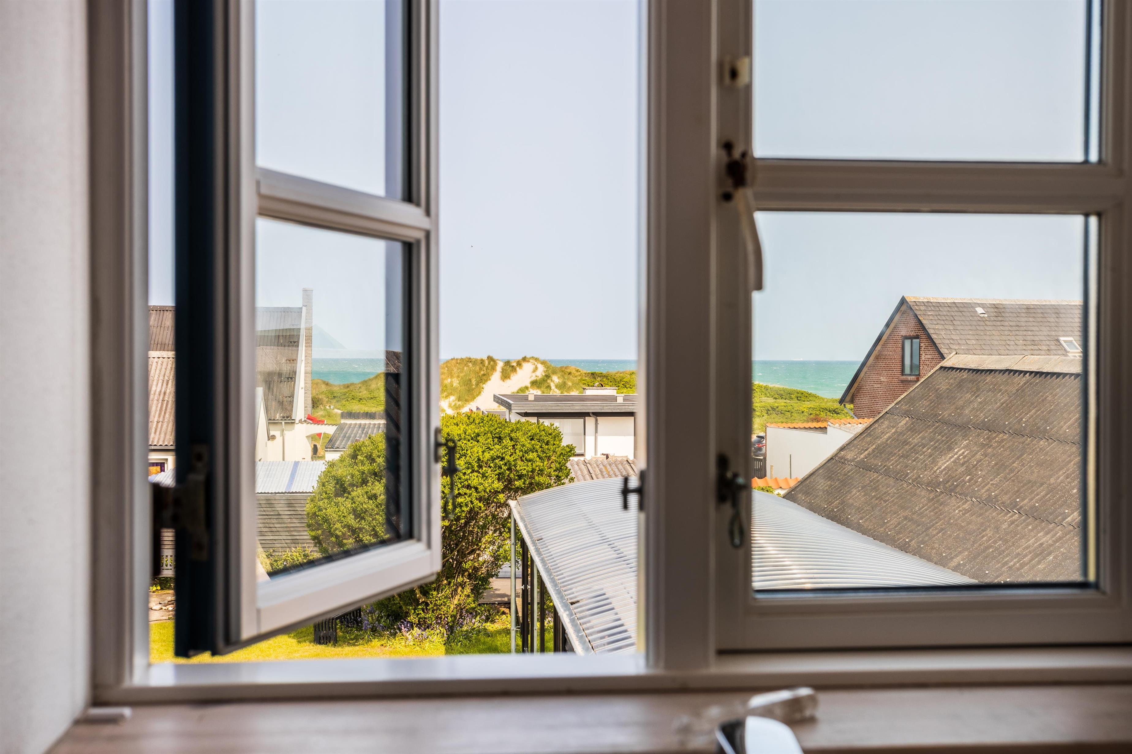 Stueplan består af et dejligt køkken med spiseplads og direkte udgang til haven. Stueetagen byder desuden på en stor stue, to gode værelser samt et stort badeværelse med brus og dobbeltvask. Fra førstesalen kan I nyde udsigten til Vesterhavet og det smukke lysindfald fra de store vinduespartier.