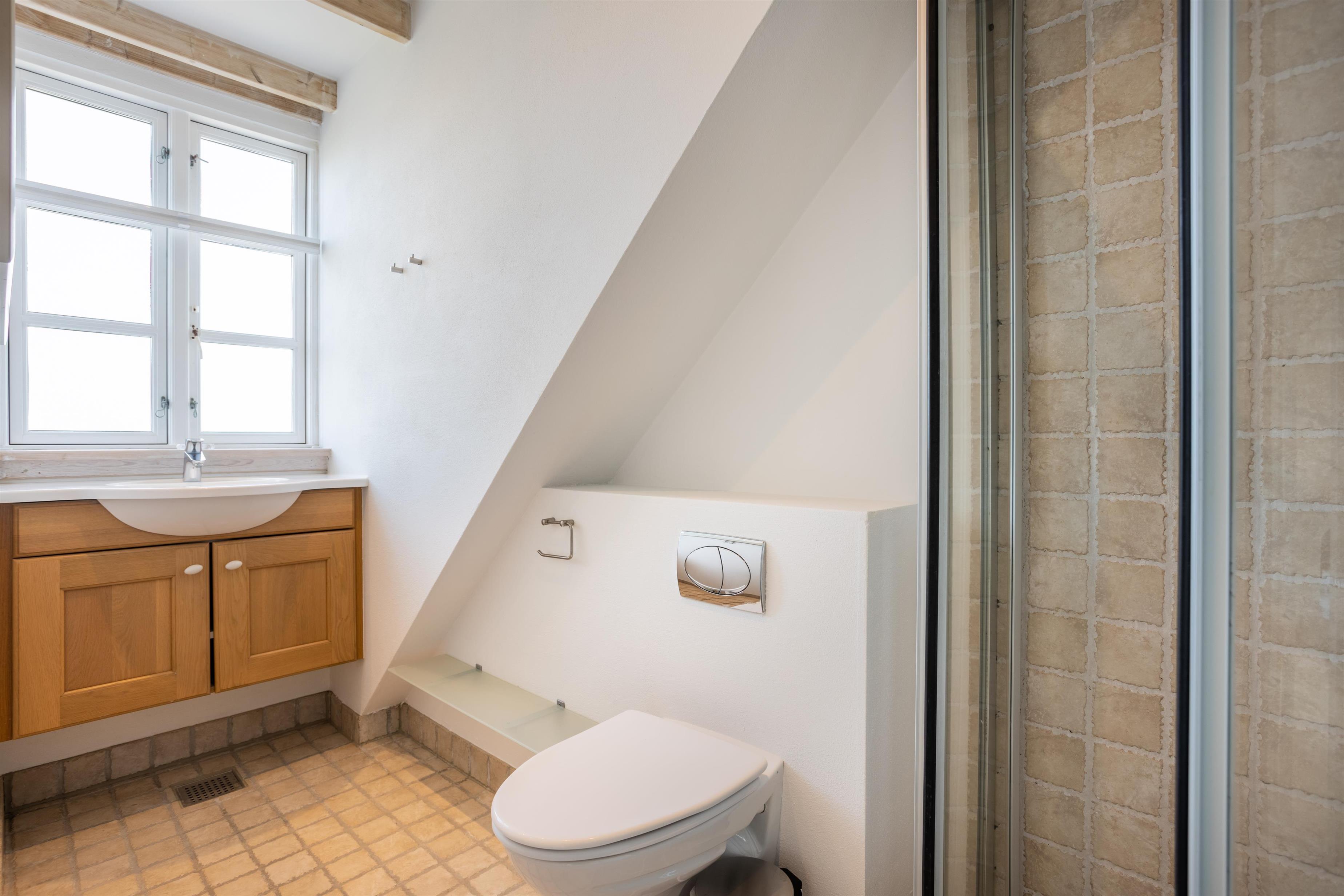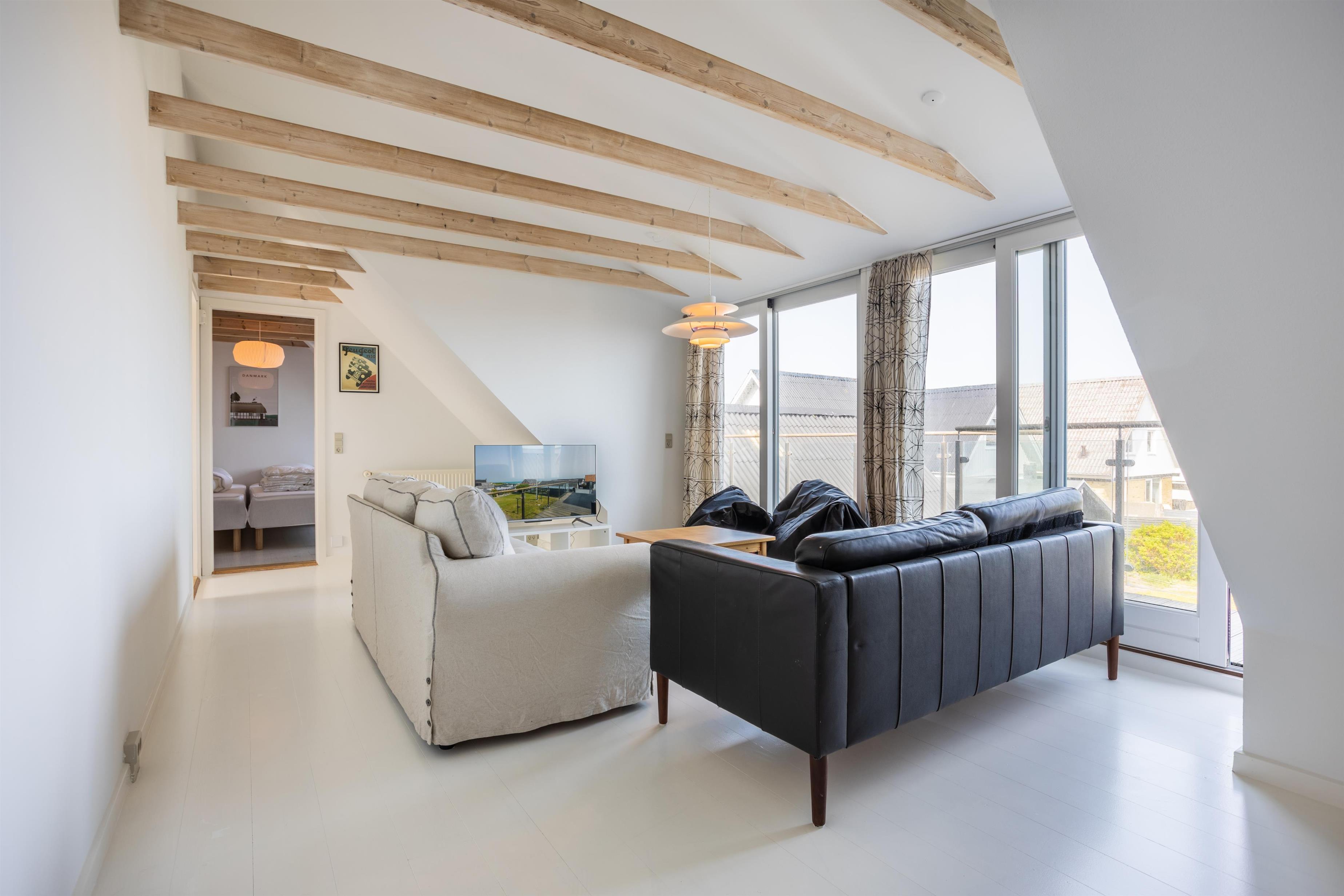 Overetagen rummer en stor stue, 3 værelser, 1 walk in closet og et badeværelse med bruseniche og toilet. Fra altanen kan I nyde morgenkaffen til den skønneste udsigt, eller tage et koldt gals vin med op og nyde den betagende solnedgang.