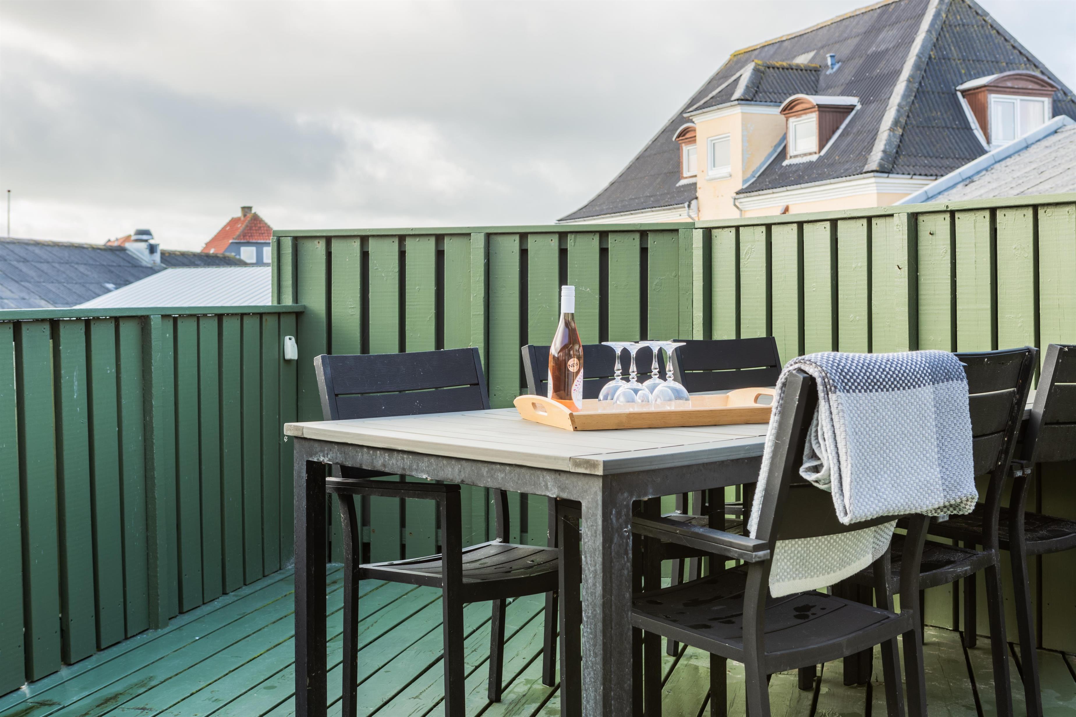 Fra køkkenet er der adgang til terrassen, hvor de lyse aftener og smukke solnedgange kan nydes, og hvor I kan nyde måltider i det fri eller slappe af efter en dag fyldt med oplevelser.