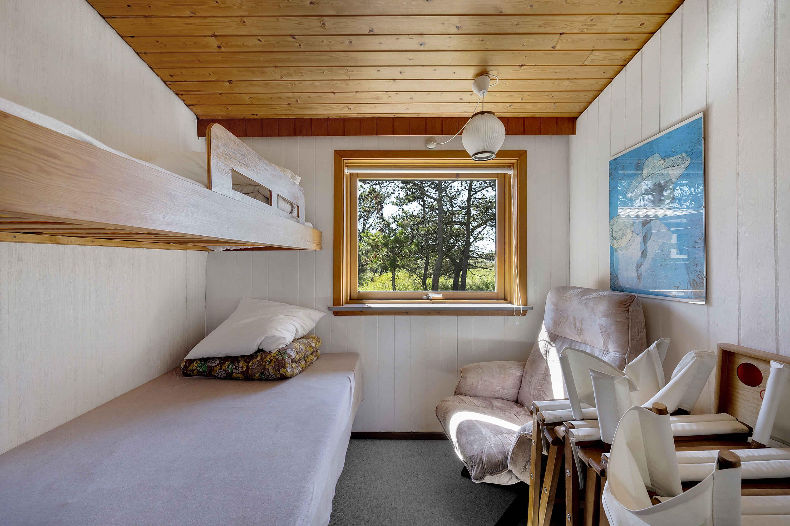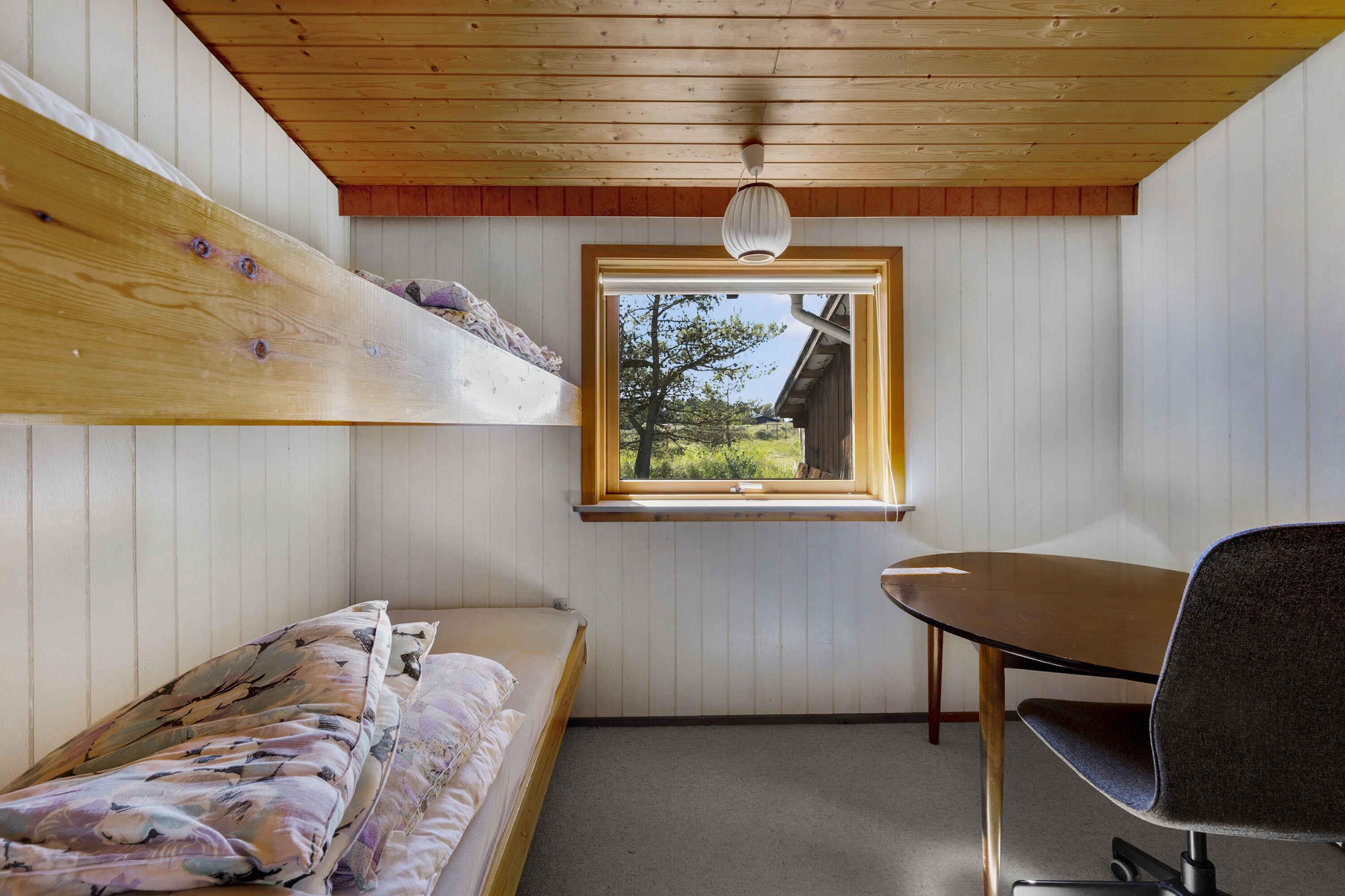 Beliggende ved Kjul Strand nær Hirtshals, åbenbarer dette sommerhus sig i hjertet af en naturskøn oase, kun et stenkast væk fra en betagende sandstrand. Den indretningsmæssige harmoni præges af et hyggeligt soveværelse med dobbeltseng samt to soveværelser, hvor hver eneste køjeseng vugger dig i drømmeland. Og lad os ikke glemme den rummelige dobbelte sovesofa i stuen, der tilføjer ekstra plads til op til otte eventyrlystne sjæle. Et skønt badeværelse, komplet med en bruser, skaber komfort og bekvemmelighed, mens et bryggers/vaskerum inkluderer en yderligere brusekabine, der gør tilbagevenden fra stranden ubesværet. Nyd morgenmaden i det integrerede køkken og stue, hvor solens stråler strømmer ind og fører dig direkte ud på en sydvendt terrasse – det ideelle sted at vågne op til, eller slappe af efter en dag med sol og bølger. En sand oase af bekvemmeligheder ligger ved din tærskel. Indenfor 50 meter venter en charmerende kiosk og isbod for at tilfredsstille dine smagsløg. I løbet af sommermånederne kan du handle på campingpladsen, blot 800 meter væk. Alternativt kan du tage en kort køretur til Hirtshals, en idyllisk havneby kun 5 km væk, hvor et væld af indkøbsmuligheder står til rådighed og opfylder enhver behov og ønske. Nyd solrige dage på stranden, udforsk den skjulte skønhed i området, eller tag på en opdagelsesrejse til Hirtshals, hvor der venter kulturelle oplevelser og spændende aktiviteter. Vælg dit eventyr, og lad dette sommerhus danne rammen om din ideelle ferie.