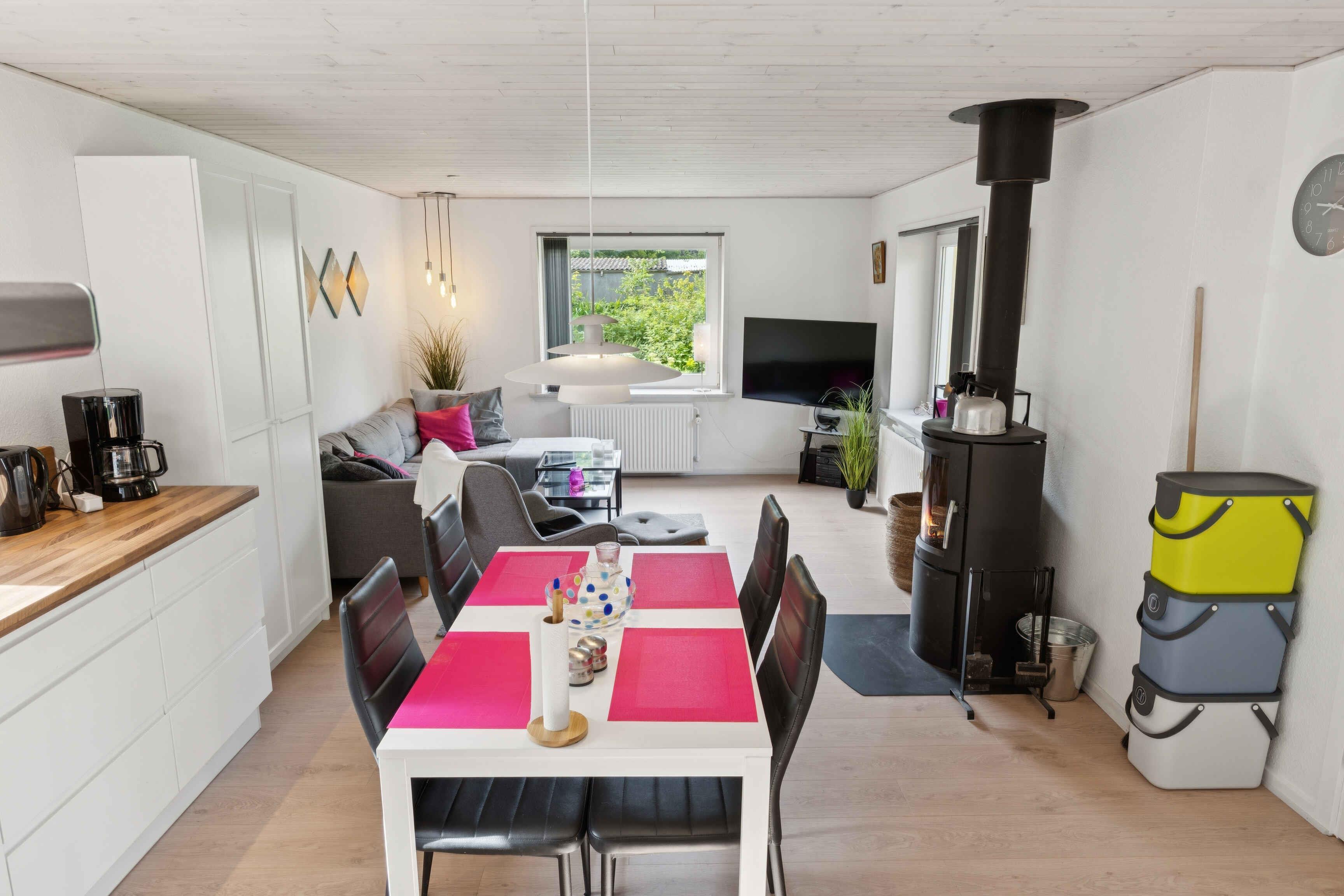 Dette sommerhus på 96 m² er et oplagt valg til en afslappende ferie med familie eller venner. Huset rummer to soveværelser og fire sovepladser og giver jer en god base med ro og plads til at nyde ferien både inde og ude. Indretningen er enkel og personlig med åbent køkken-alrum, god spiseplads og en stue. Der er direkte udgang til terrasse, hvor I kan nyde solen og måltiderne i det fri. Boligen har både vaskemaskine og opvaskemaskine, så praktikken glider let i ferien. Derudover er der fri adgang til brænde. Beliggenheden inviterer til naturferie i det nordjyske. Her er I tæt på Hjørrings handelsliv, men stadig med god afstand til trafik og støj. I nærområdet er der mulighed for vandreture, cykling og naturoplevelser i rolige omgivelser. 14 km mod vest venter Vesterhavet og nogle af Danmarks flotteste sandstrande. Her er badevandet klart, og der er god plads til leg, afslapning og lange gåture. Området byder også på charmerende kystbyer som Lønstrup og Løkken med kunsthåndværk, isboder og lokale caféer. Sommerhuset er velegnet til jer, der søger fredelige omgivelser og et godt udgangspunkt for at opleve det bedste af Nordjylland. Her er hverken for langt til byliv eller natur – og masser af muligheder for at gøre ferien til jeres egen. Obs, udlejes ikke til erhversmæssigt brug.