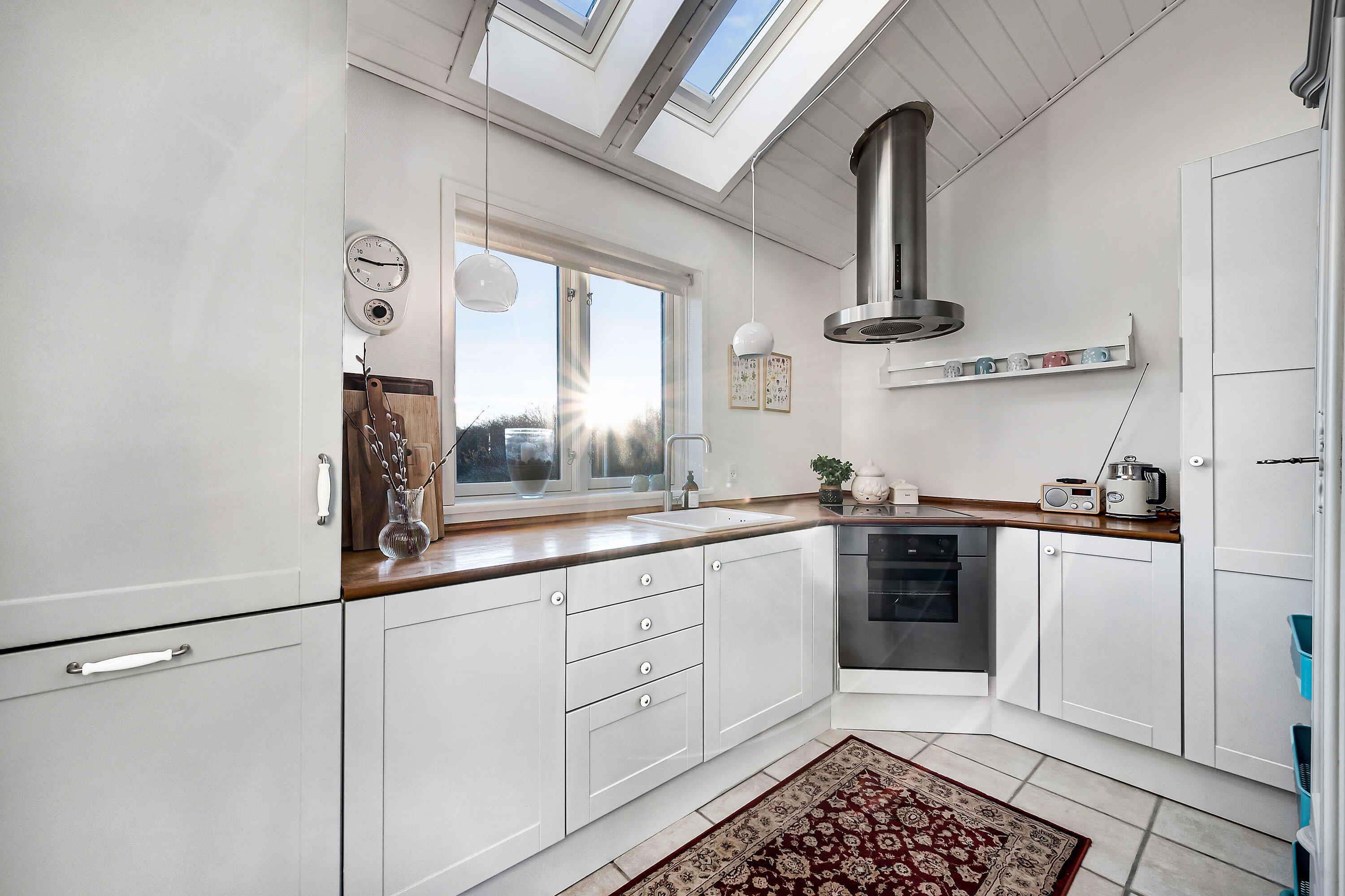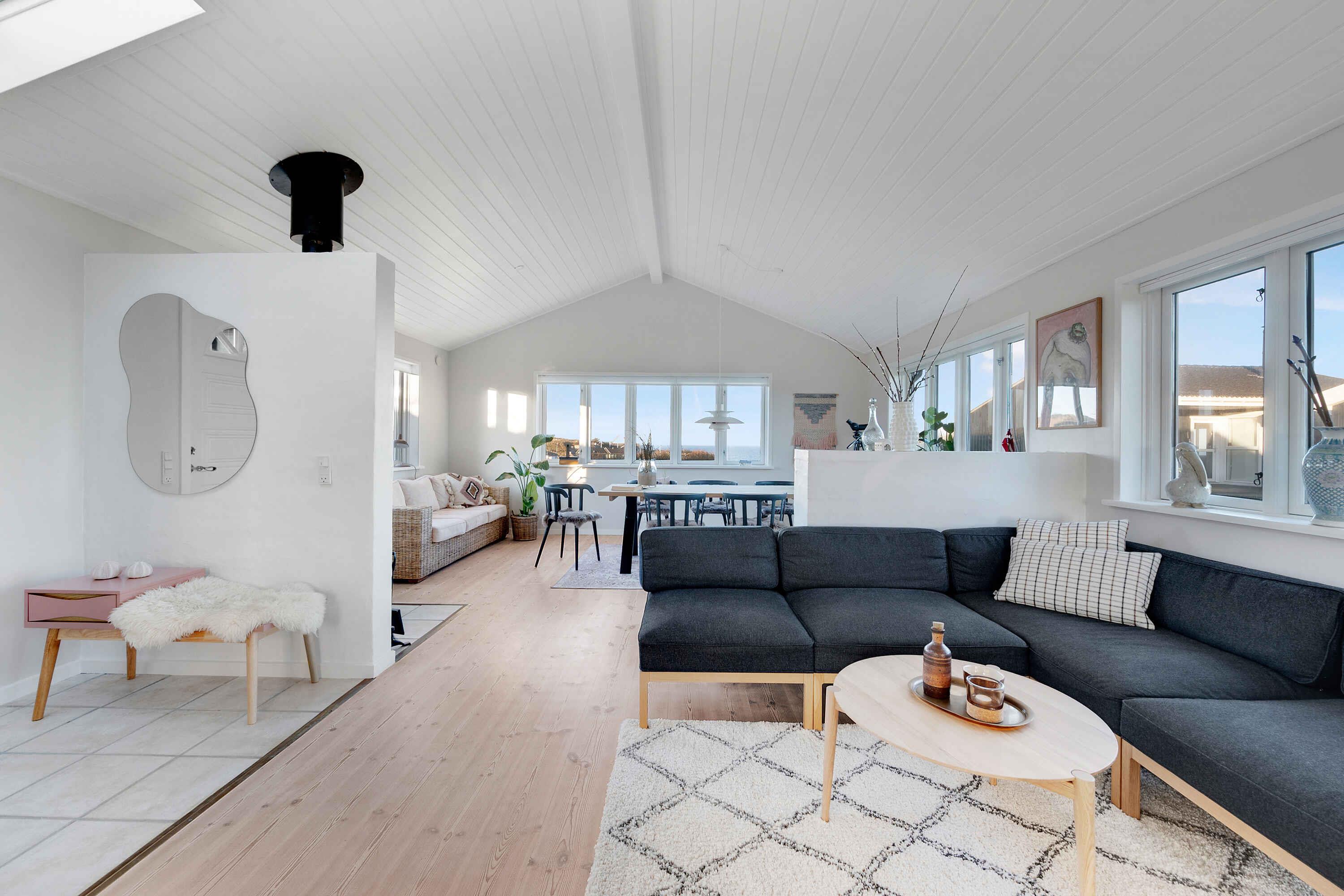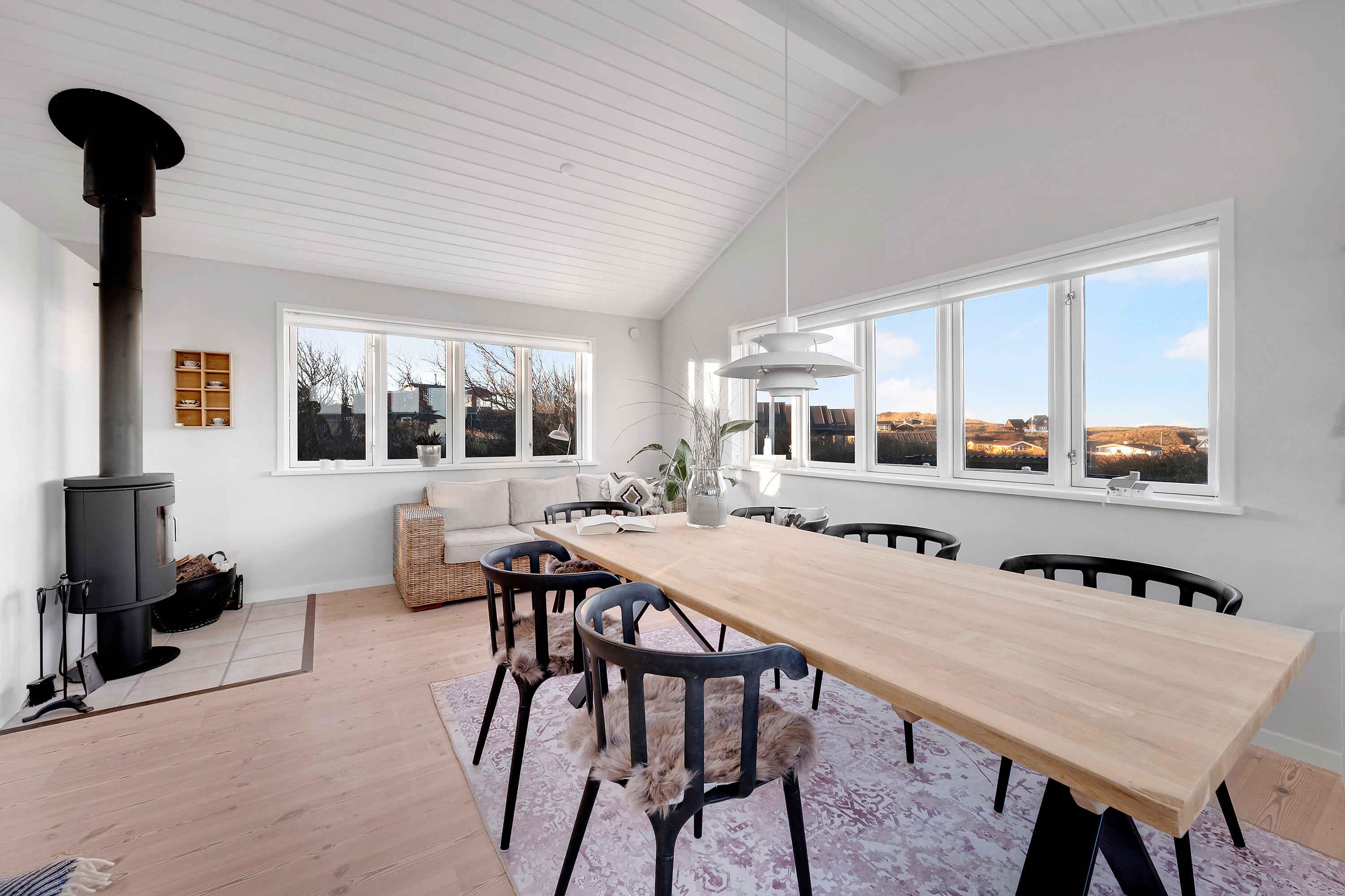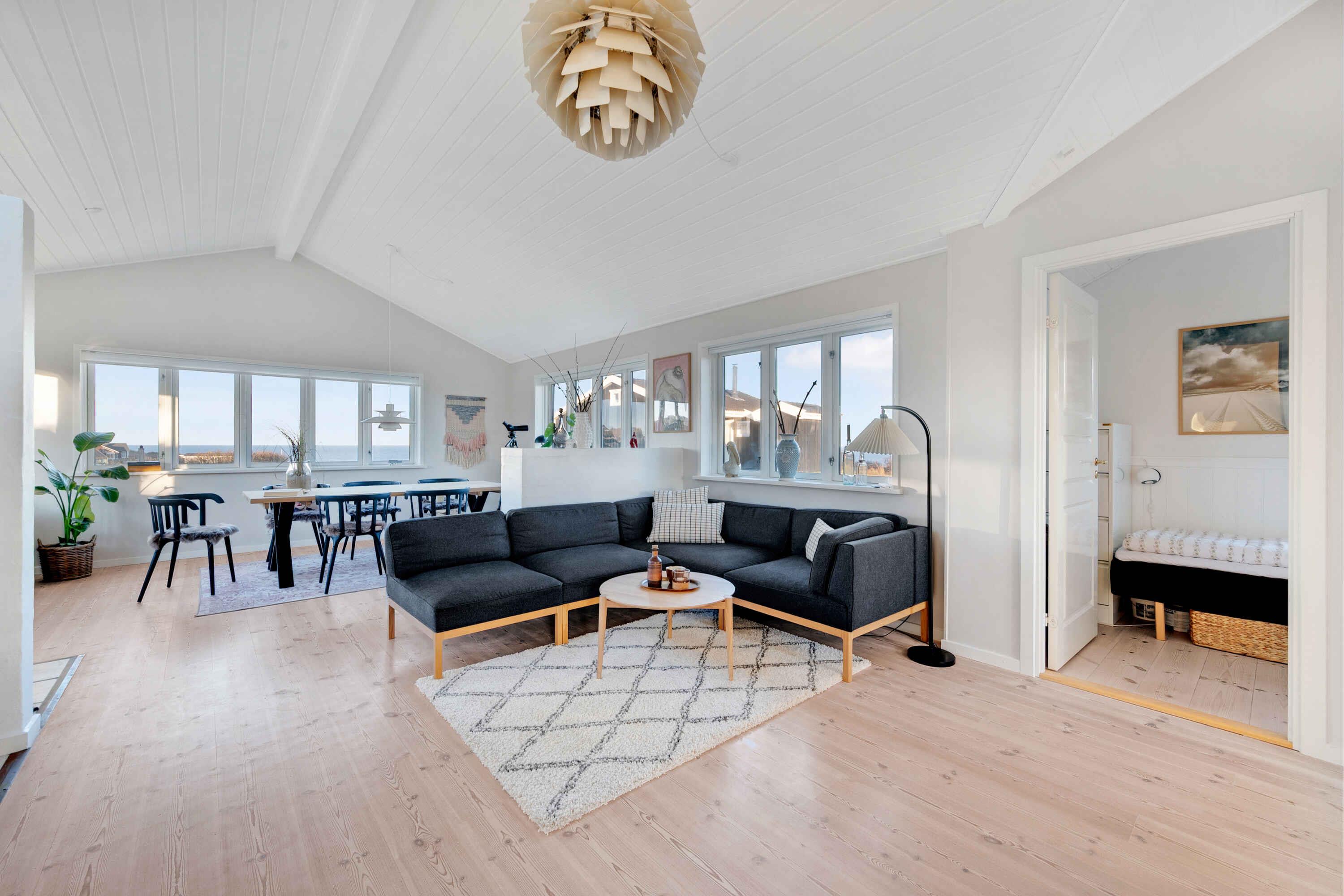 Lyst og venligt arkitekttegnet hus med unik havudsigt, beliggende kun 15 minutter til fods fra hyggelige Lønstrup midtby, hvor et væld af oplevelser og tilbud for hele familien venter. Huset råder over 2 gode soveværelser med hhv. 2 dobbeltsenge og 3 enkeltsenge. I alt plads til 5 personer. Hertil råder huset over 1 badeværelse. Husets hjerte er den hyggelige spisestue og stue med udsigt til havet. Her er der plads til hele familien med timevis af hyggelige stunder bl.a. på sofaen foran den knitrende brændeovn med en god bog og en kop varm chokolade eller gode snakke rundt om bordet med lækker mad. Indretningen i huset emmer virkelig af personlighed og hygge og giver plads til afslapning og ro. Tilhørende huset er en fantastisk ugeneret terrasse med morgen, middag og aftensol samt samme unikke havudsigt. Denne bliver du aldrig træt af. Kun 400 m fra huset ligger Lønstrup Strand med en dejlig sandstrand med gode badeforhold med rolige laguner med lavt vand. Glæd jer også til gode gåture i de naturskønne omgivelser. Kun en kort køretur fra sommerhuset finder I bl.a. Rubjerg Knude og Mårup Kirke, som uden tvivl skal besøges. I finder og Skallerup Seaside Resort, hvor man kan købe dagsbiletter og benytte deres faciliteter. I dette sommerhus venter jer en helt særlig ferie med den skønneste atmosfære og udsigt.