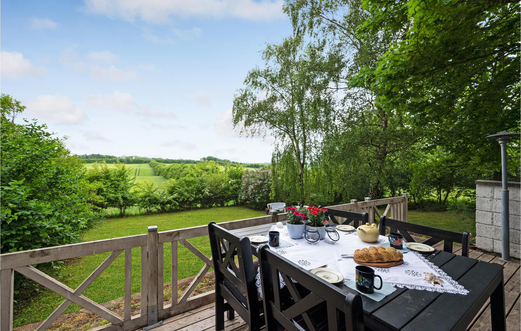 Det stemningsfulde, lækre køkken ligger i åben forbindelse med stuen, hvor I kan tænde op i brændeovnen på de kølige aftener. Huset emmer af stil og atmosfære, så her får I en god ramme om samværet, når I skal slappe af efter en lang dag på farten. Den skønne terrasse har en forrygende udsigt til landskabet, hvilket sikkert giver jer lyst til at sætte jer her med dagens måltider, en god bog eller et glas vin sidst på dagen.