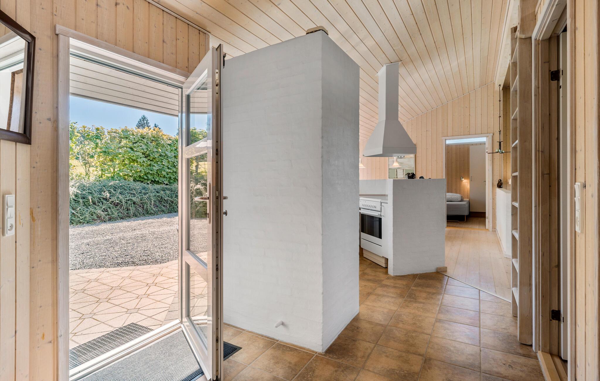 Feriehus i træ med fjordudsigt, brændeovn og terrasse nær Hjarbæk Fjord, perfekt til en afslappende familieferie.