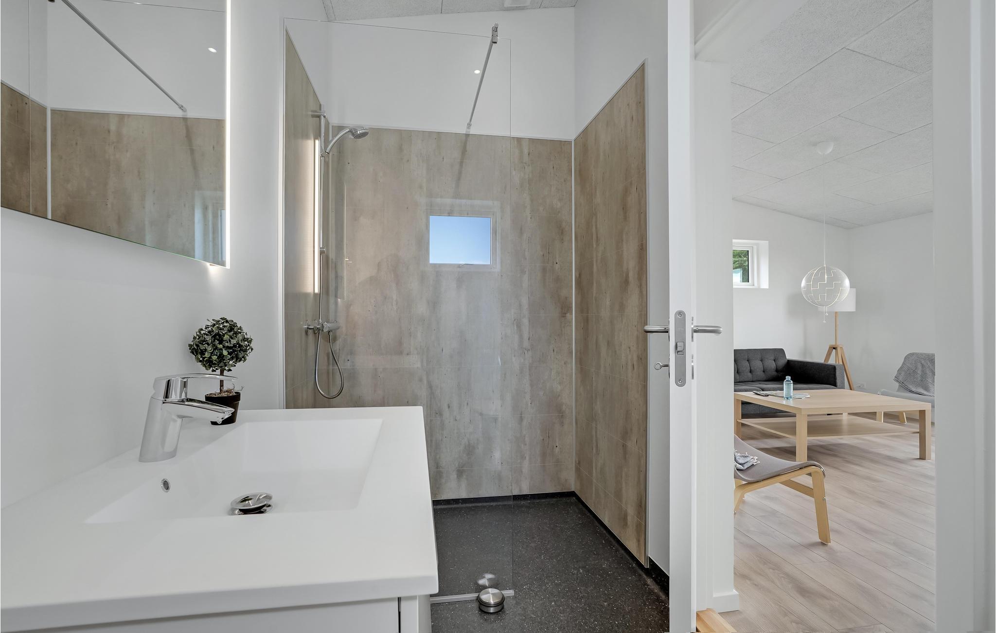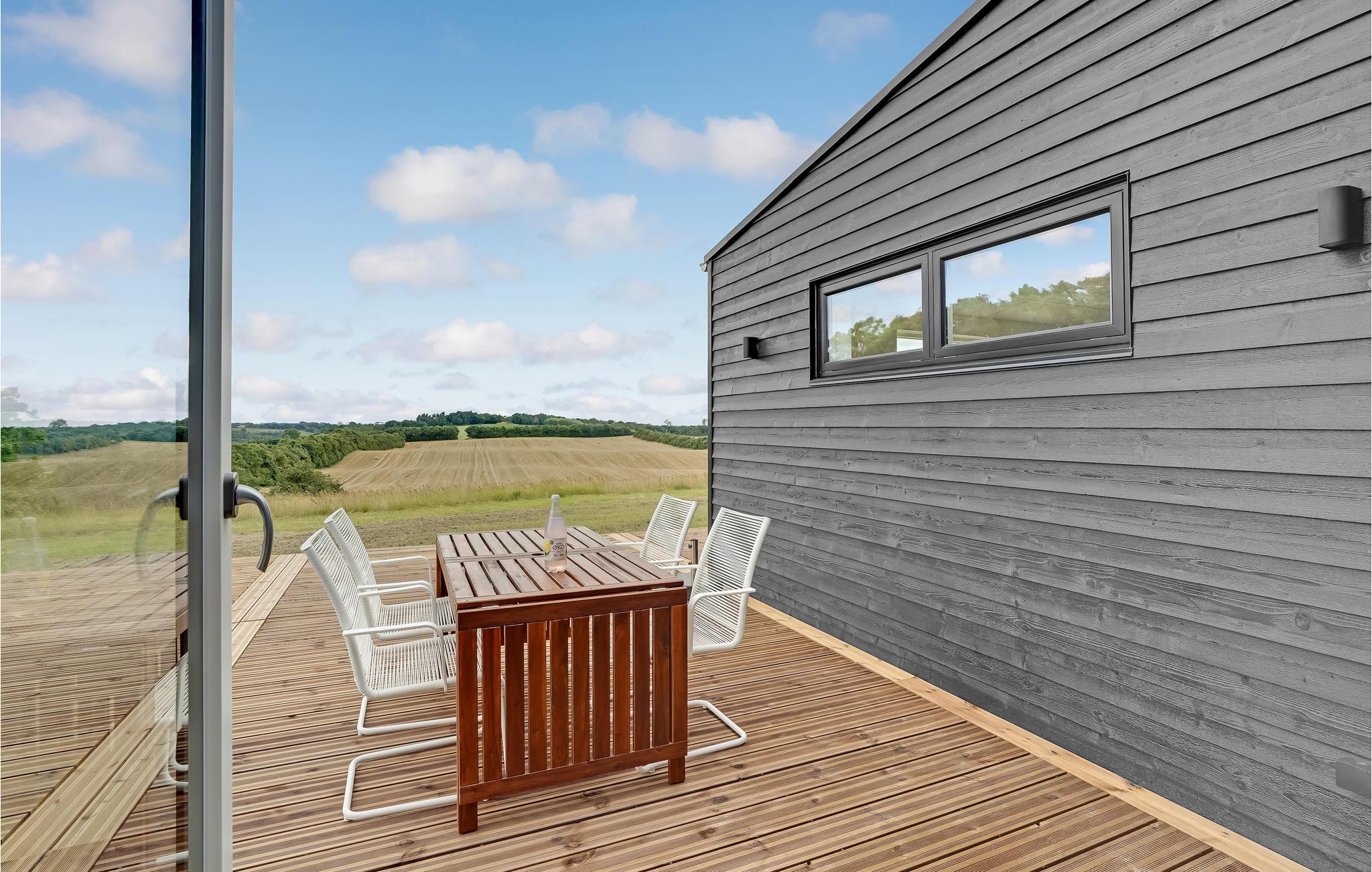 Der er god forbindelse til husets uderammer, som I sikkert kommer til at benytte flittigt i sommerhalvåret. Men selv på lidt kølige efterårsdage kan I også læne jer tilbage i vildmarksbadet og suge den friske luft ned i lungerne, mens I får varmen fra vandet.