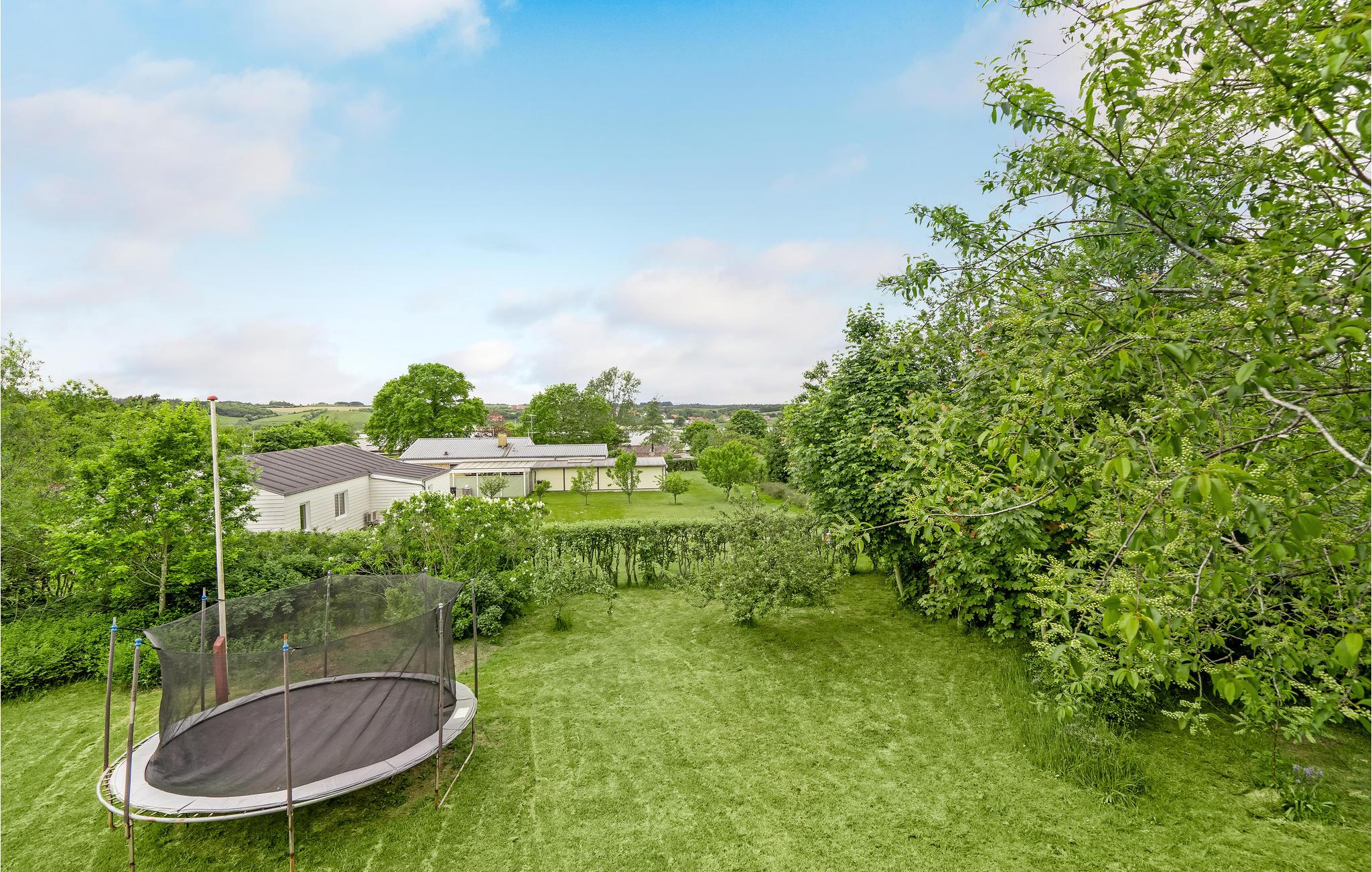 Fra stuen er der adgang til terrassen, hvor I både finder sol og skygge. Havemøbler og en grill står også til rådighed, og der er desuden et bålsted til hyggelige aftener udenfor.