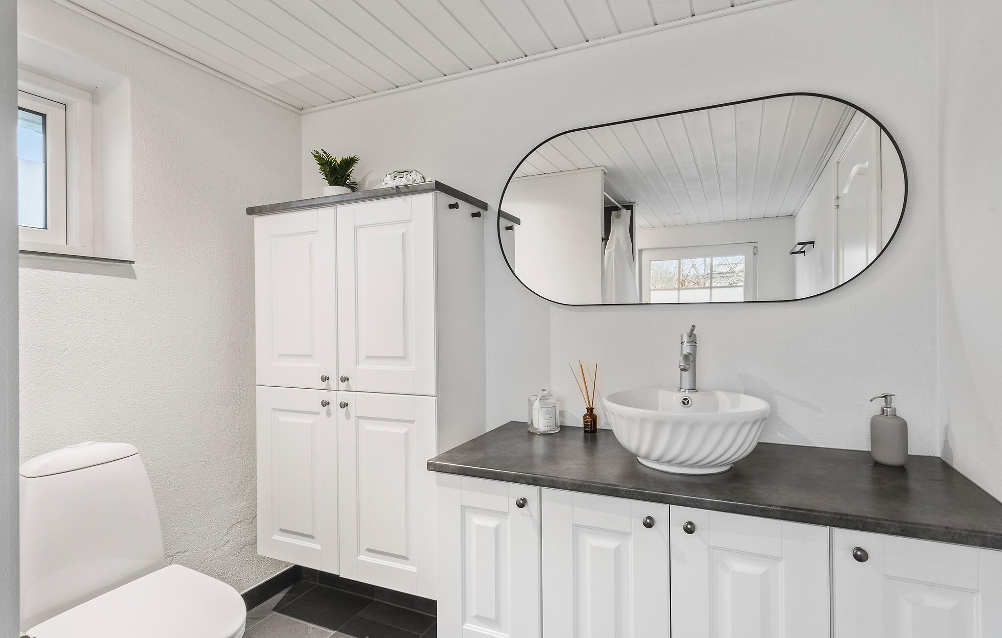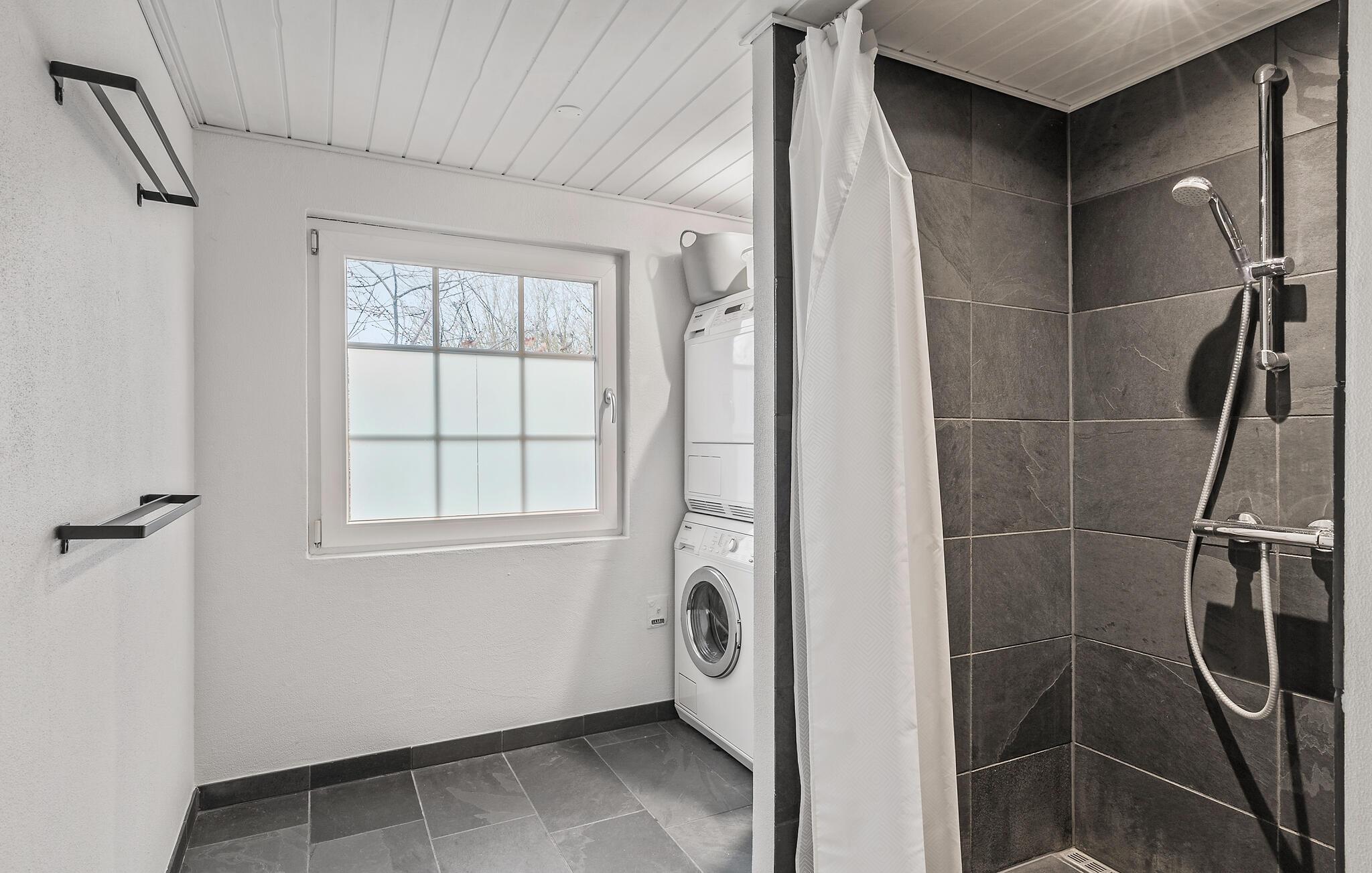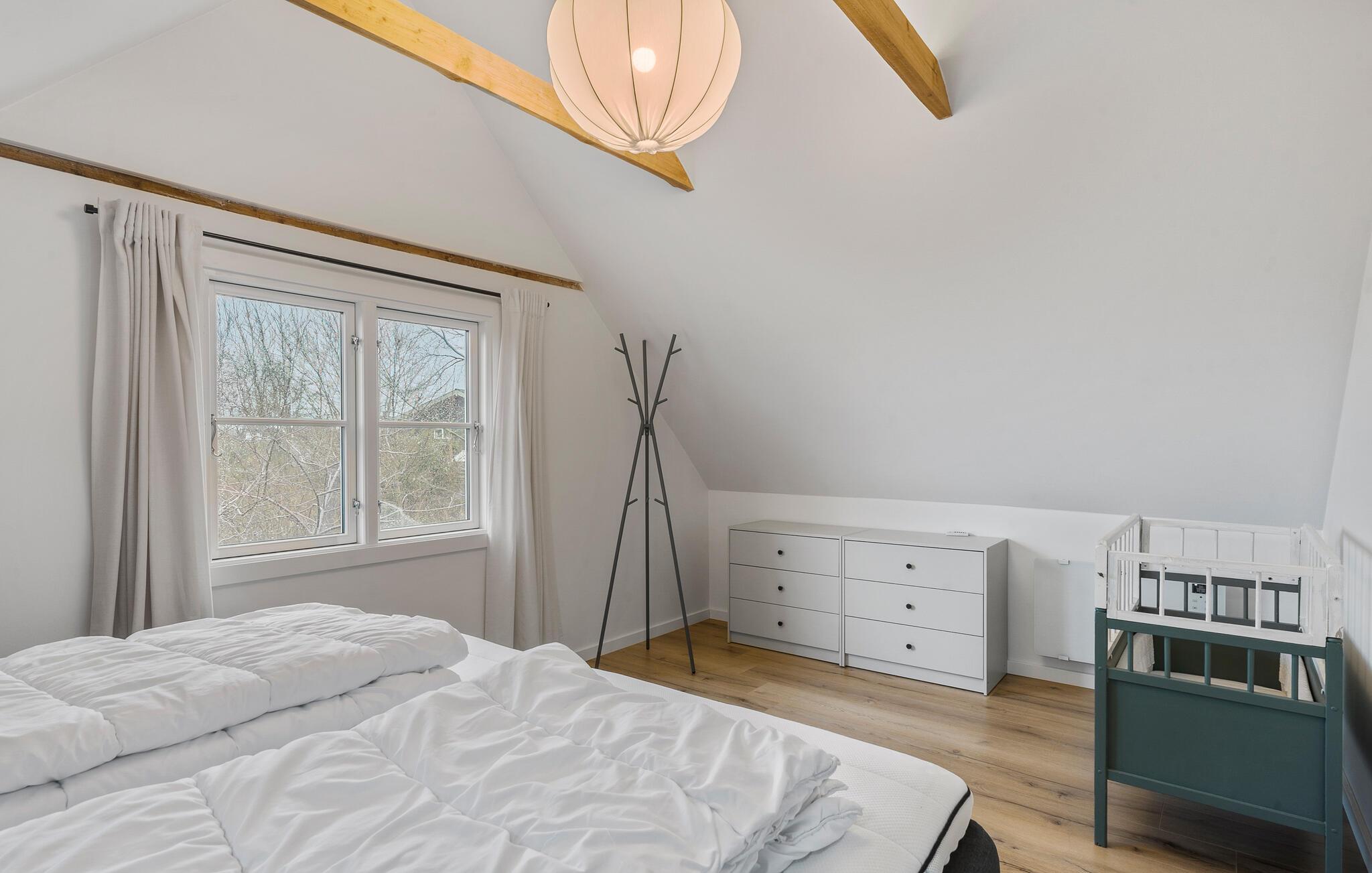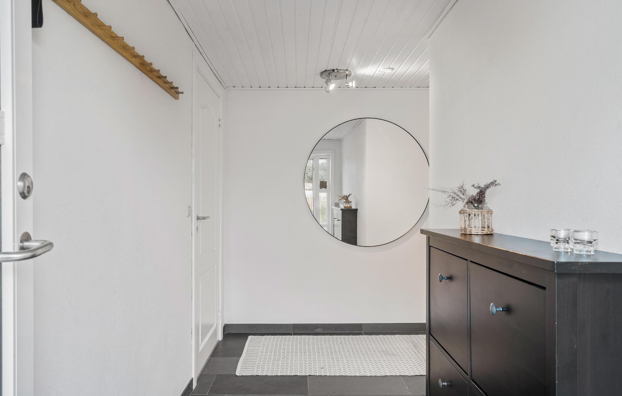 Lad jer inspirere af den særlige atmosfære i dette hyggelige sommerhus og nyd en afslappende ferie nær Hjarbæk Fjord. Så snart I kommer ind, vil I blive overrasket over den lyse og smagfulde indretning. Det åbne opholdsrum med synlige loftsbjælker og store vinduer skaber en indbydende, venlig atmosfære. Find jer godt til rette i de komfortable sofaer og nyd den hyggelige varme fra brændeovnen på kølige aftener. Det moderne køkken lægger op til at tilberede lækre ferieretter sammen, mens den hyggelige spiseafdeling i træ byder på perfekte betingelser for fælles måltider.