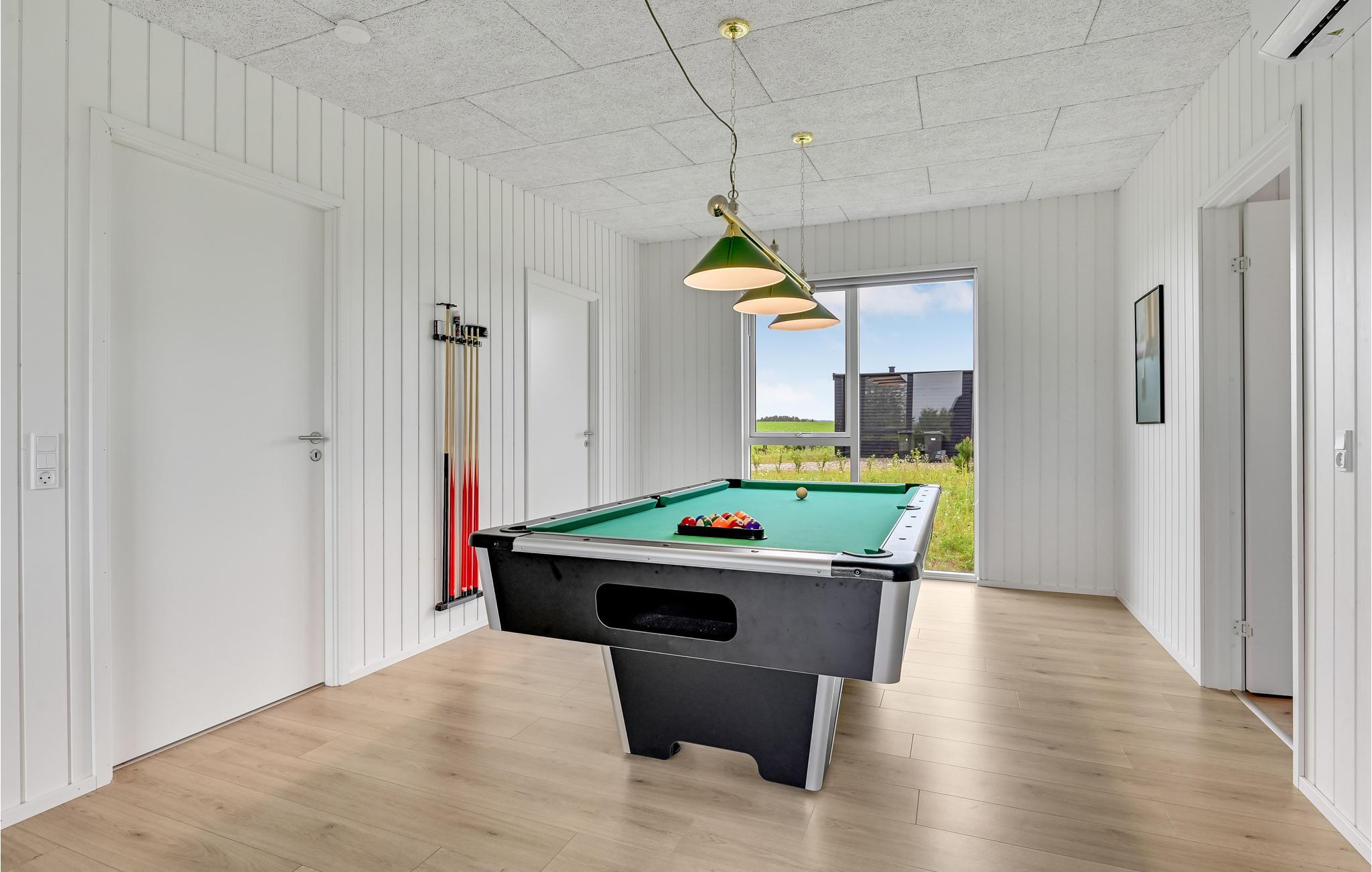 Den åbne indretning lader jer nyde hinandens selskab mens nogle er i køkkenet og andre spiller spil eller slapper af i sofaerne. De store vinduespartier sikrer et fantastisk lysindfald, og giver jeg mulighed for at nyde de grønne omgivelser, selv når I er indendørs. Poolbordet står i gennemgangsrummet, hvor I kan udfordre hinanden til en kamp. På den store overdækkede terrasse kan I sidde på de varme sommerdage og nyde skyggen og en god bog. Om vinteren vil I også finde jer godt til rette her, fordi overdækningen sørger for varme og ly for vejret.