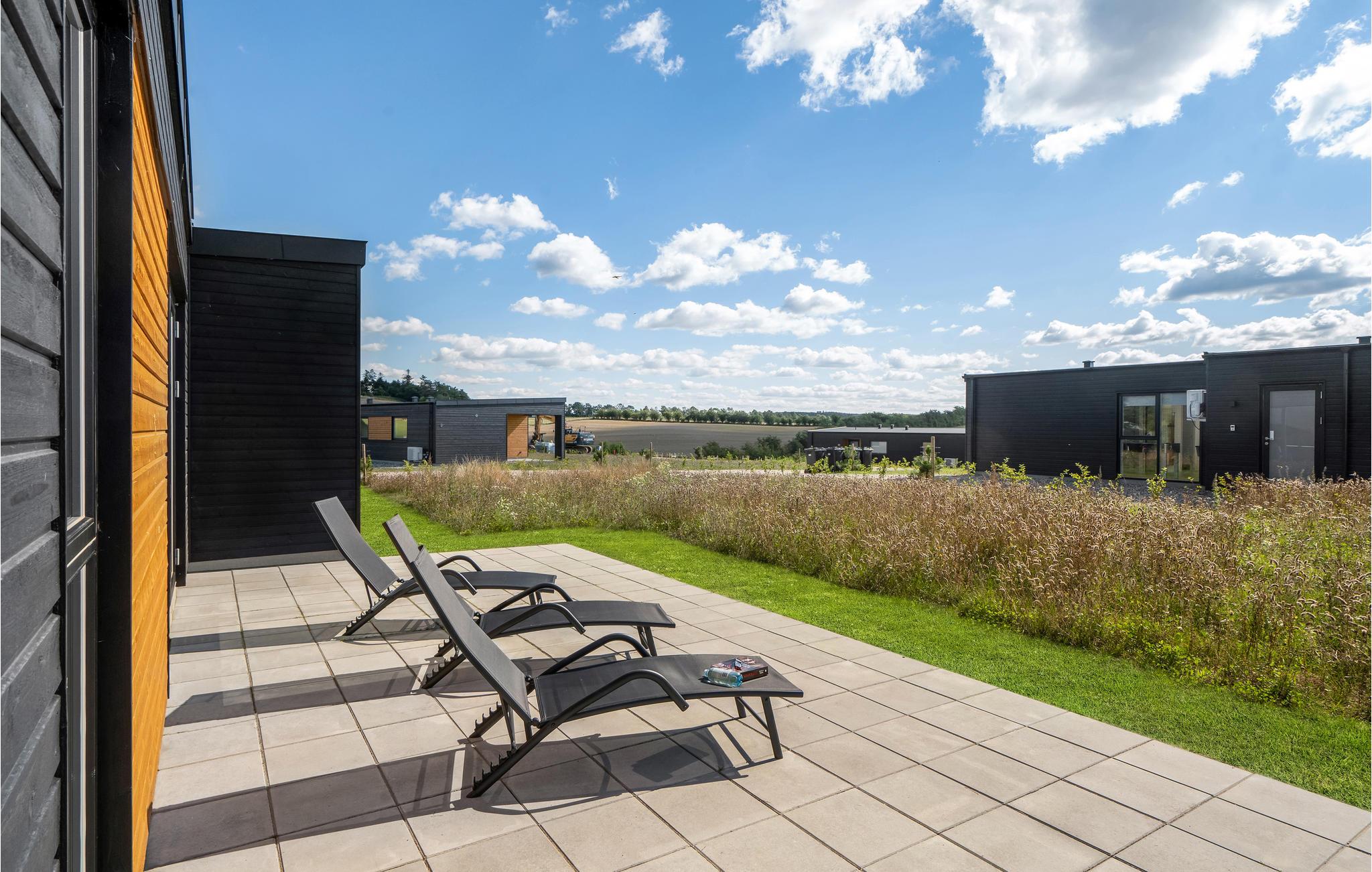 Nyd et luksuriøst feriehus med stor grund, terrasse og udsigt til Hjarbæk Fjord, perfekt til afslapning og aktiviteter året rundt.