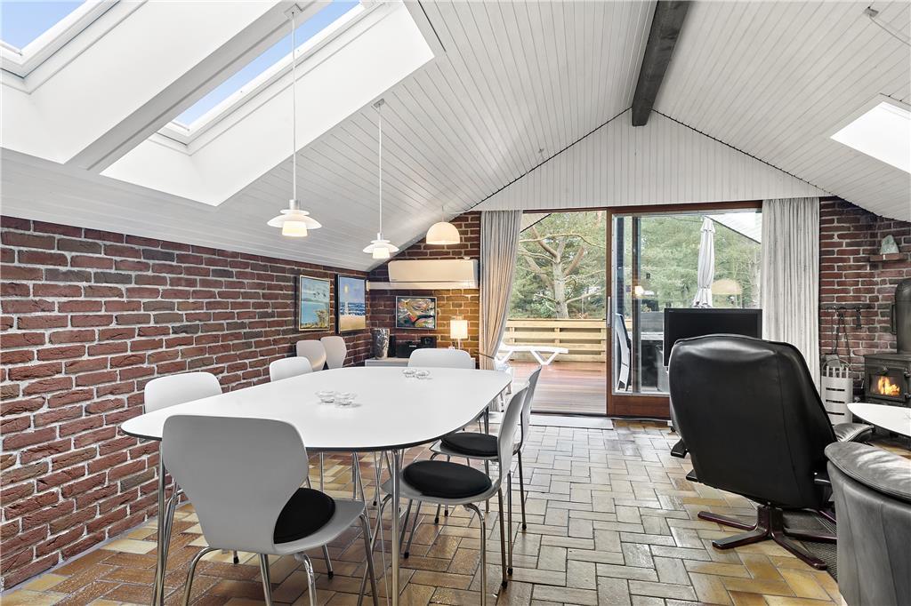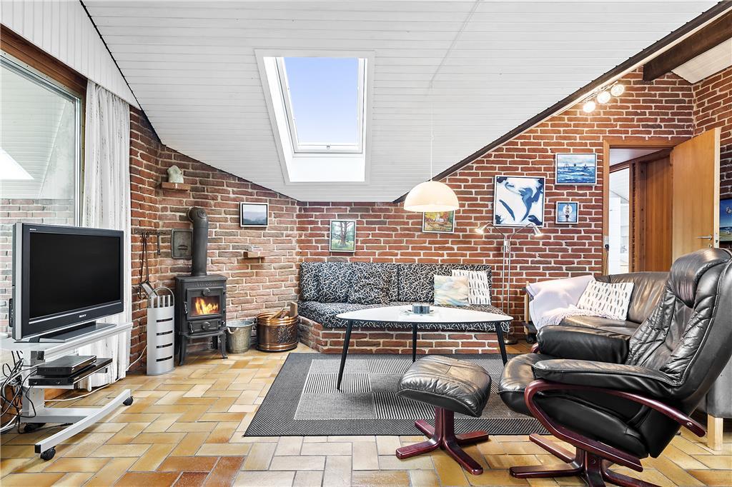 De røde mursten, klinkegulvet og lyse trælofter i stue og køkken giver en rigtig god stemning. Der er masser af plads til 6 personer i den hyggelige sofagruppe eller rundt om spisebordet. Køkkenet er i lyse farver og moderne hvidevarer. I badeværelset er der gulvvarme og en god bruseniche. Der er fire mindre værelser, tre med dobbelt senge og et med køjeseng.
