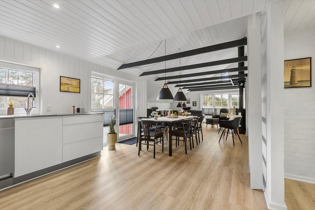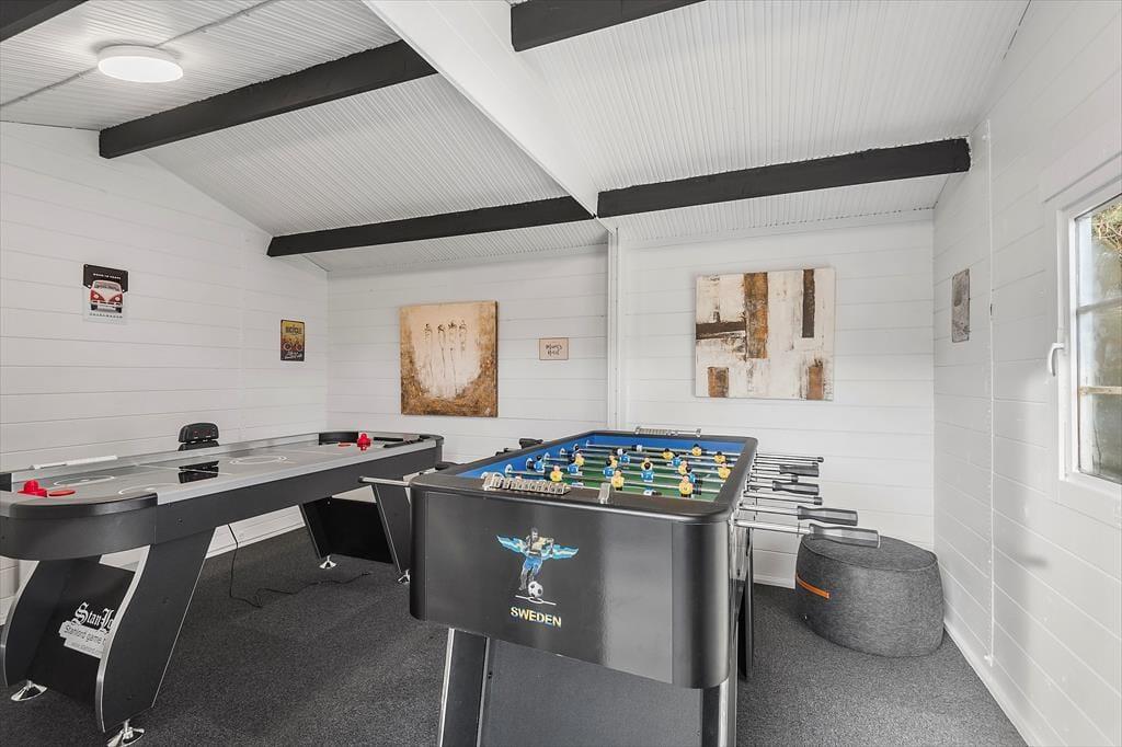 Det 180 m2 store sommerhus er blevet renoveret i 2022, så alle rum fremstår særdeles indbydende – inklusiv det tilhørende anneks, hvor I kan spille bordfodbold og airhockey. Selve hovedhuset har en gennemtænkt planløsning med to badeværelser og fire gode soveværelser, der alle er udstyret med dobbeltsenge. Dertil kommer en hems med to enkeltsenge, så alle kan se frem til en god nats søvn. I løbet af dagen kan I samles i sommerhusets store stue, der er hyggeligt indrettet med åbent køkken, spisebord og en rar sofaafdeling med brændeovn. Gennem vinduerne kan I kigge ind til poolafdelingen, hvor I kan nyde ferielivet med svømmeture i poolen (6,3x3,3x1,35)og total afslapning i spabadet.