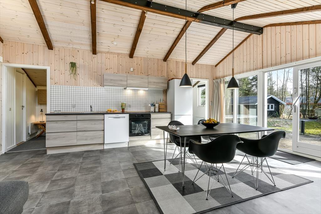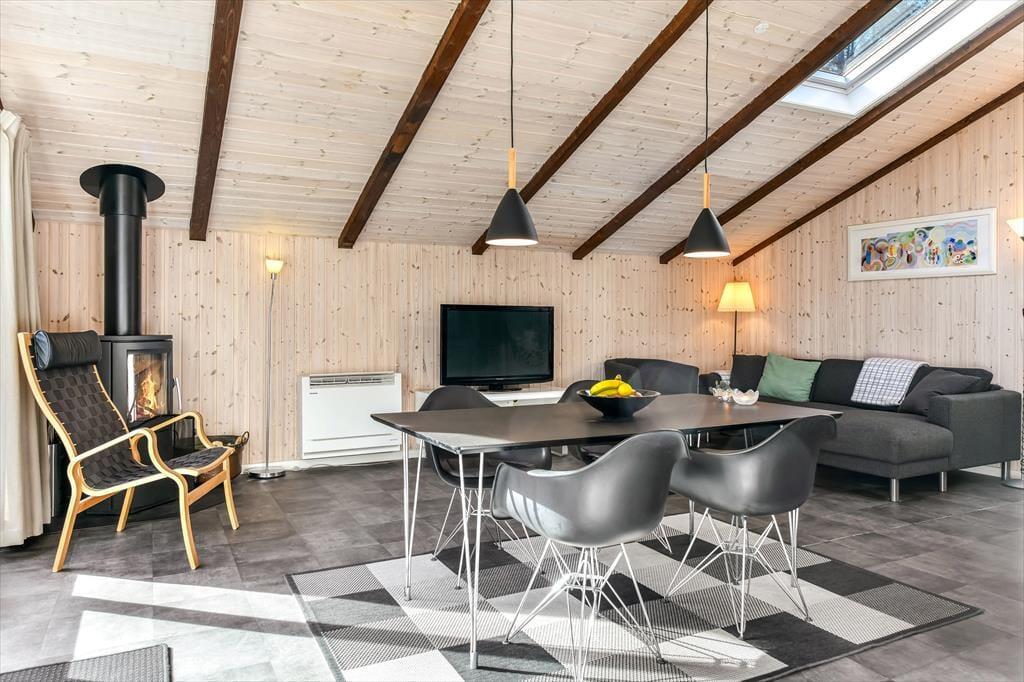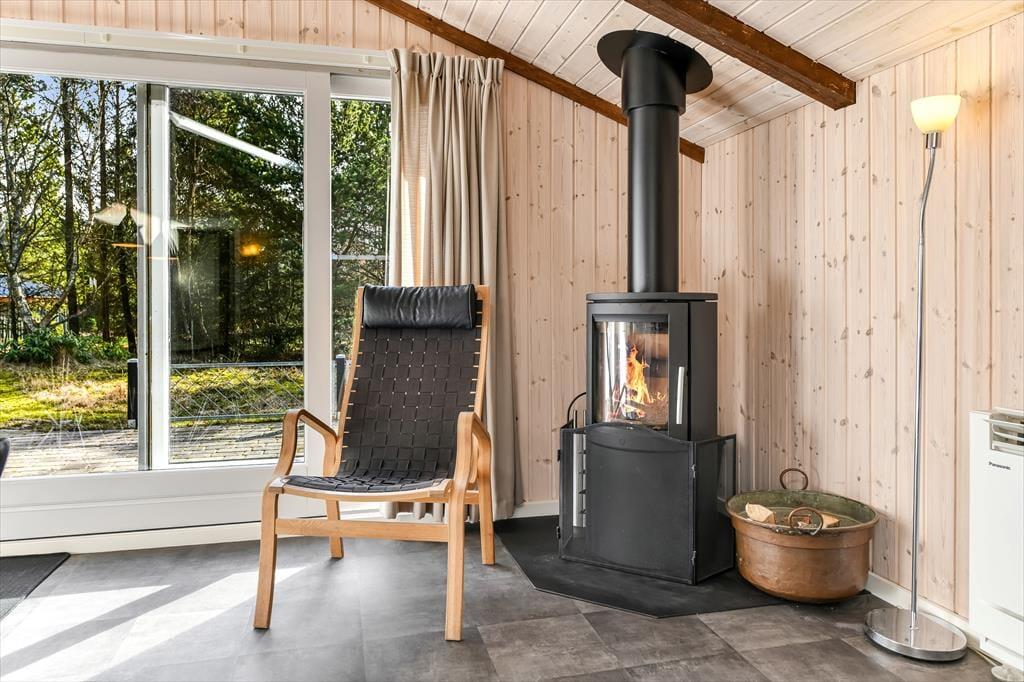 Stuens brændeovn, det flotte køkken, den ugenerede naturgrund og den korte afstand til den nærmeste minigolfbane og fiskesø– det er bare lidt af det, der er med til at gøre ferielivet særligt skønt på Nørballevej 2D i Ho.