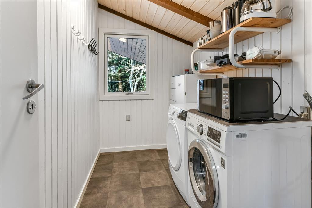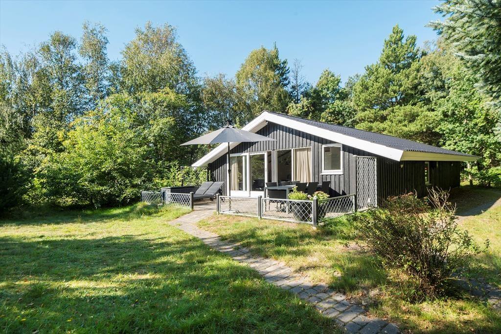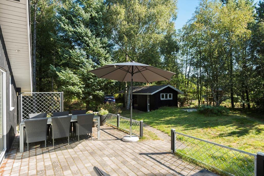 Sommerhuset ligger på en stor naturgrund, der er godt skærmet af træer og randbeplantning. Her kan I nyde ferien i fredelige og ugenerede omgivelser. Børnene kan more sig med en tur i gyngestativet, mens de voksne slapper af på den sydøstvendte fliseterrasse. Start dagen med en kop kaffe i morgensolen, og nyd de lyse aftener med grillmad og hyggelige stunder under den åbne himmel. Naturgrunden giver masser af muligheder for at få pulsen ned og komme helt ned i gear, mens fuglesangen og vindens susen i træerne skaber en afslappende baggrundsmelodi.
