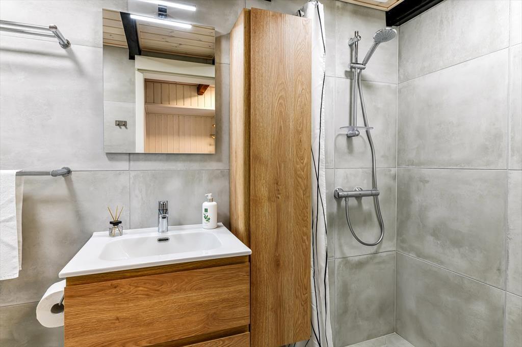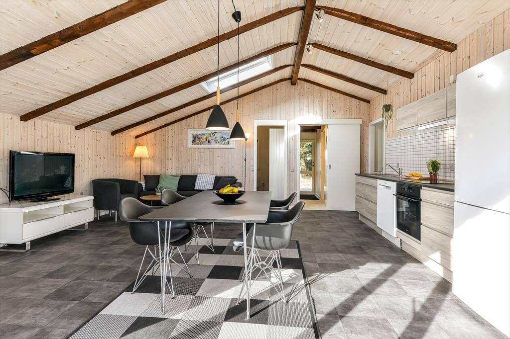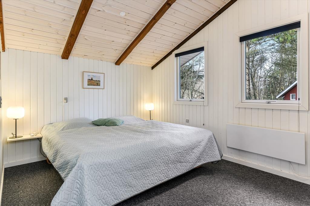 Ferielivet i Ho bliver noget helt særligt, når I holder ferie i dette hyggelige sommerhus på Nørballevej 2D. Inden døre venter en varm og indbydende atmosfære, der indbyder til afslapning og samvær. Efter en gennemgribende renovering i 2023 og 2025 står huset flot med moderne faciliteter og stilfuldt interiør. I det åbne køkken kan I lave lækre måltider sammen, mens de bløde møbler i stuen indbyder til afslapning foran brændeovnens knitrende flammer. En varmepumpe sikrer et behageligt indeklima året rundt, og det store vinduesparti i stuen skaber en naturlig forbindelse til udelivet. Sommerhuset rummer tre gode soveværelser, der alle byder på en rolig atmosfære, så I kan få en god nats søvn efter en dag fuld af oplevelser. Badeværelset er moderne indrettet med bruseniche og gulvvarme, så komforten er helt i top.