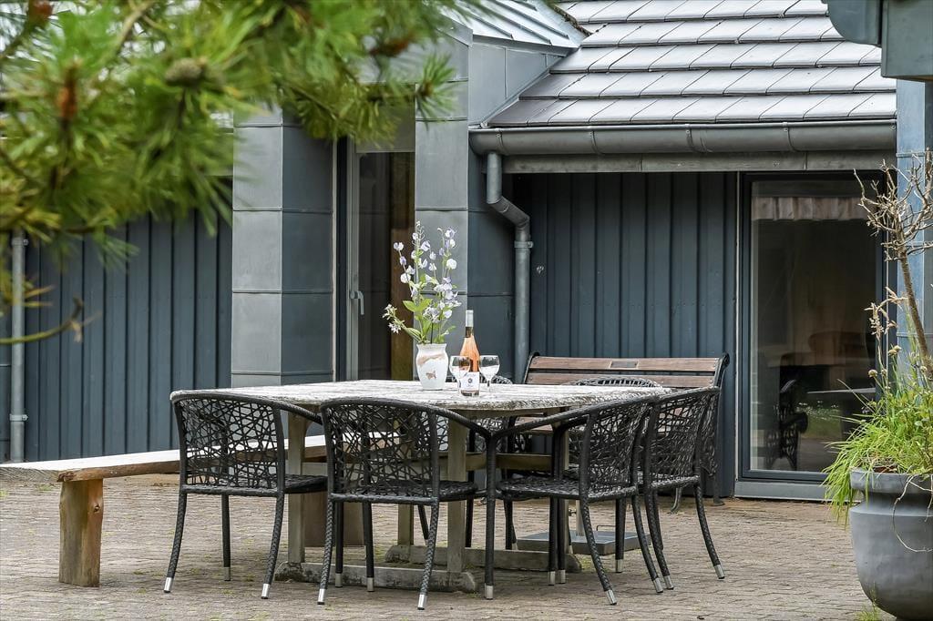 På den 2800 m2 store naturgrund kan du slappe af til den helt store guldmedalje: Sæt dig godt til rette på den solrige terrasse, eller flyt havestolen ind under overdækningen, hvis du trænger til skygge. Randbeplantningen skærmer udearealerne godt af, og græsplænen fungerer som en god ramme for boldspil og andre aktiviteter med børnene. Vil I alle gerne blive ude i den friske luft, er der et udekøkken i stål, så mens ungerne leger videre, kan aftensmaden blive tilberedt under åben himmel. Endelig kan I alle samles om det lækre måltid som en perfekt afslutning på en dejlig feriedag.