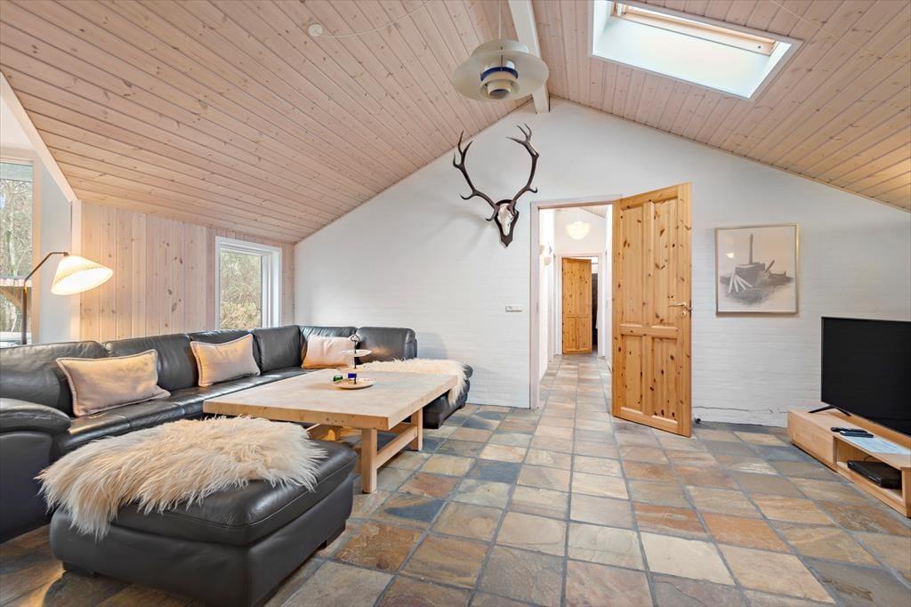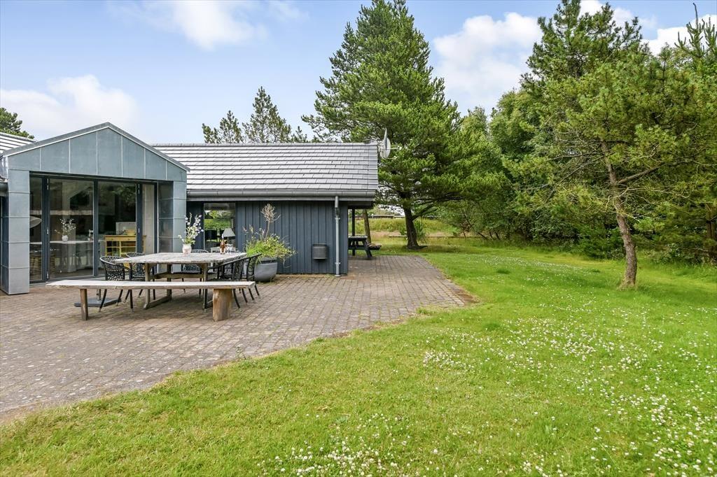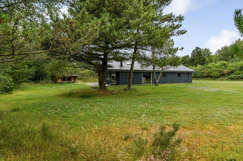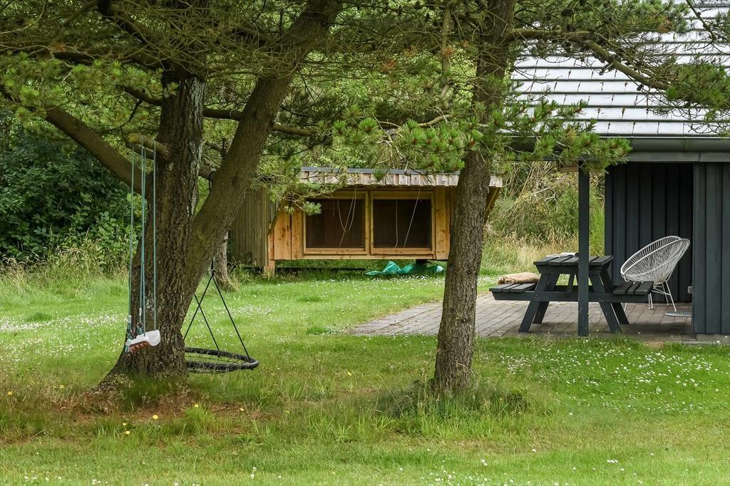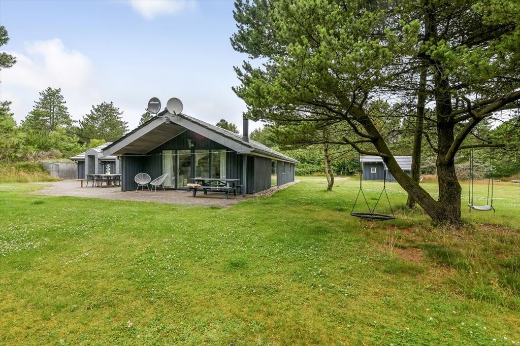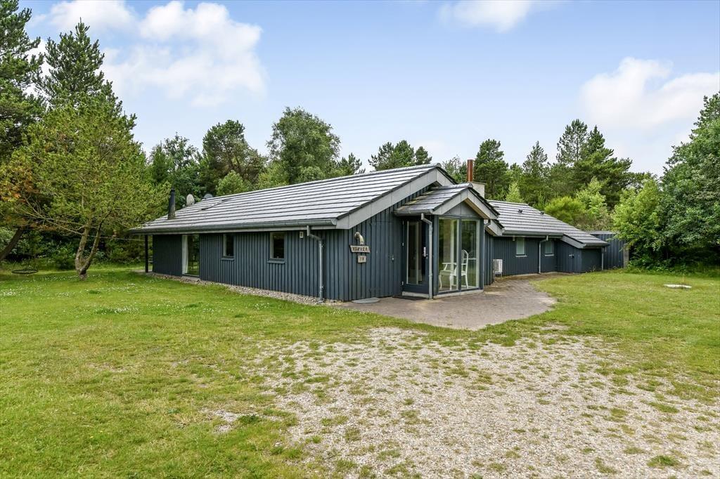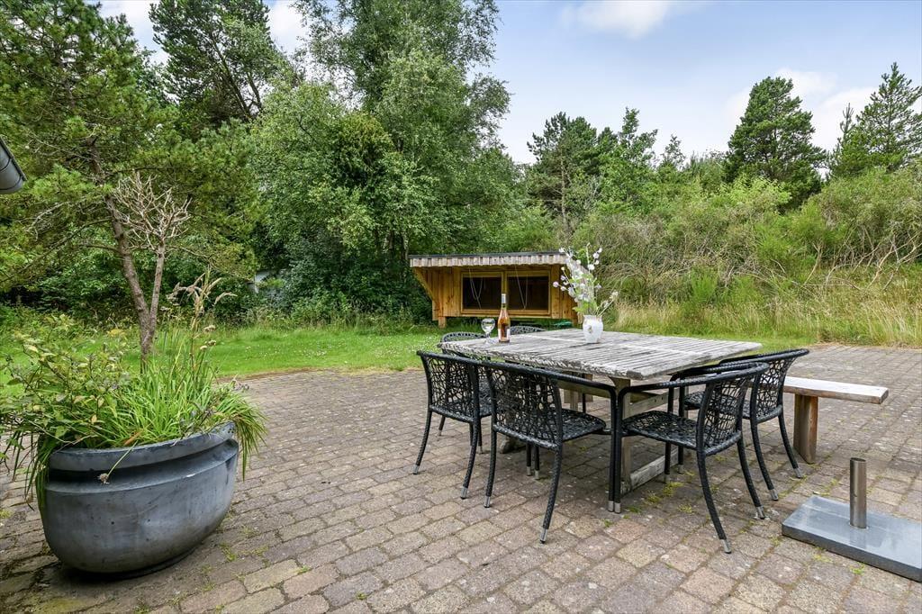 Sommerhuset ligger på en rolig grusvej tæt på både tætte plantager og åben klithede, så hvis du vil ud for at nyde naturen, er det lige til. Den lille by Ho ligger ud mod Ho Bugt, der hører til den nordlige ende af Vadehavet, og hvis du vil se, hvordan tidevandet sætter sit præg på det unikke landskab, kan du fortsætte ud til den ubeboede halvø Skallingen. I Ho finder du en kro, en golfbane, en fiskesø, et badeland og meget mere, så hele familien har nok at underholde sig med i nærområdet – og derudover bor I bare en kort køretur fra Blåvand by og Vesterhavets smukke strande.