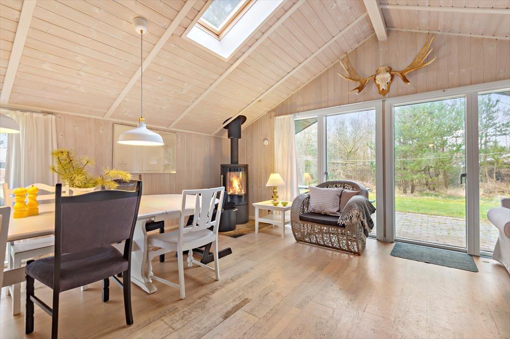 Sommerhuset har stået her i de grønne og rolige omgivelser i omtrent fire årtier, og i mellemtiden er det blevet moderniseret og udvidet med en tilbygning, så du og familien nu har ekstra plads at brede jer på. Faktisk er der mulighed for, at I kan invitere venner med på ferien, for husets fire soveværelser og to badeværelser er praktisk opdelt i to separate afsnit. Når I vil hygge jer sammen, er der både en spisestue og en opholdsstue at mødes i – og midt imellem ligger et dejligt køkken, hvor madentusiasterne kan trylle noget lækkert frem til de andre i selskabet. Skal der skrues ekstra op for varmen og hyggestemningen, er der både en brændeovn og en pejs i opholdsafdelingen, mens et spabad og en sauna er garant for tilbagelænet wellness.