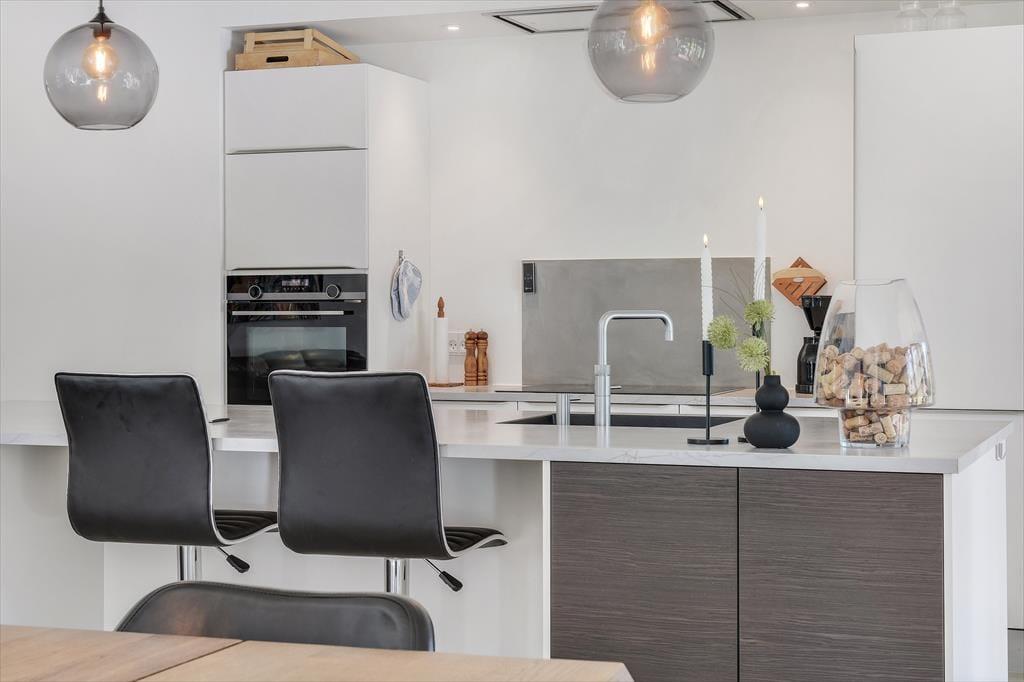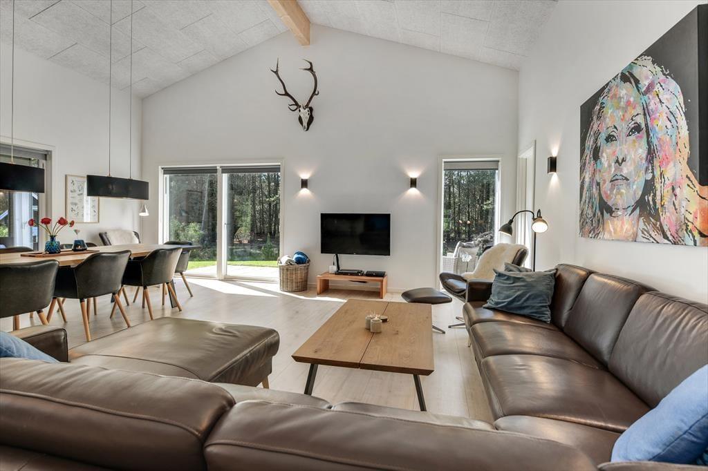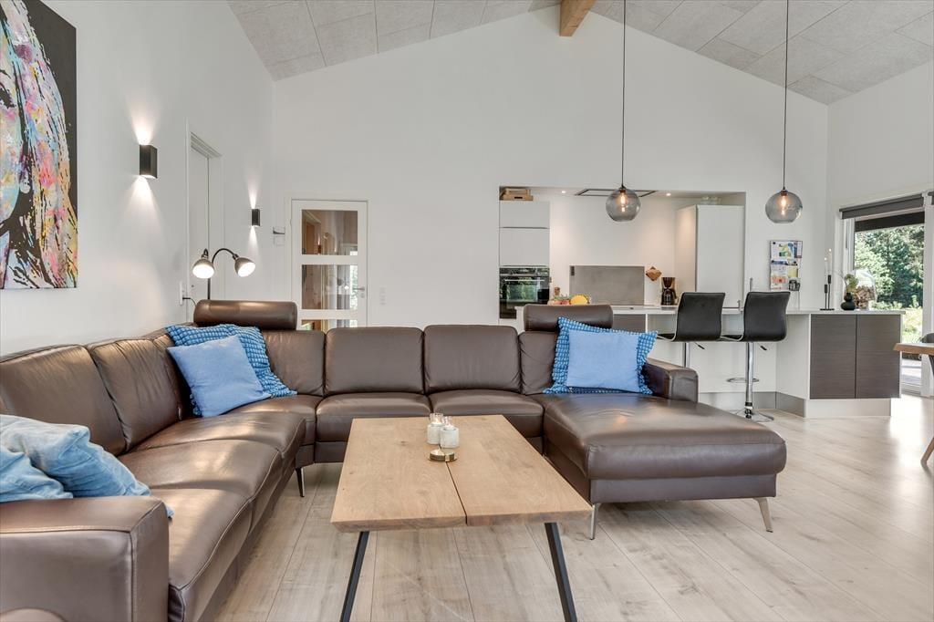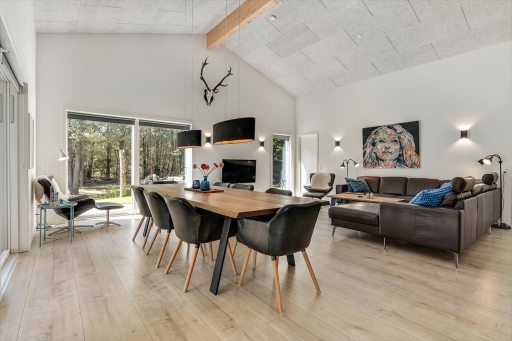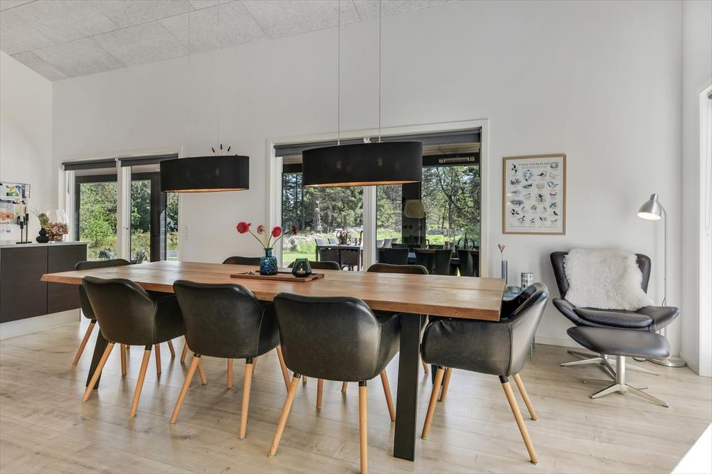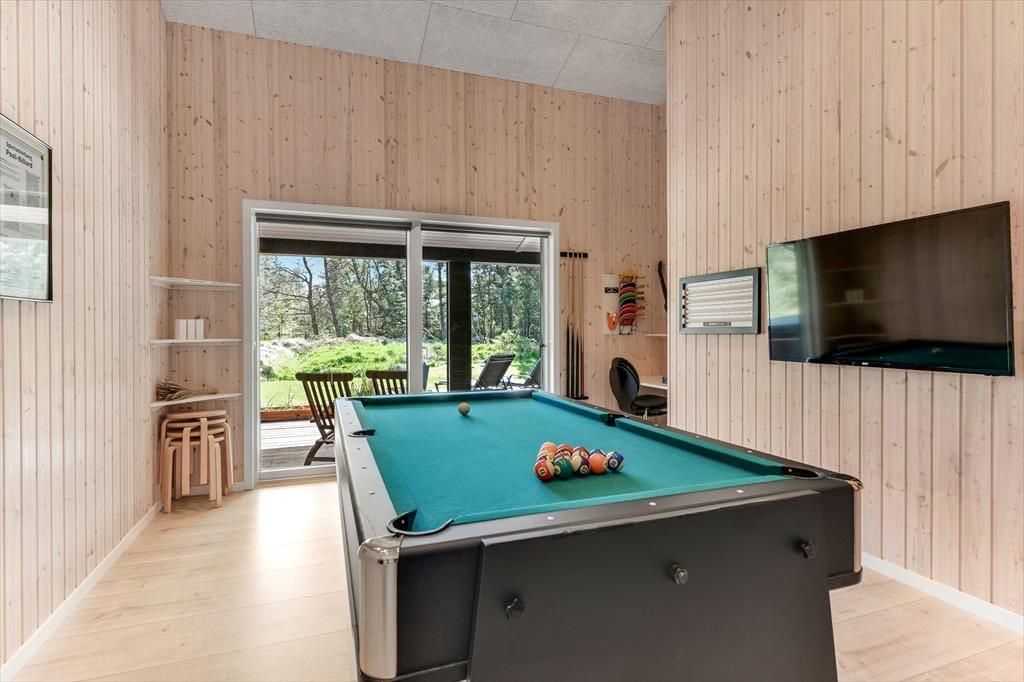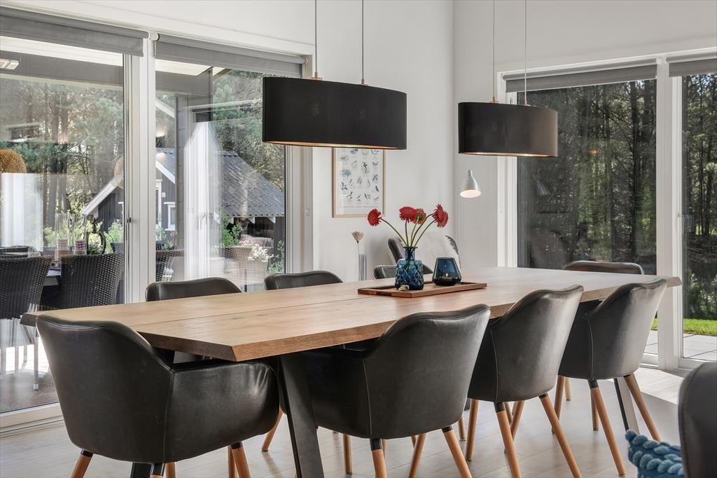 Med en planløsning på hele 165 m2 har du og familien masser af plads inden døre, og fordi der er fire soveværelser og to badeværelser til rådighed, kan i overveje, om I vil invitere vennerne med på ferie. Der er god plads til alle i det store opholdsrum, hvor I kan slænge jer i sofaafdelingen eller samles ved spisebordet til et veltilberedt måltid. Maden kan du trylle frem i det åbne køkken, der er udstyret med Quooker og andre lækre detaljer – og hvis det ikke er dig, der har køkkentjansen, kan du i stedet sætte dig på en af barstolene for at spise snacks og hyggesnakke med kokken. Alternativt kan du gå ind ved siden af for at spille bordtennis, pool eller airhockey, indtil det er spisetid.